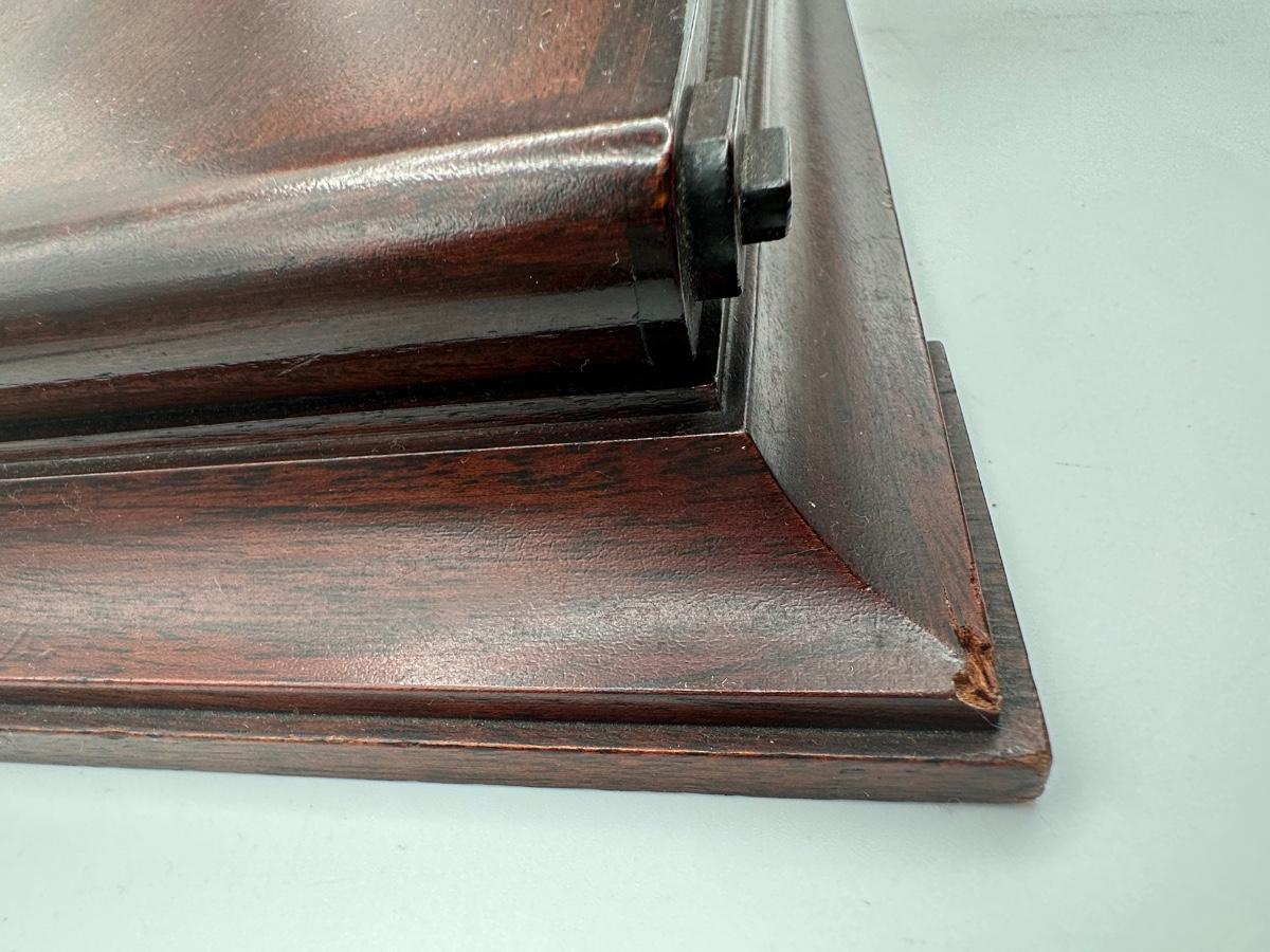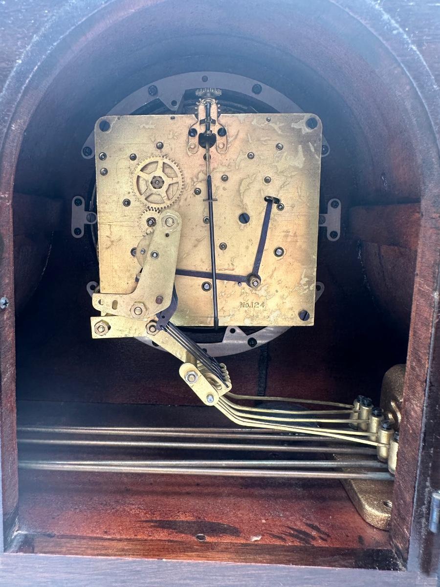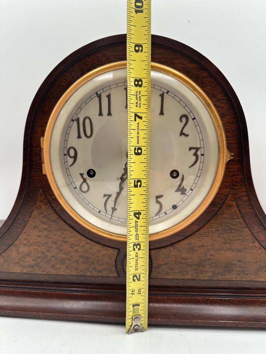 Comes with key. Chimes when wound but does not tick. Will require servicing. Dimensions: 21.5” W x 9.5” H x 6” D