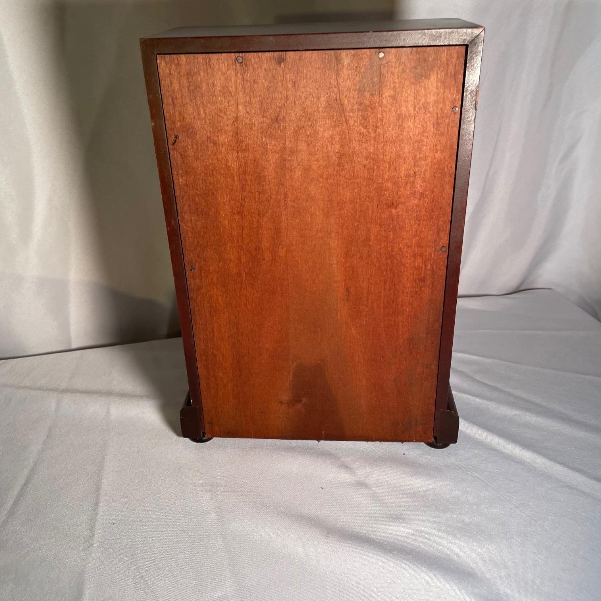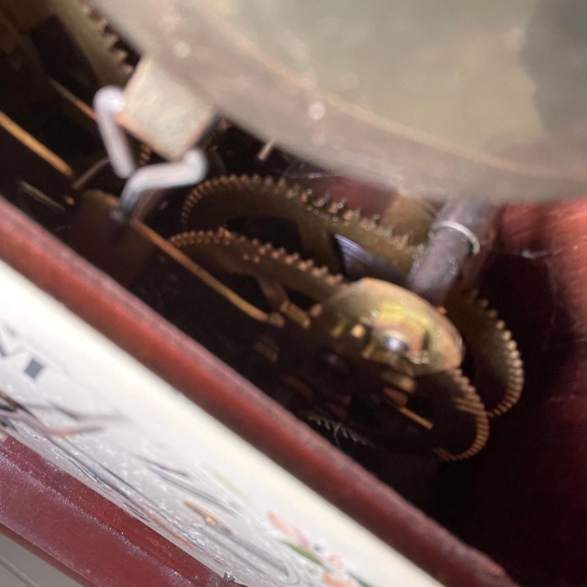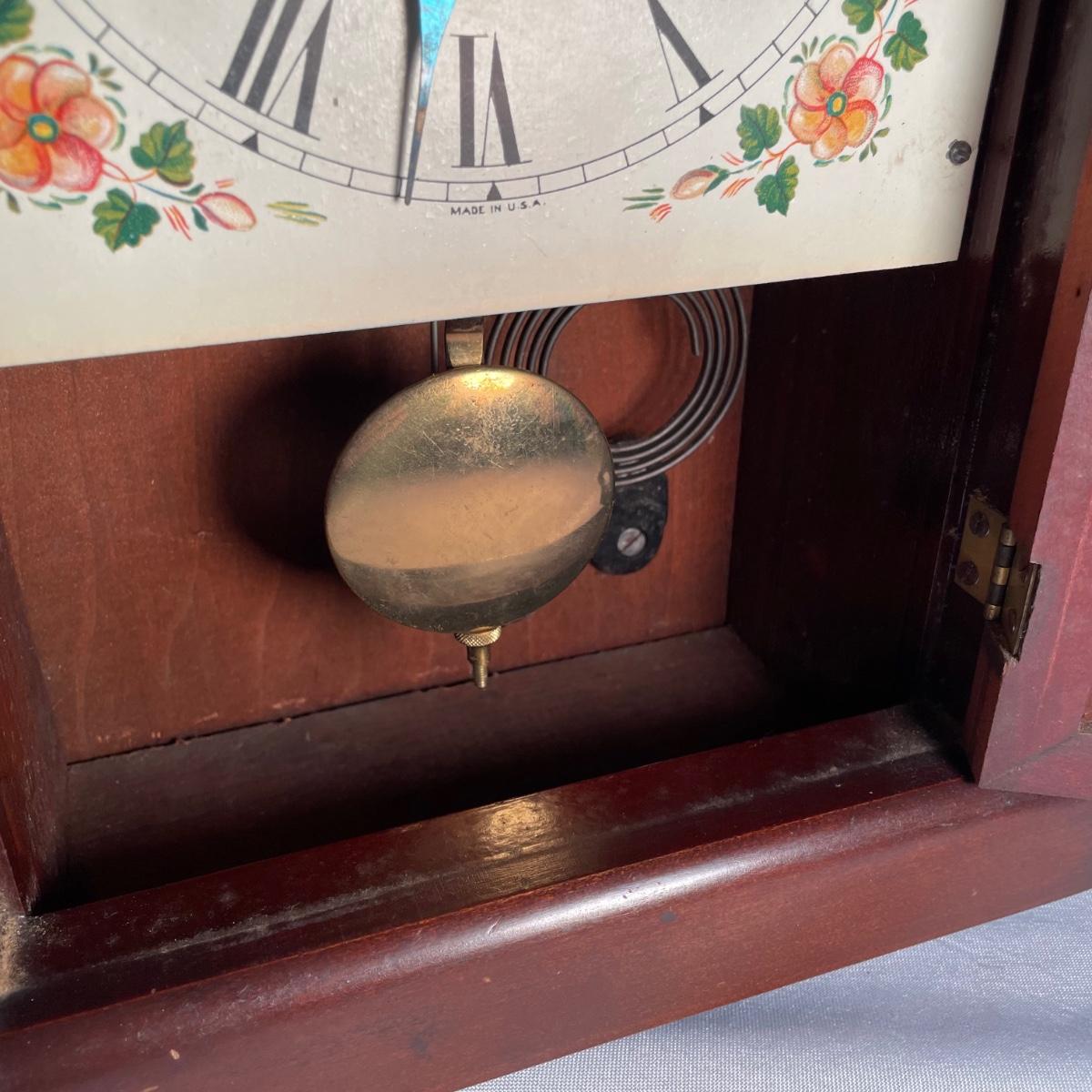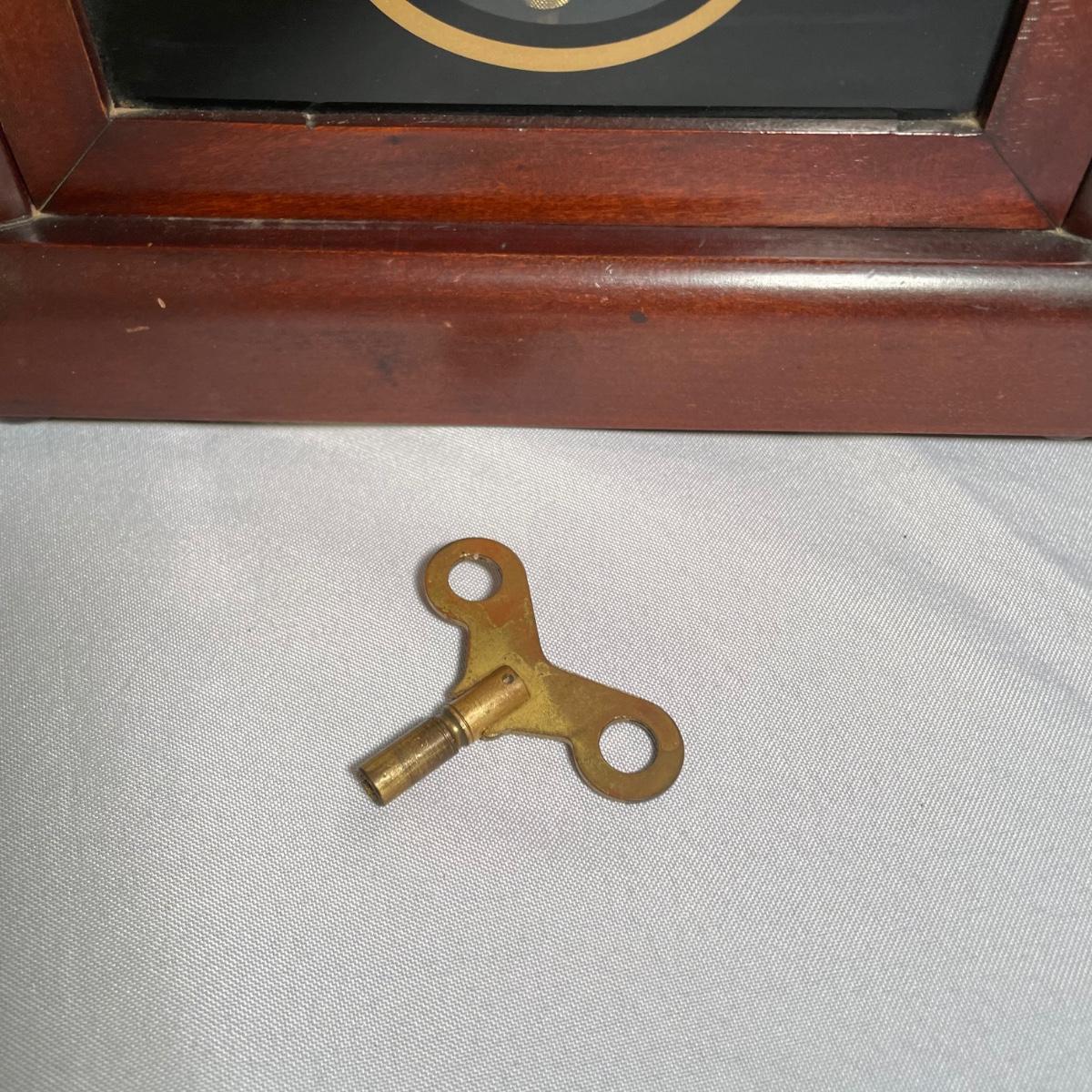 This mantel clock comes complete with key and an extra attachment that may or not belong to it. Clock is in good condition but is currently not working - winds freely but pendulum does not maintain movement, however, it does chime.