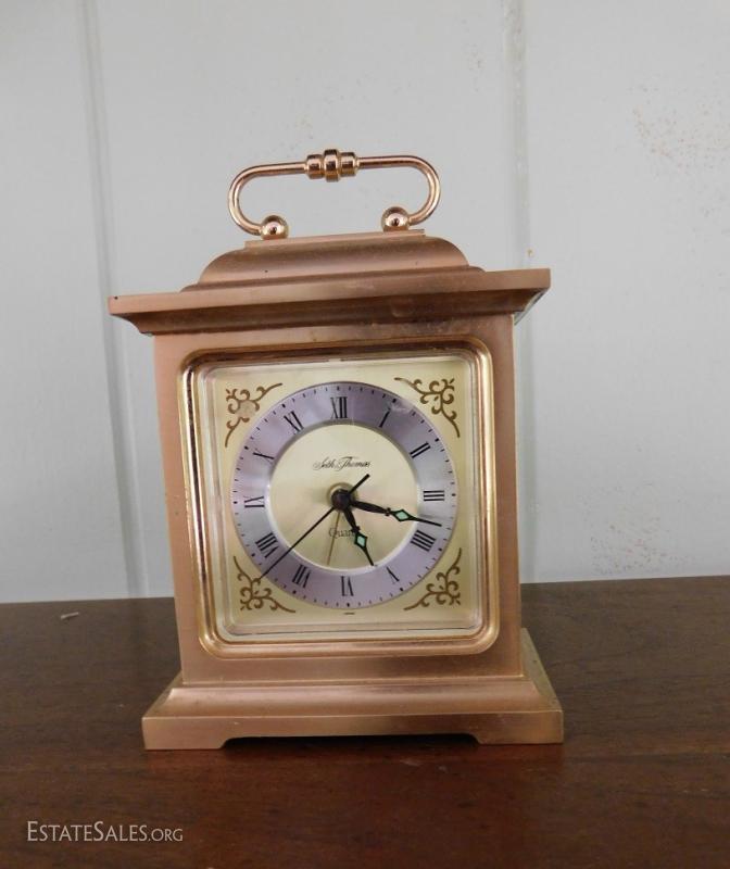 Solid brass Seth Thomas small mantle clock. Battery operated. Needs cleaning. Shipping Available.