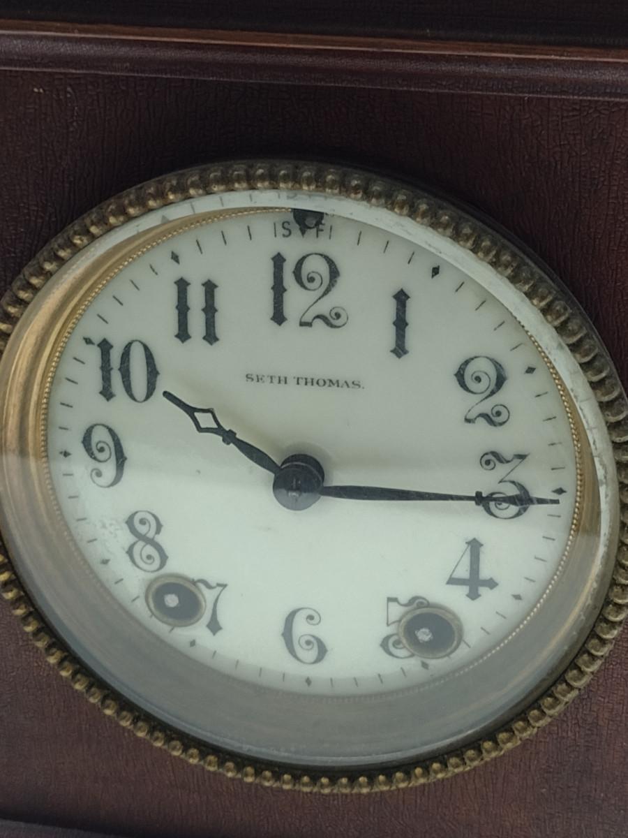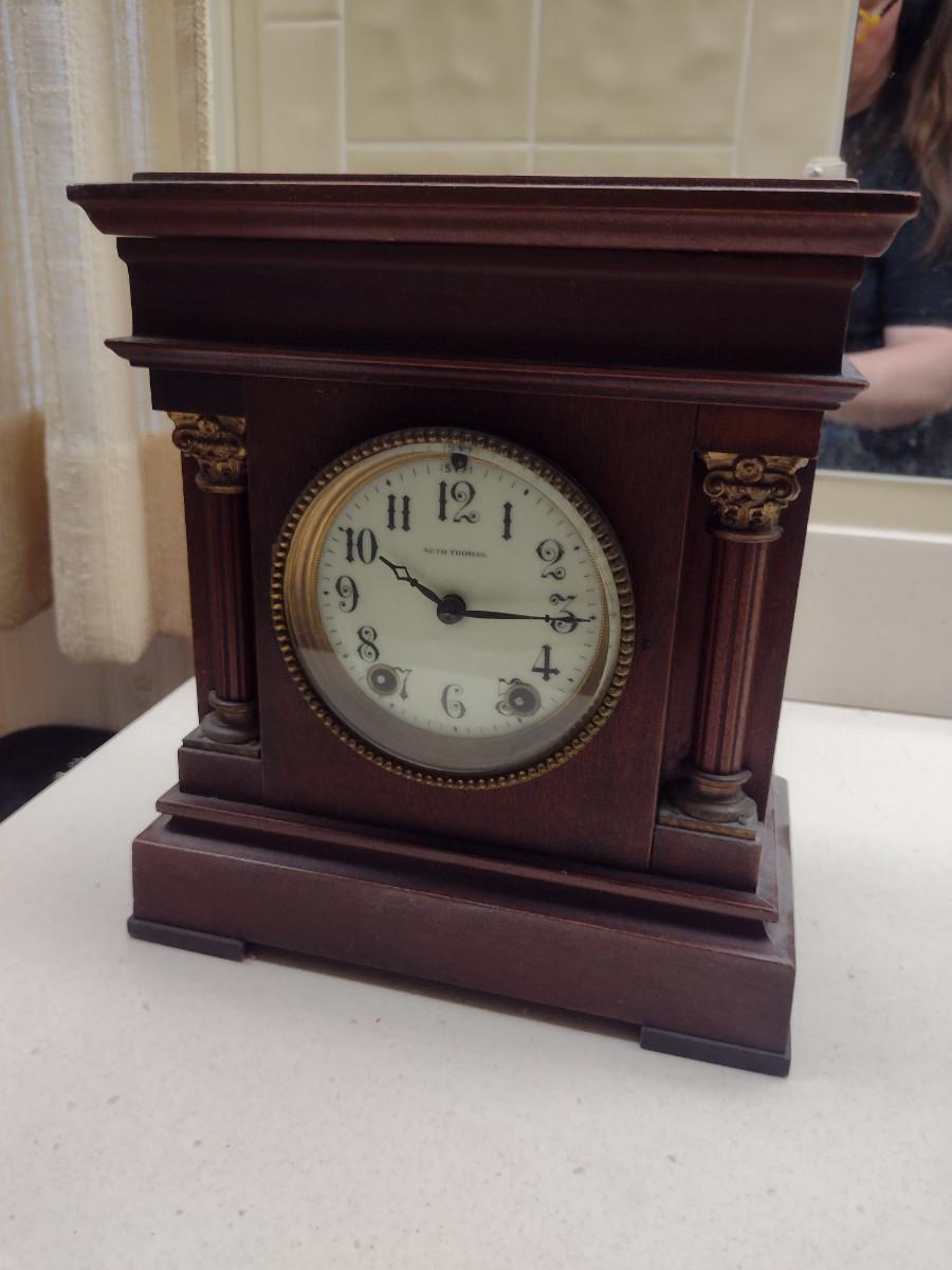 Seth Thomas Wood Case Table/Mantle Clock with Key- Approx 10 3/4" Tall