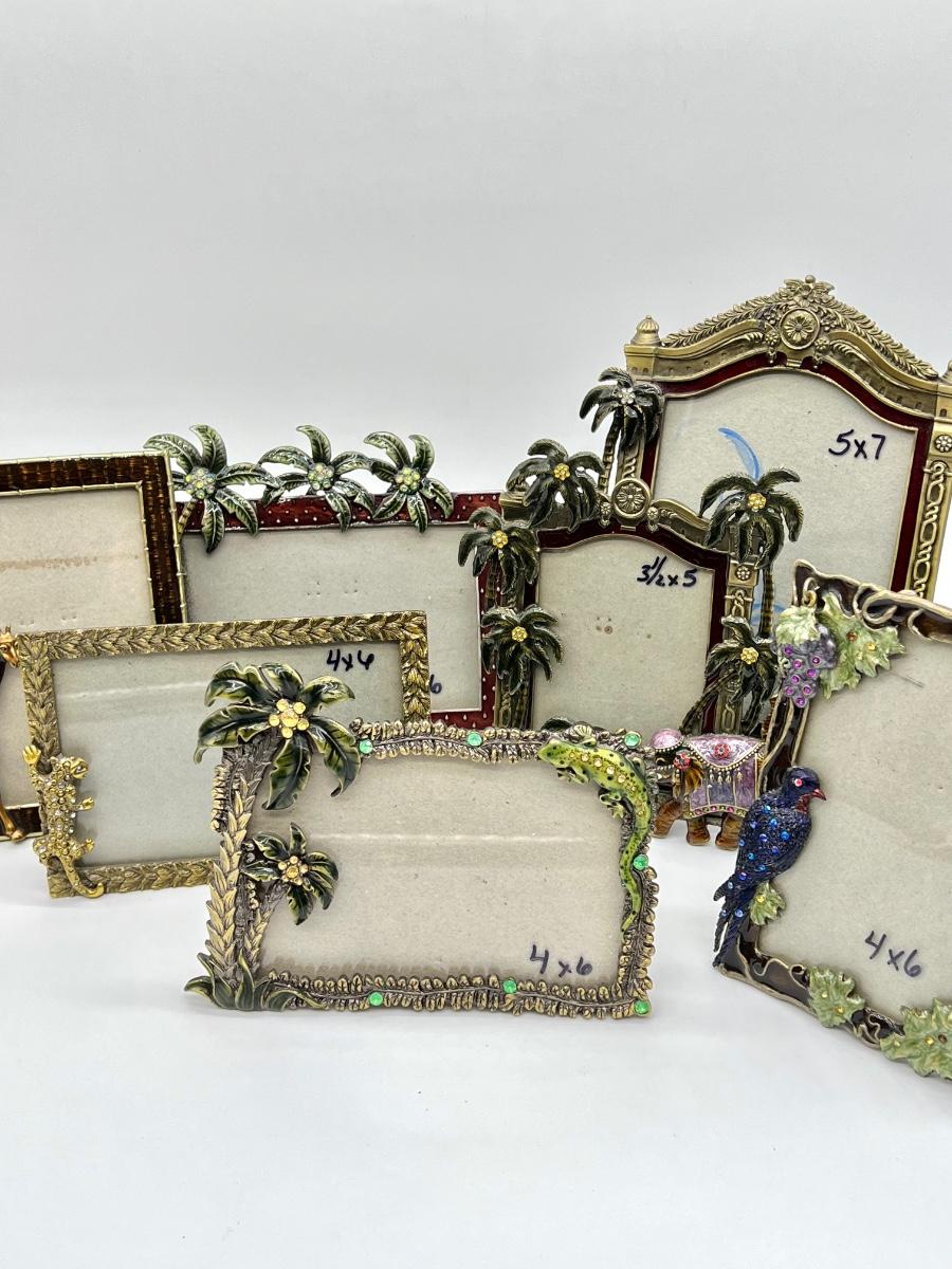 Seven (7) Assorted Safari Themed Enameled & Bejeweled Picture Frames