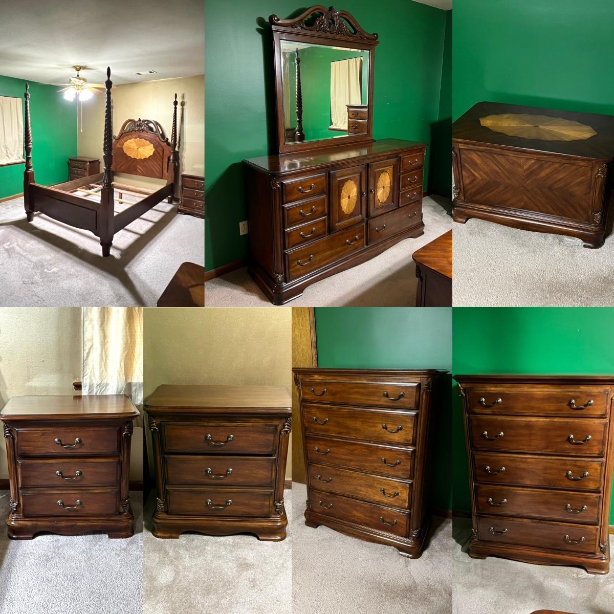 Eight (8) Piece Inlaid Queen / Full Bedroom Suite