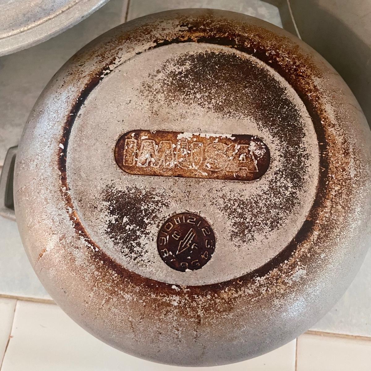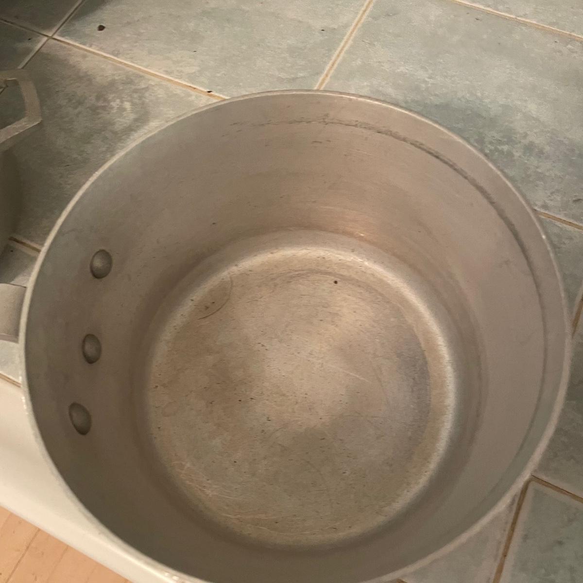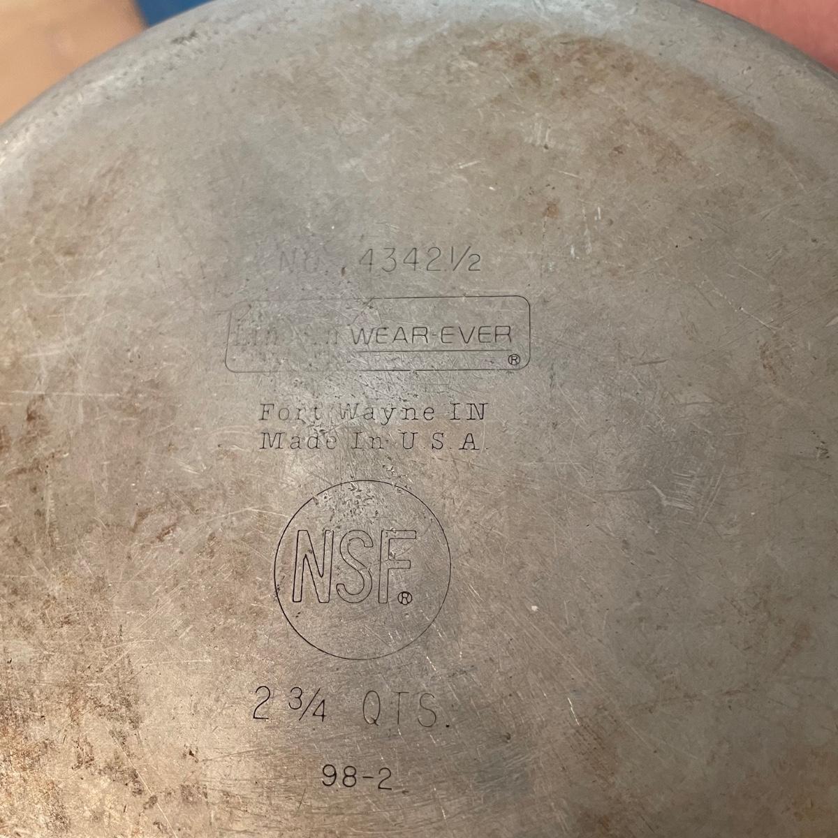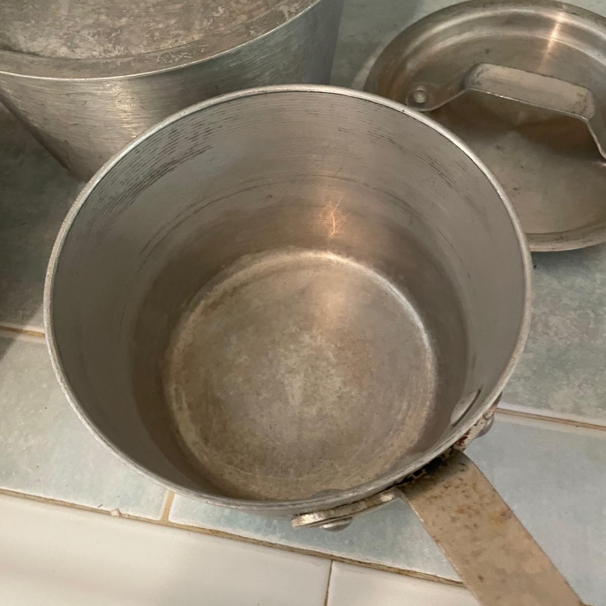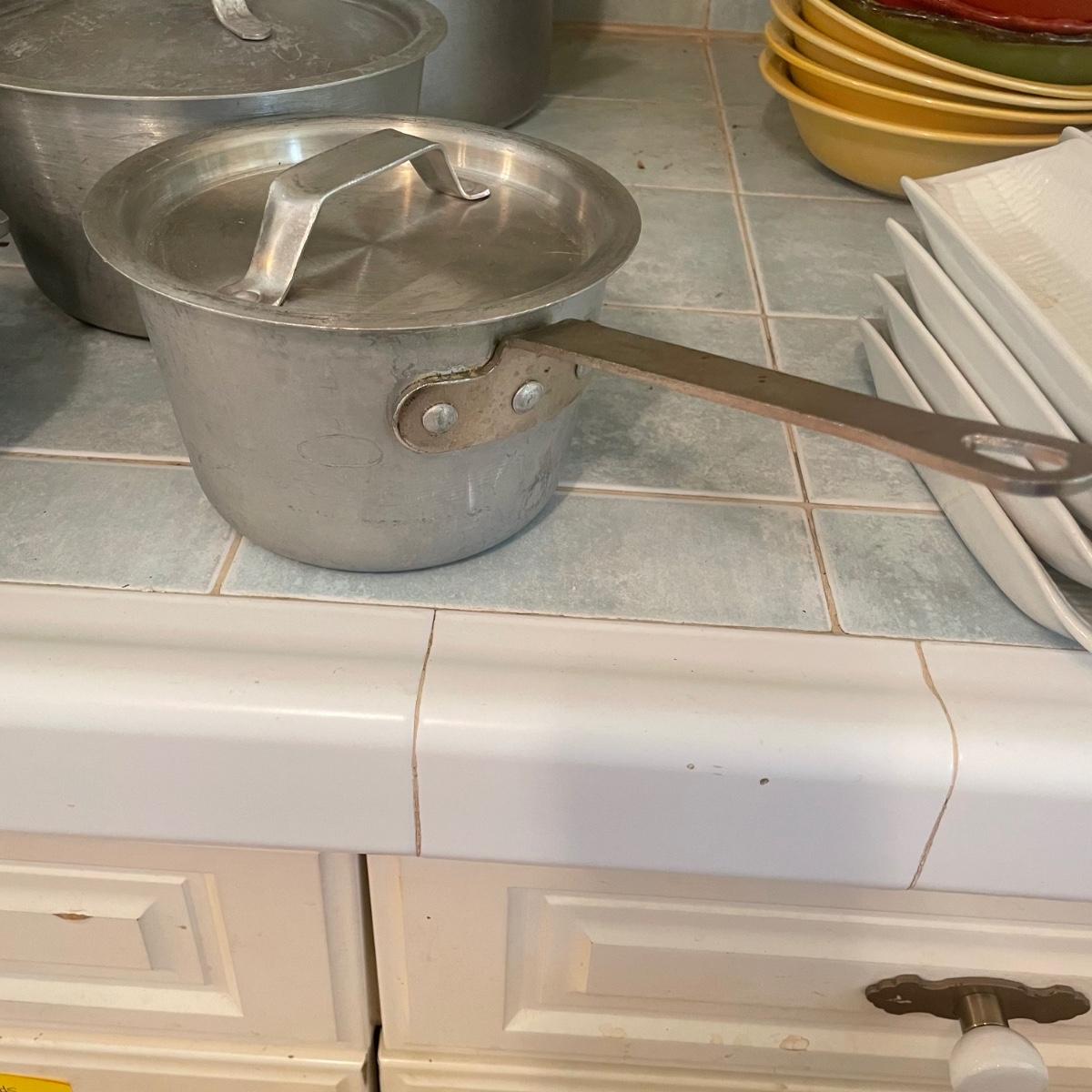 Great quality assortment of aluminum commercial style cooking pots and pans. All have lids. Brand names are Wear-Ever, NSF, IMUSA and WINCO. All pans are in good condition but all show typical wear and tear from use.