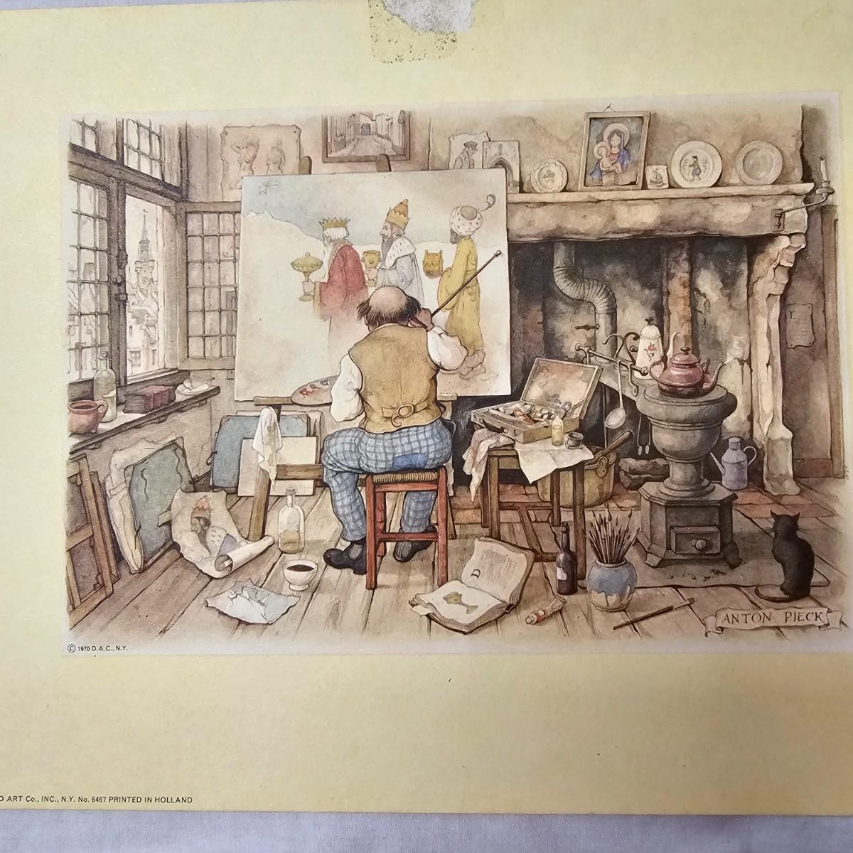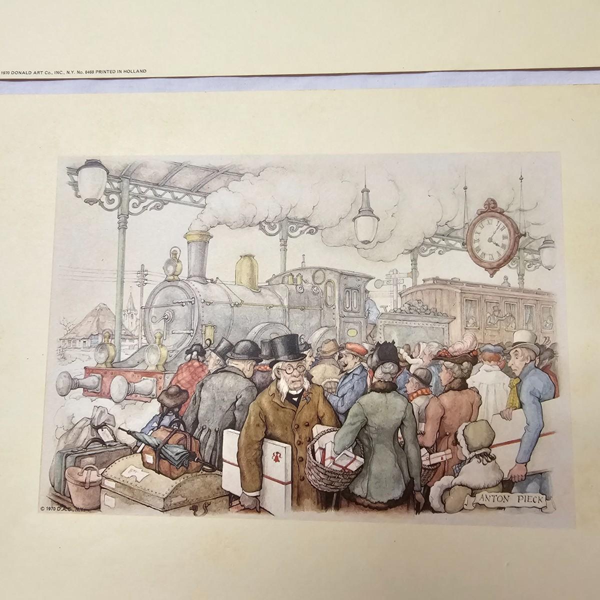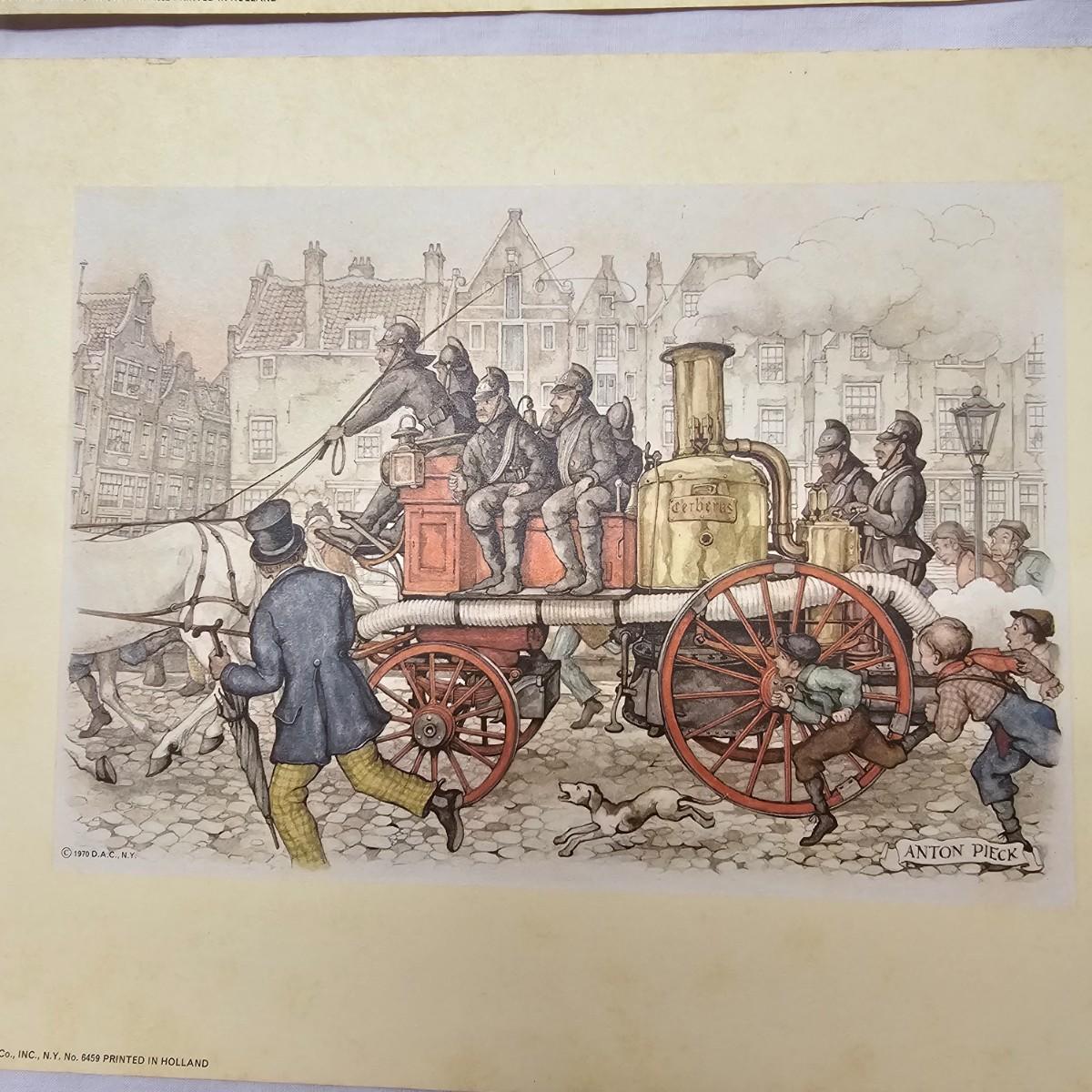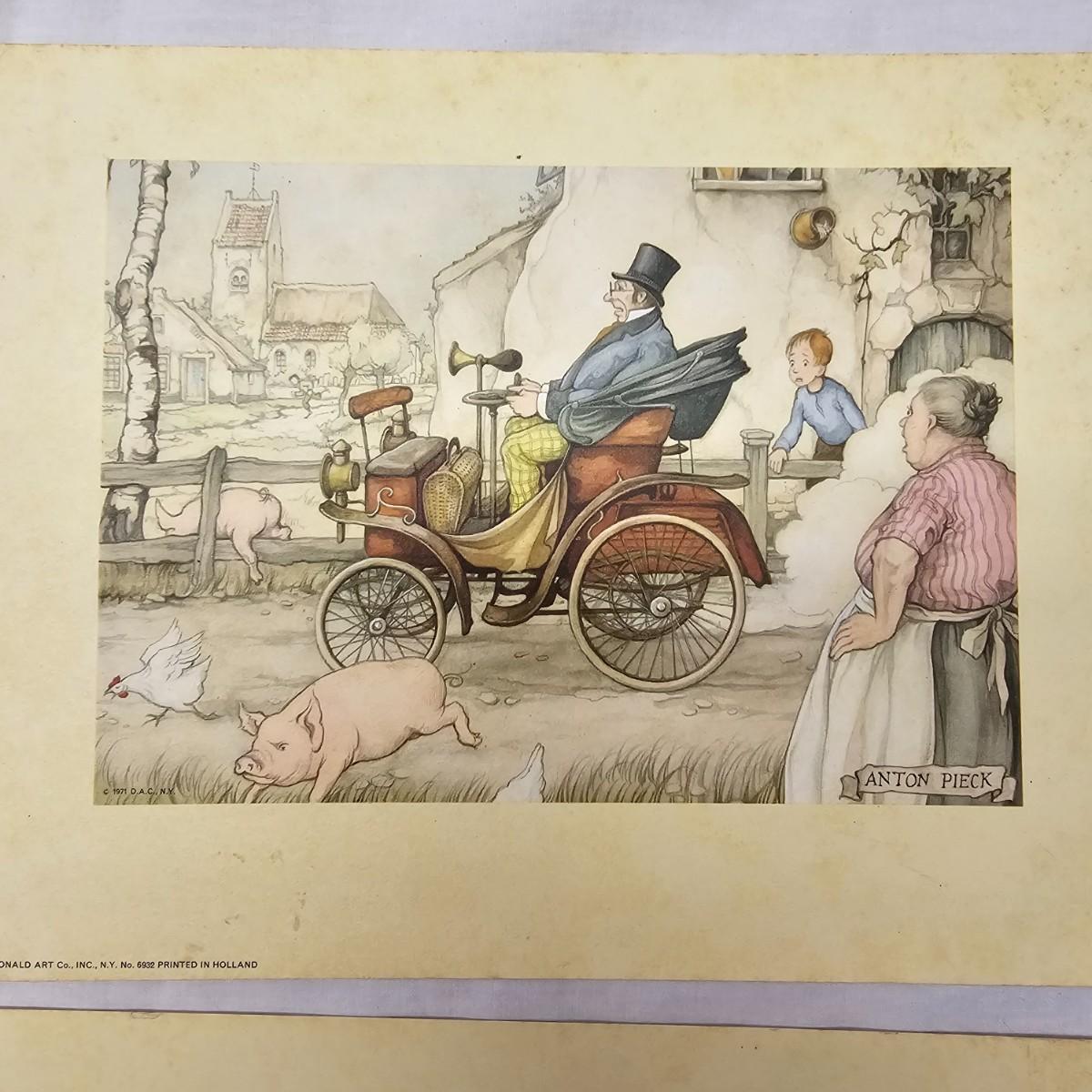 Seven colorful small prints of life appearing to be in Holland. Prints show day to day activities and more each piece measures 9"W x 7"H. There is some discoloration on sides and edges. See photos for details. Shipping available.