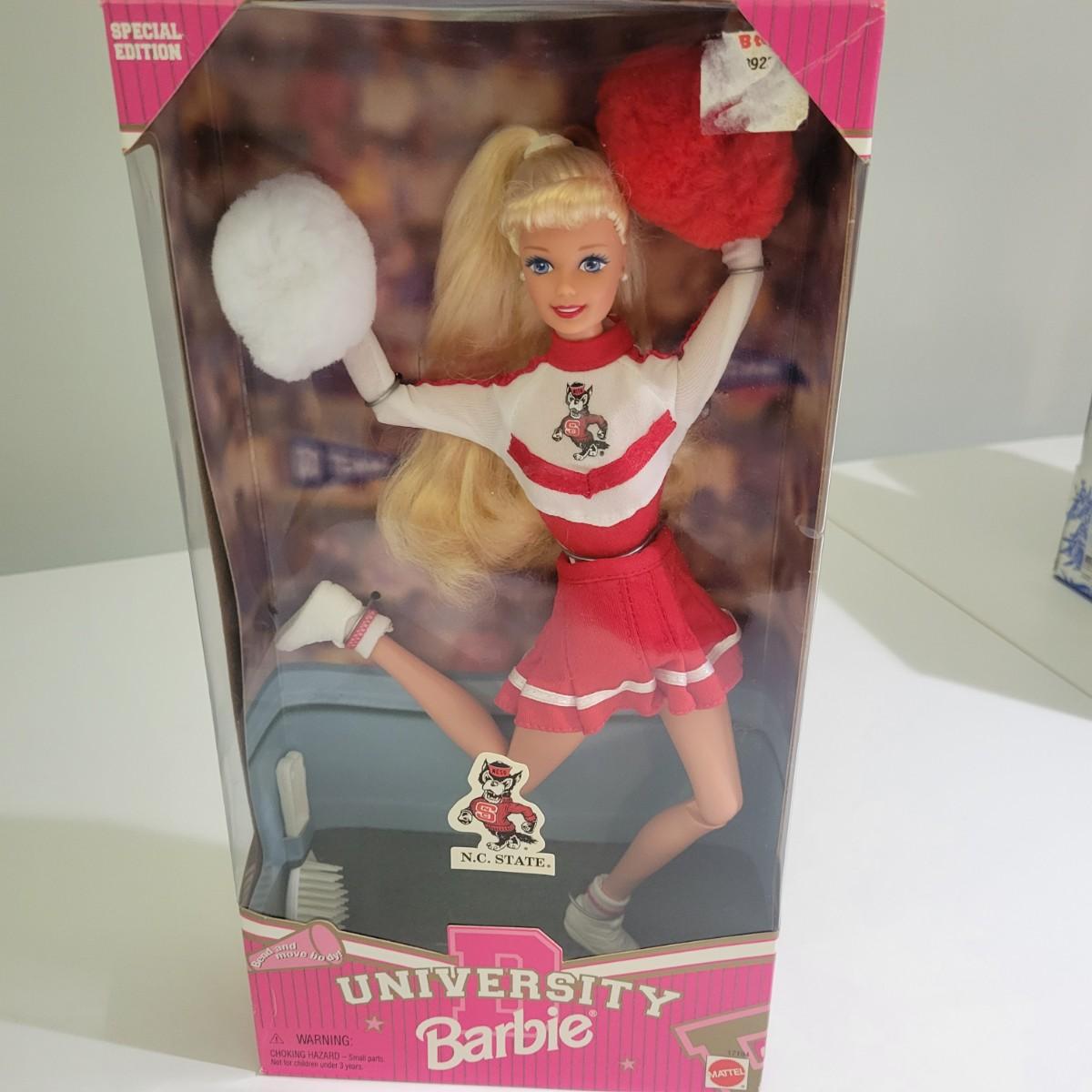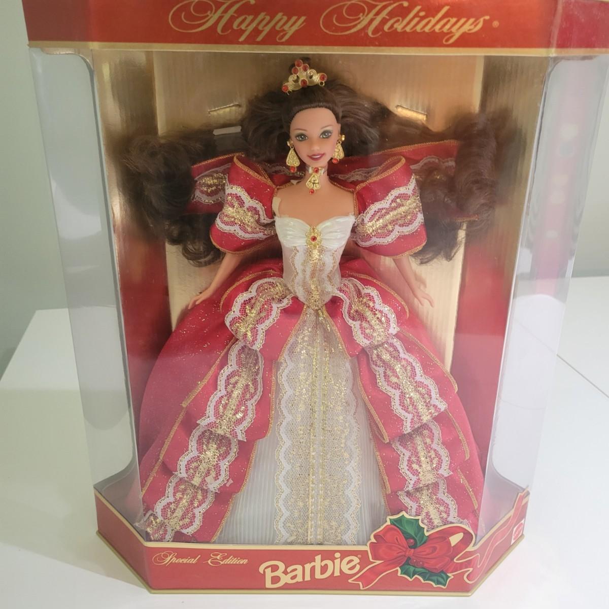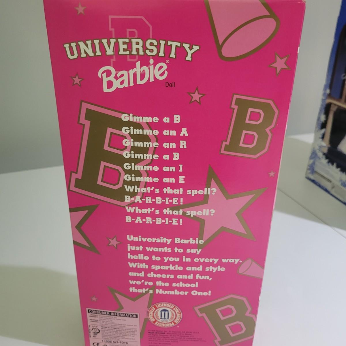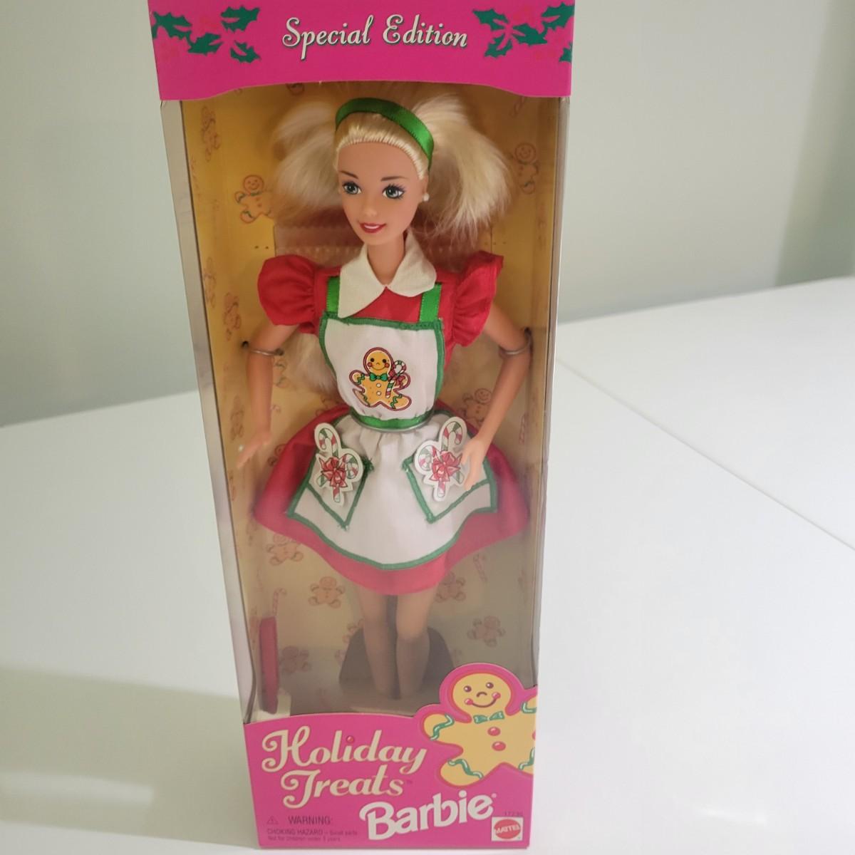 A collection of seven collectable Barbies that are in excellent condition with no damage. Boxes are also in excellent condition with no damage. Lot includes three holiday Barbies, a Cinderella Barbie, University Barbie, Barbie and Ginger and 35th anniversary Barbie. Largest box measures approximately 12" x 4" x 14" Shipping available