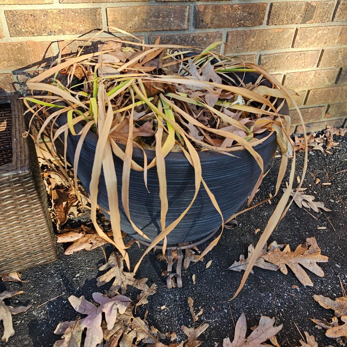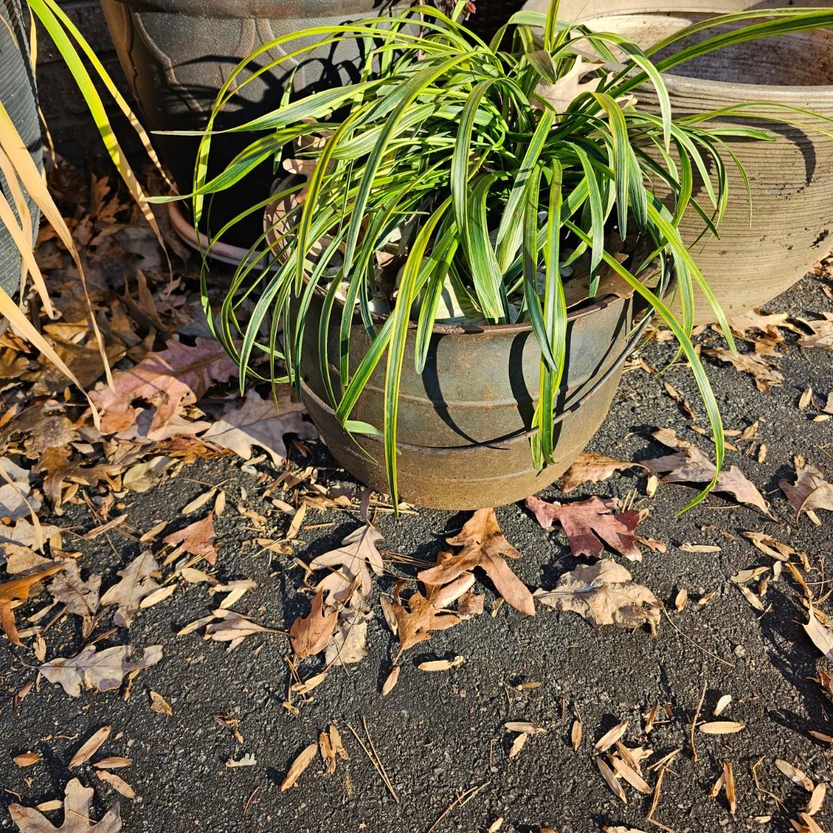 Two pairs of matching planters. One set is round with stands and measures 16"D x 15"H. One set is square faux rattan and measures 11" x 11" x 11"H. Also includes two other plastic items and one cast iron kettle planter with bail handle, 12"D x 10" H. Some items with plants others awaiting a new start. See photos for details. Local pickup only.
