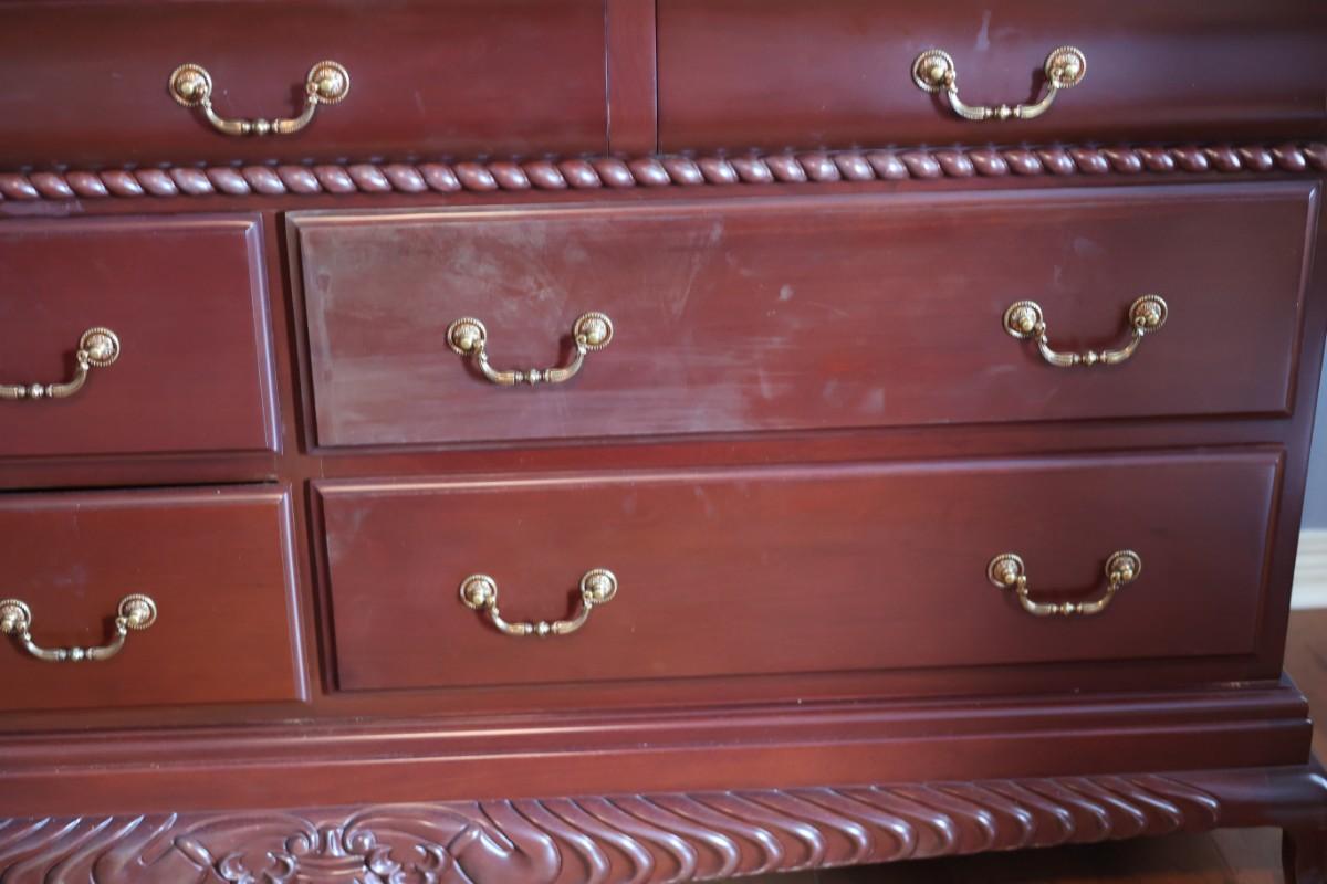 The middle right drawer has discoloration, please see pictures.