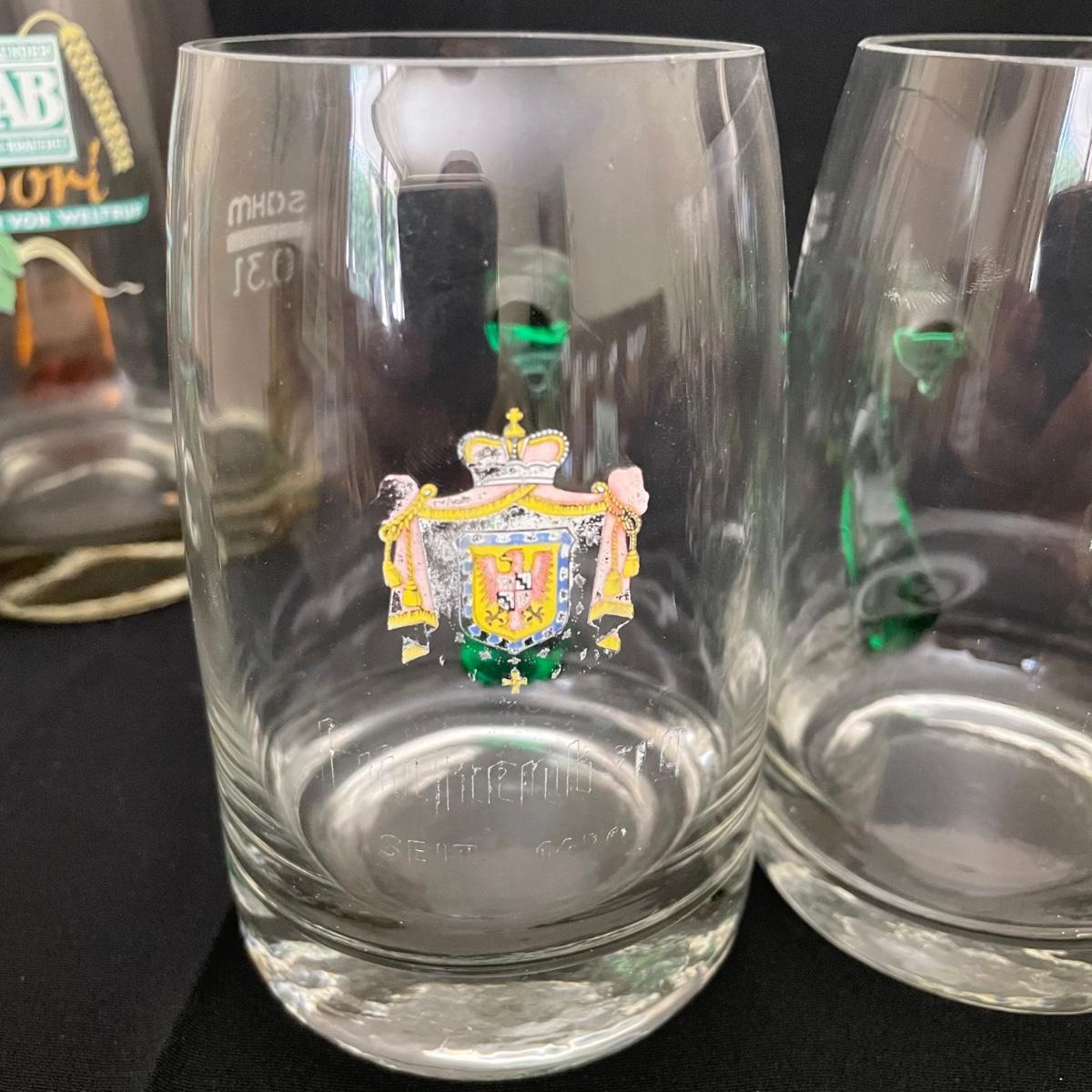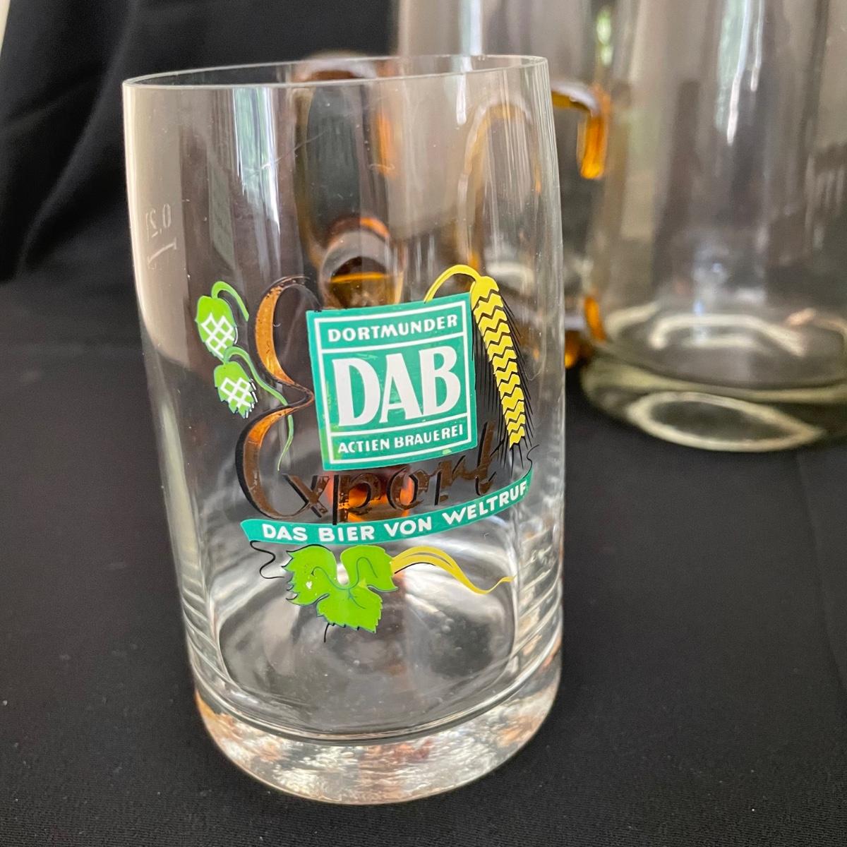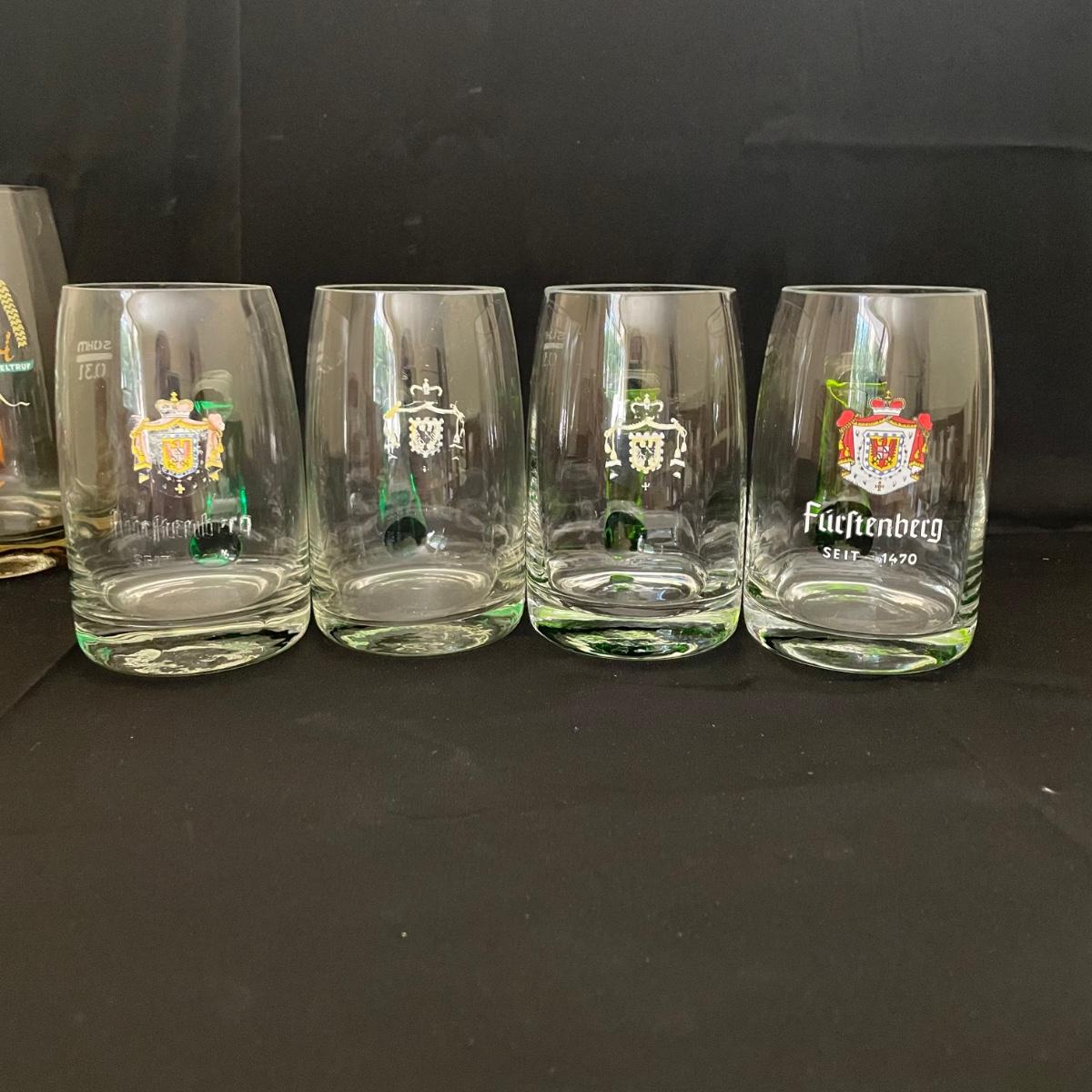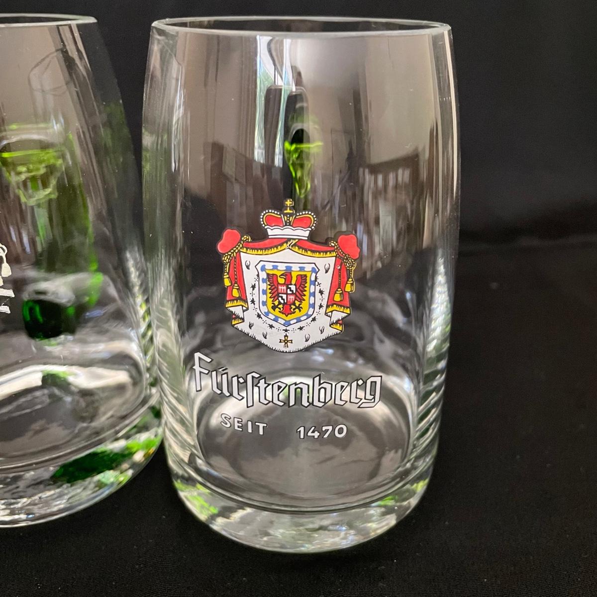 Two .5 liter and one .2 liter from DAB brewery plus four .3 liter Fúrftenberg steins. Three of these steins have faded shields. All seven have colored handles. See images. Shipping available.