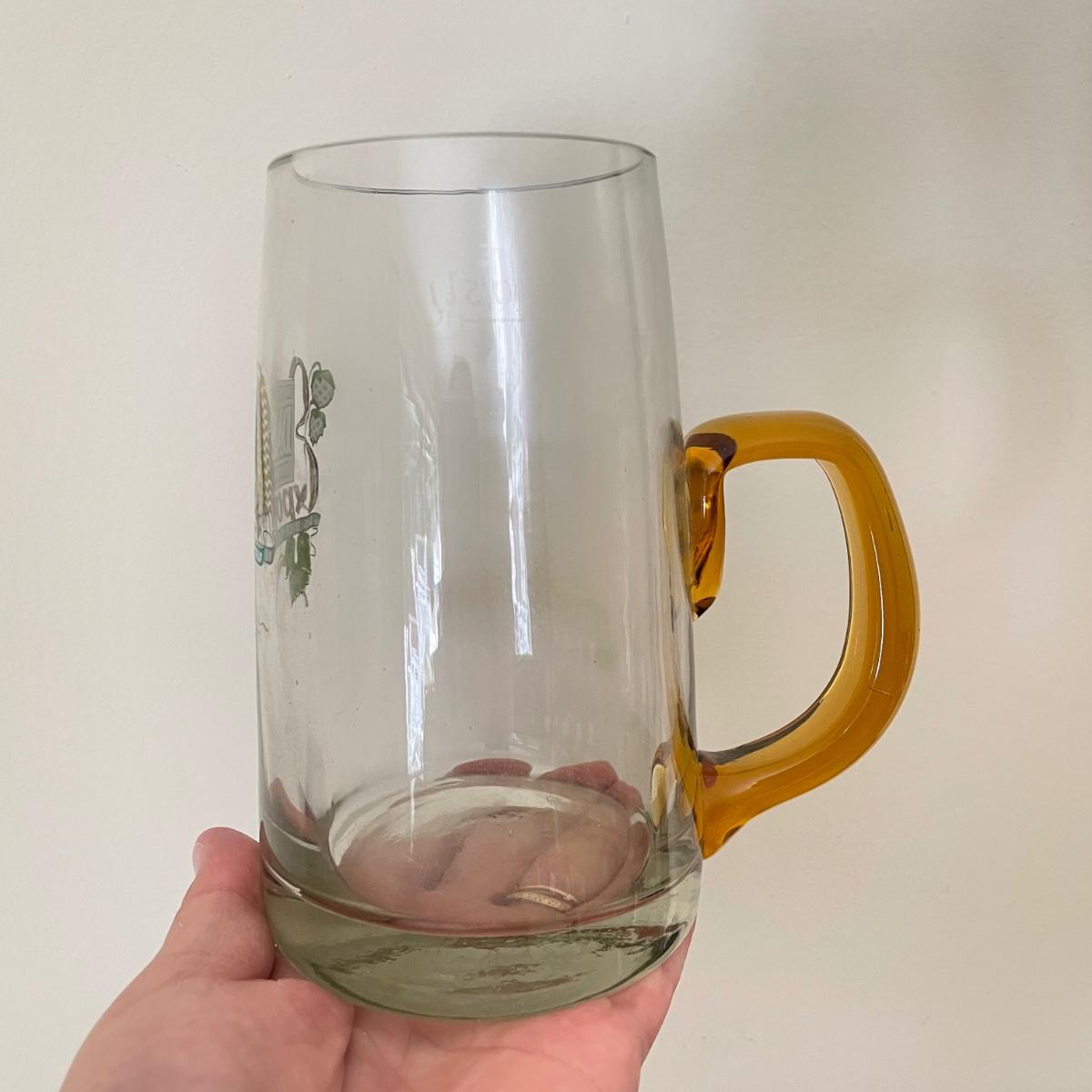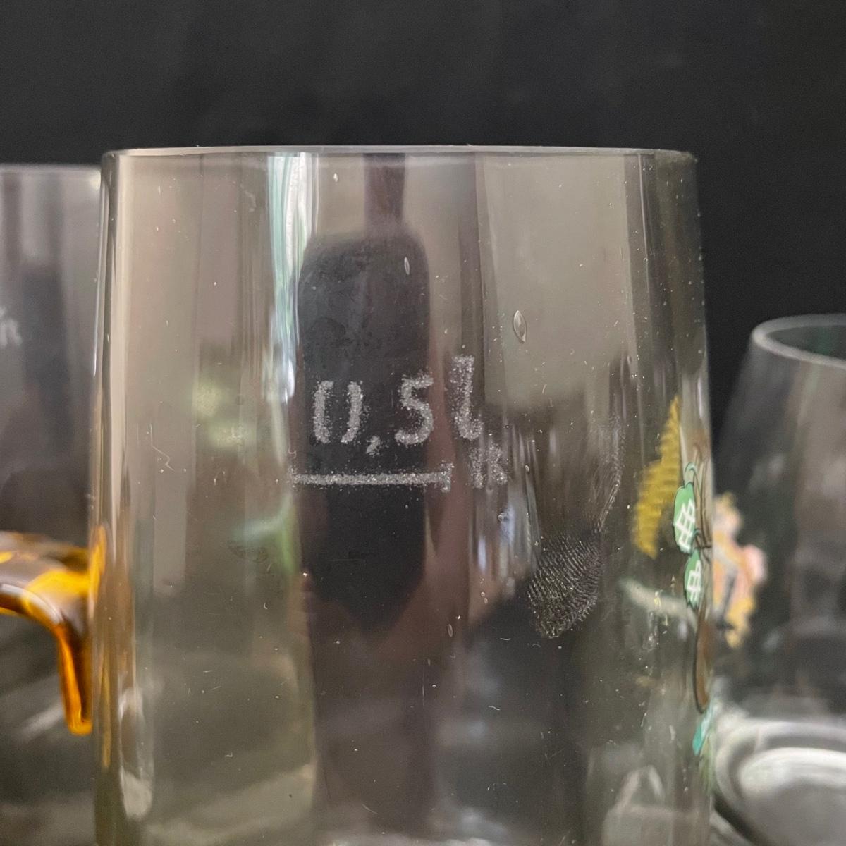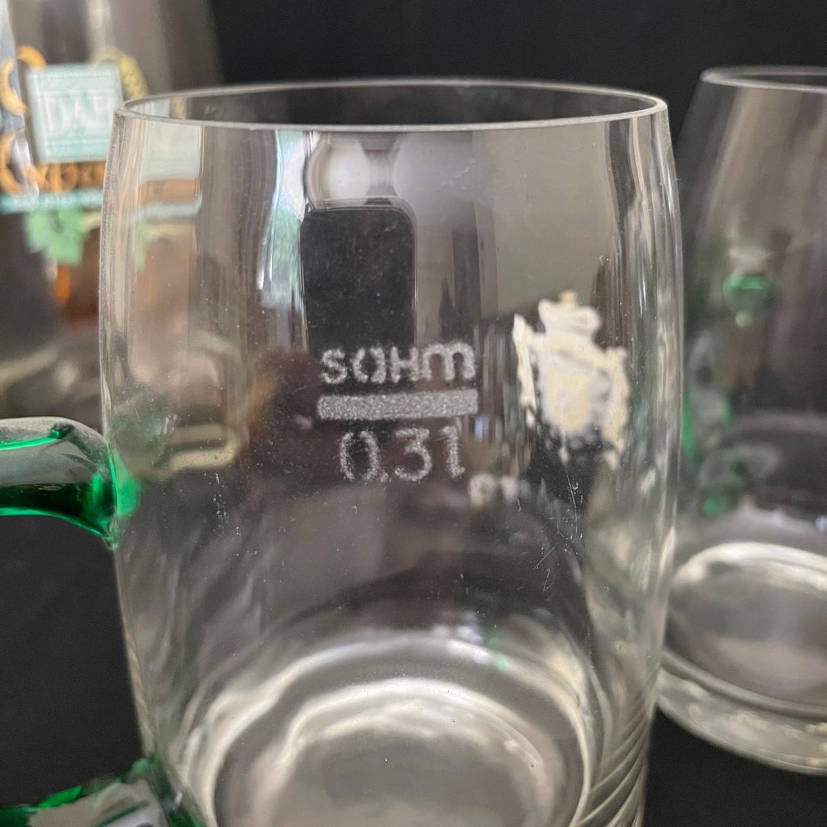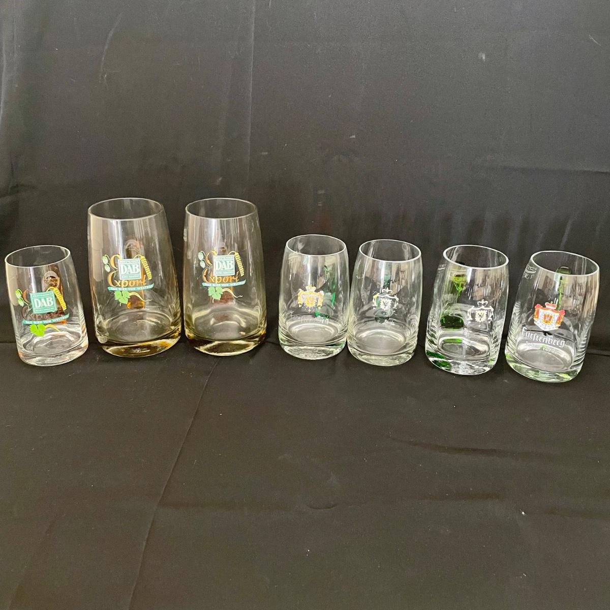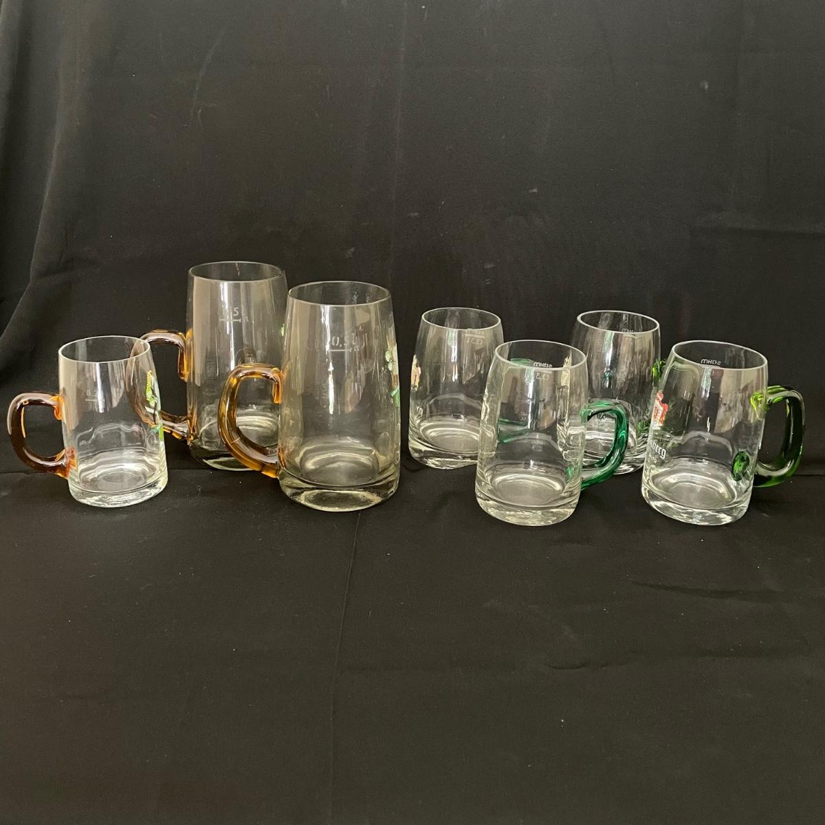Seven Glass German Logo Steins with Colored Handles (K - SS)