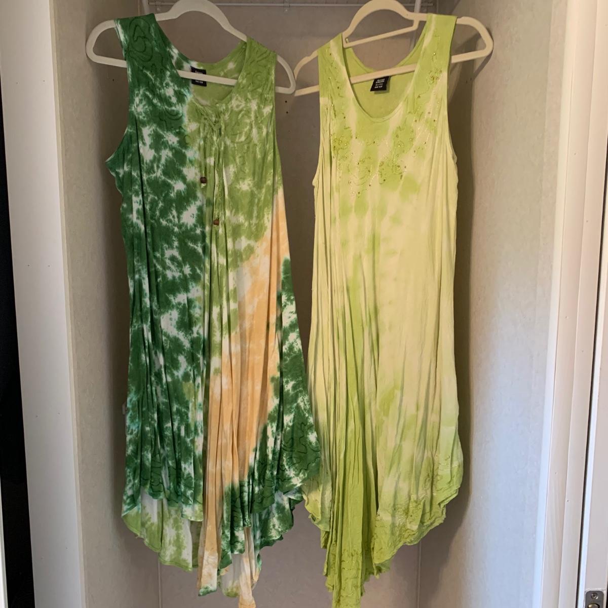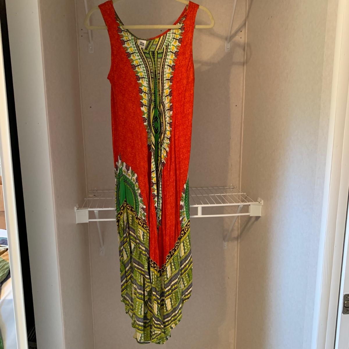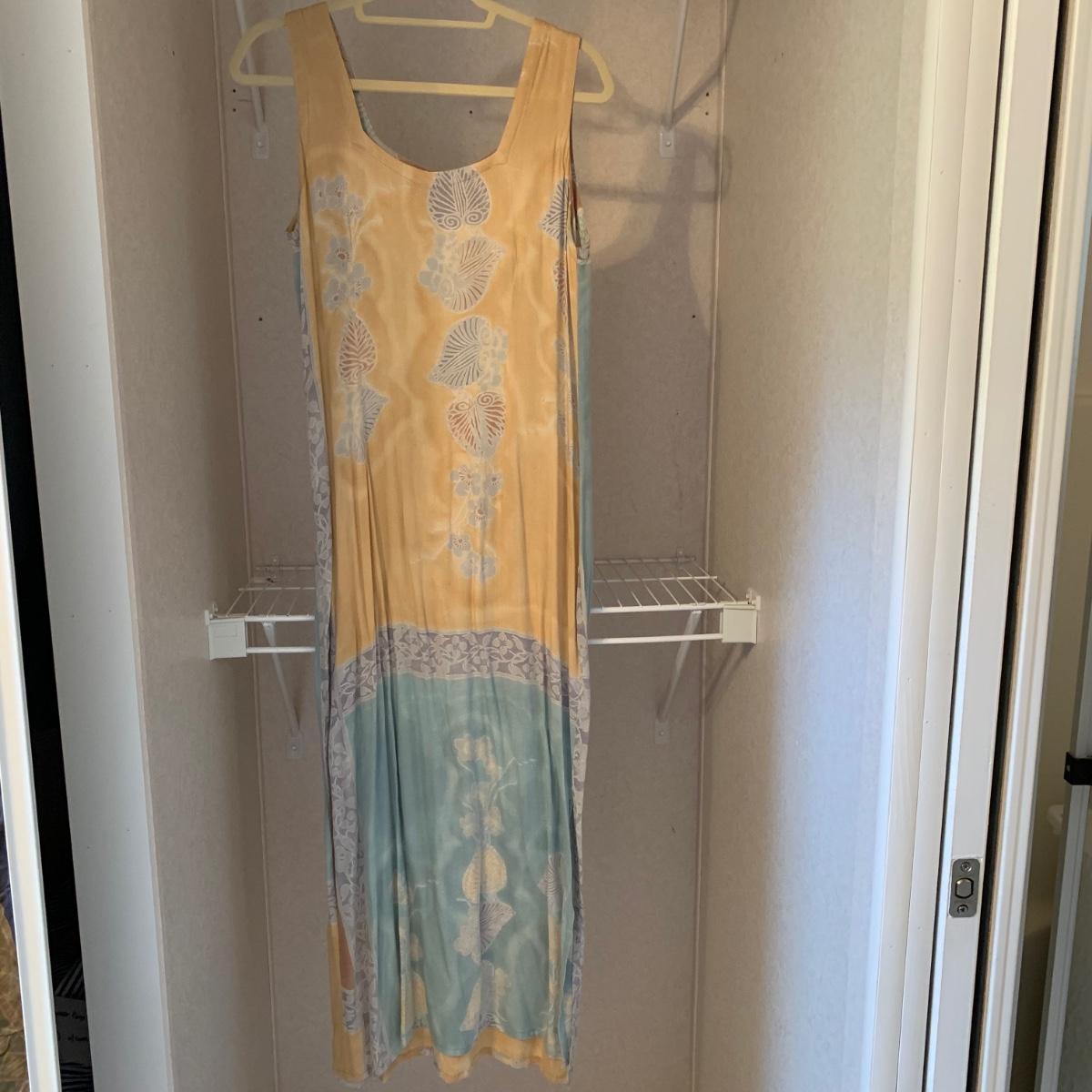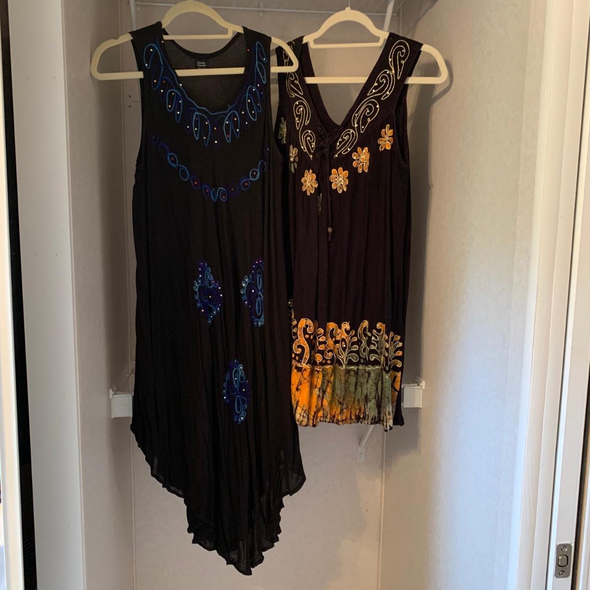 11 dresses total in this collection of colorful flowy summer dresses, as well as three sarongs. Eight of the dresses are Seven Islands brand that are all labeled “˜one size’ and are made of soft 100% rayon (bamboo) fabric. There is also a Calvin Klein (size 6), a Los Manos (size S), and a Skye dress (size M). Hangers are not included.
