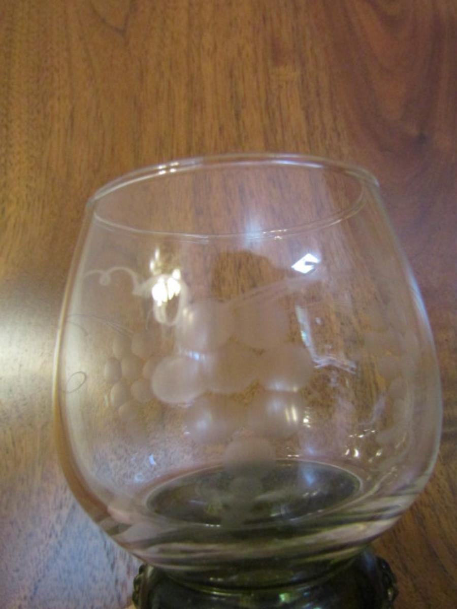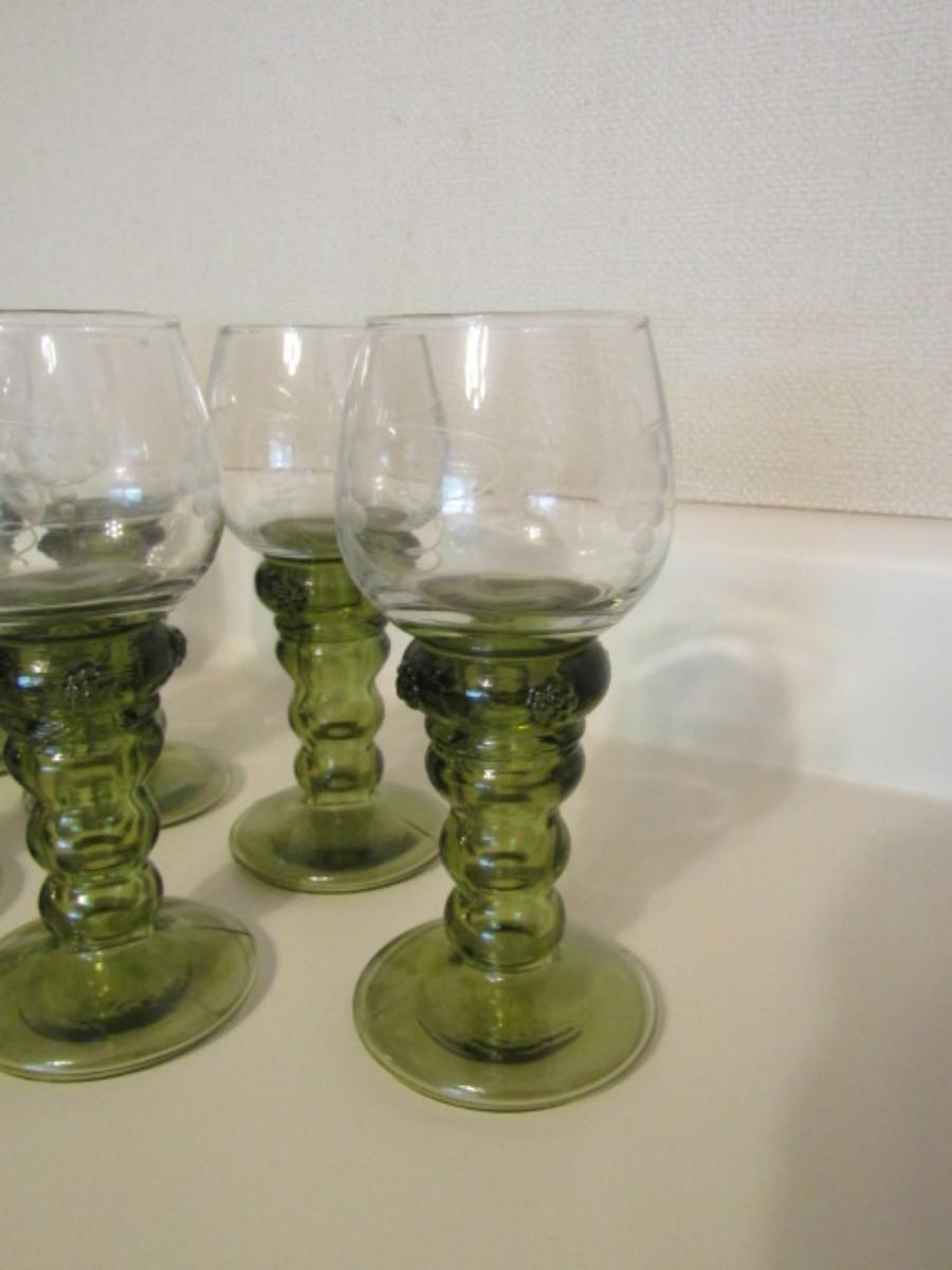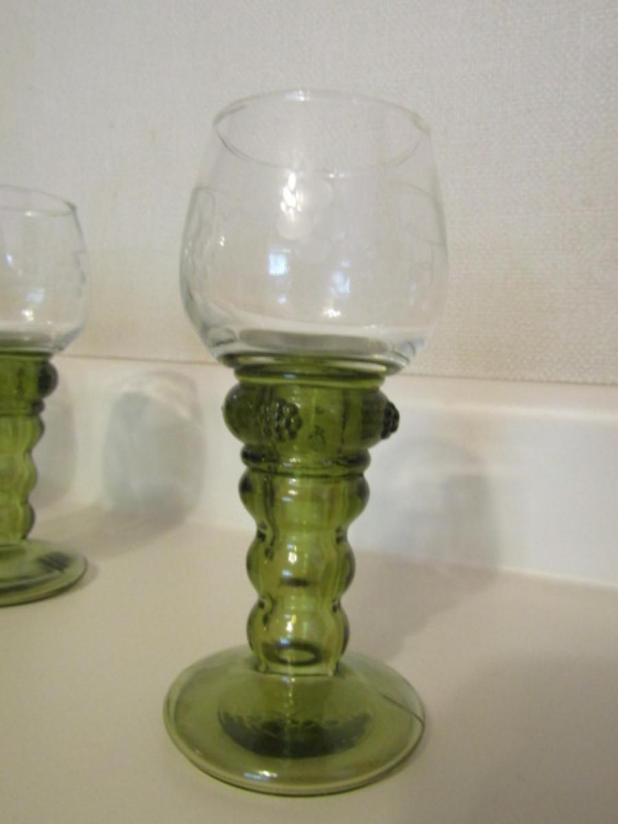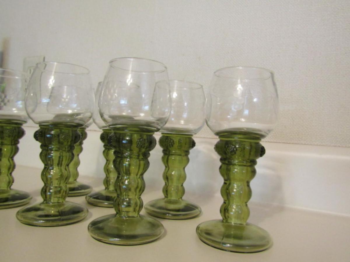 Seven Mid Century Style Green Stemmed Wine/Cordial Glasses