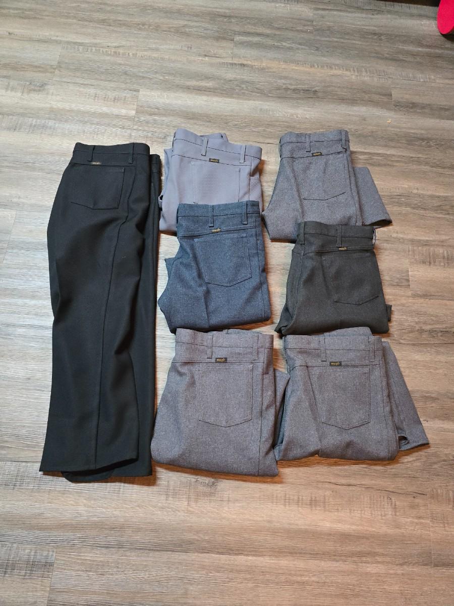 Seven pair of men's Wrangler brand slacks - see pictures for all sizes