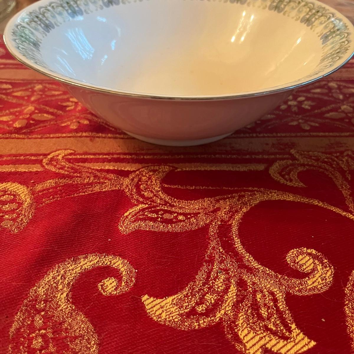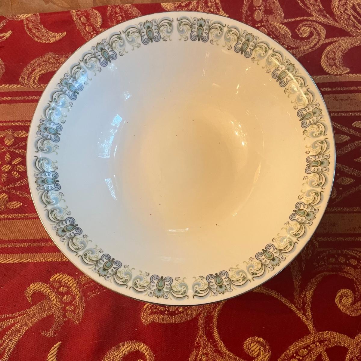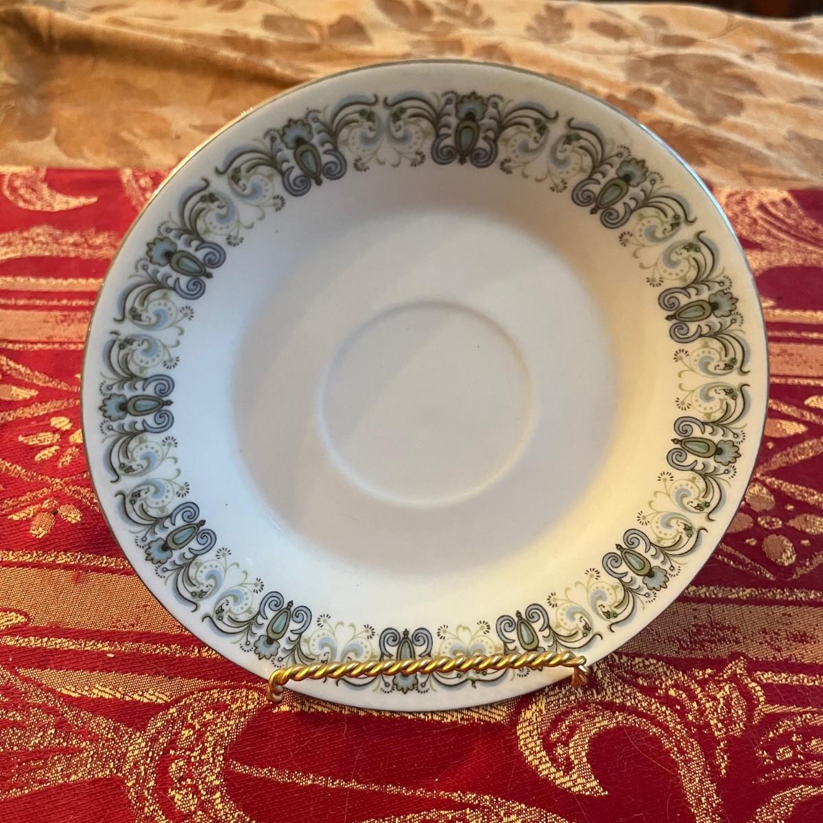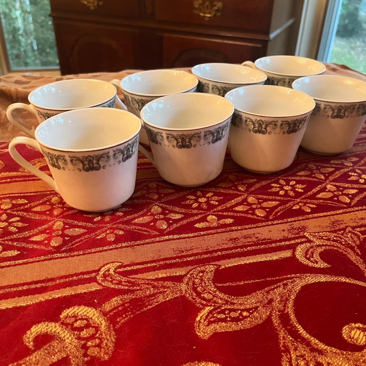 lot includes a seven person setting China set. Includes eight dinner plates, bowls, small plates and tea cups. Also includes one large bowl creamer and sugar bowl and seven saucers.