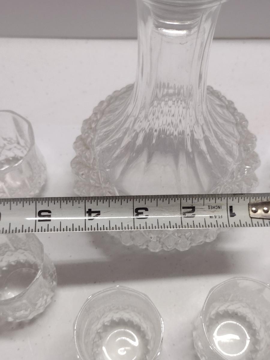 Seven Piece Decanter and Cordial Glass Set. Edge of decanter has some chipping- please see all pictures for condition.