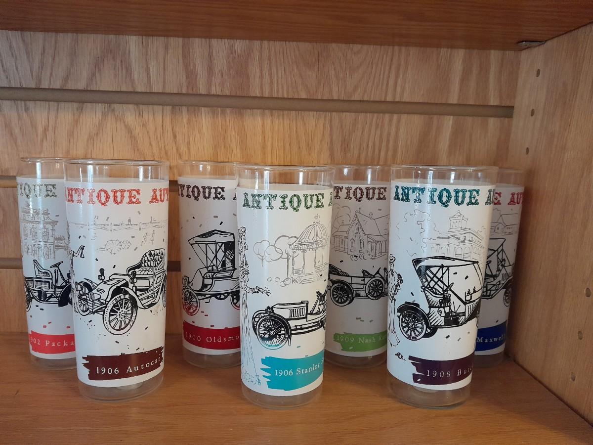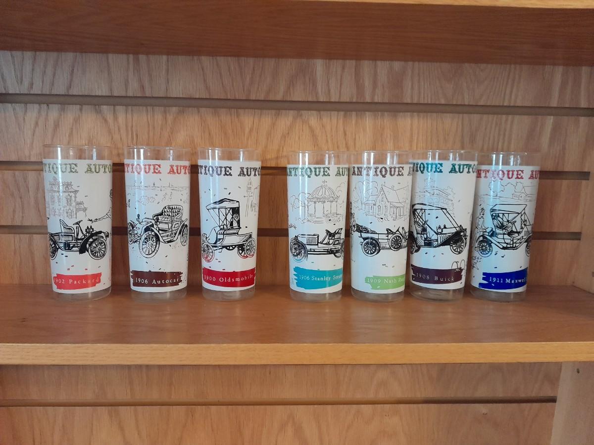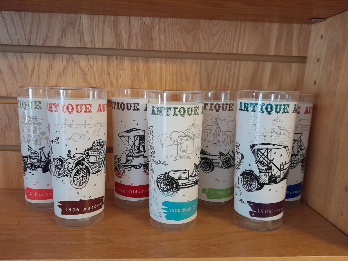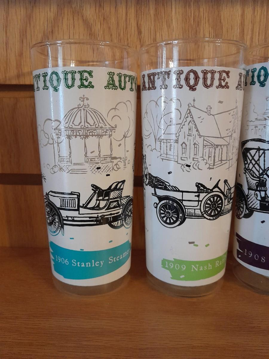 EIGHT VINTAGE ANTIQUE AUTO'S 16 oz DRINKING GLASSES