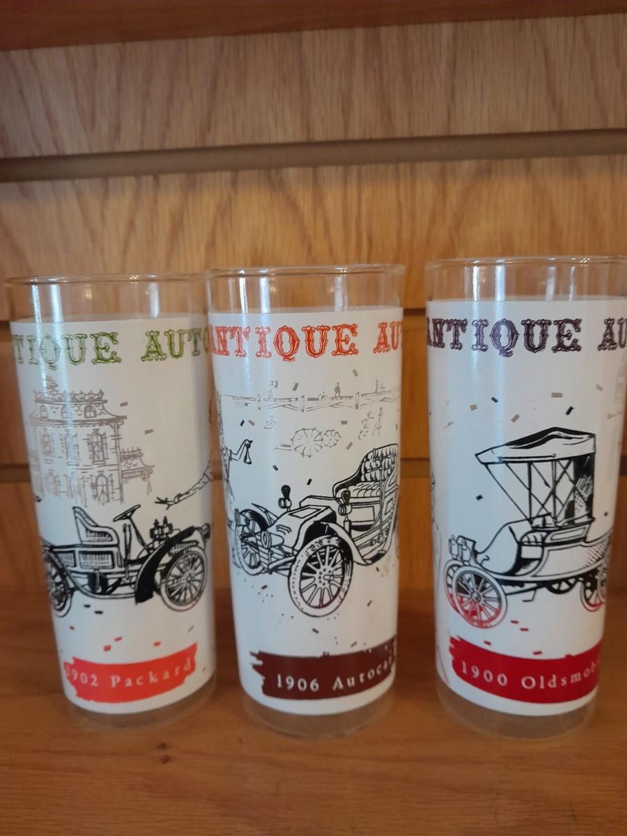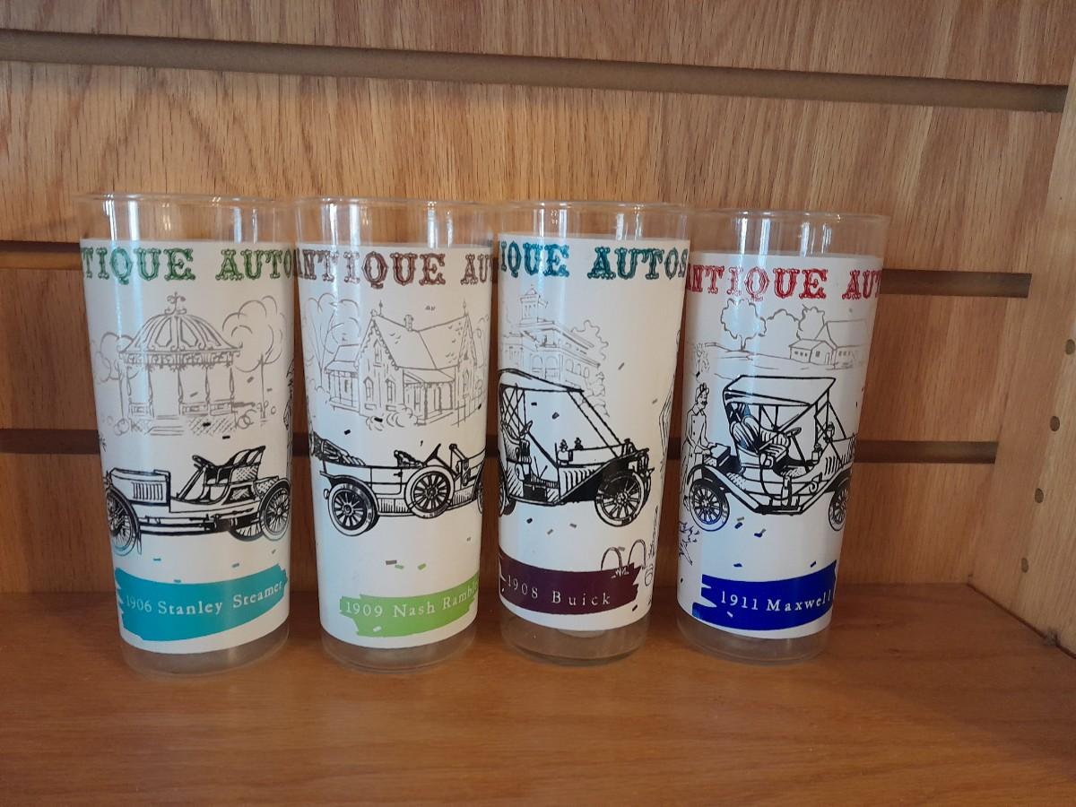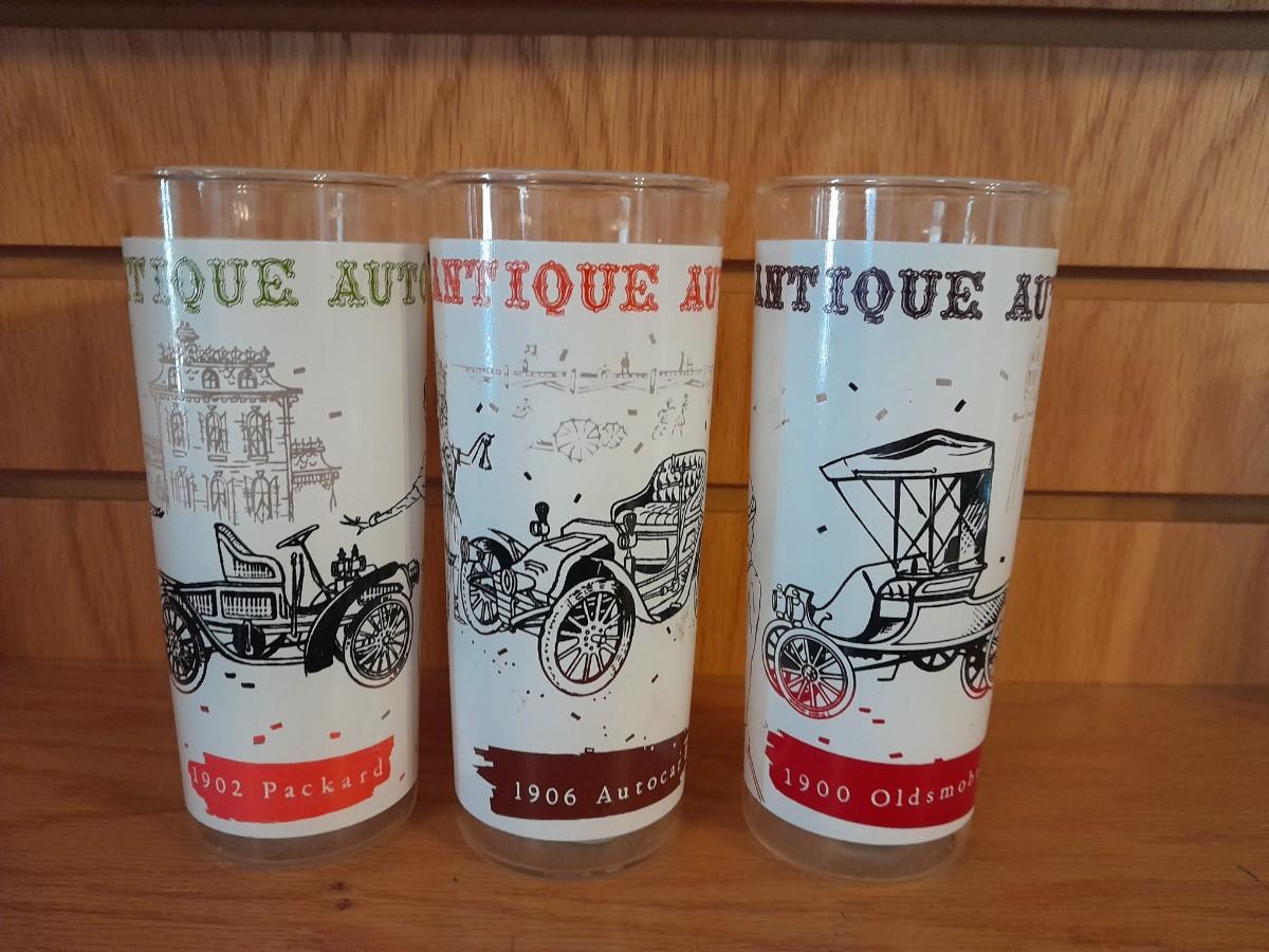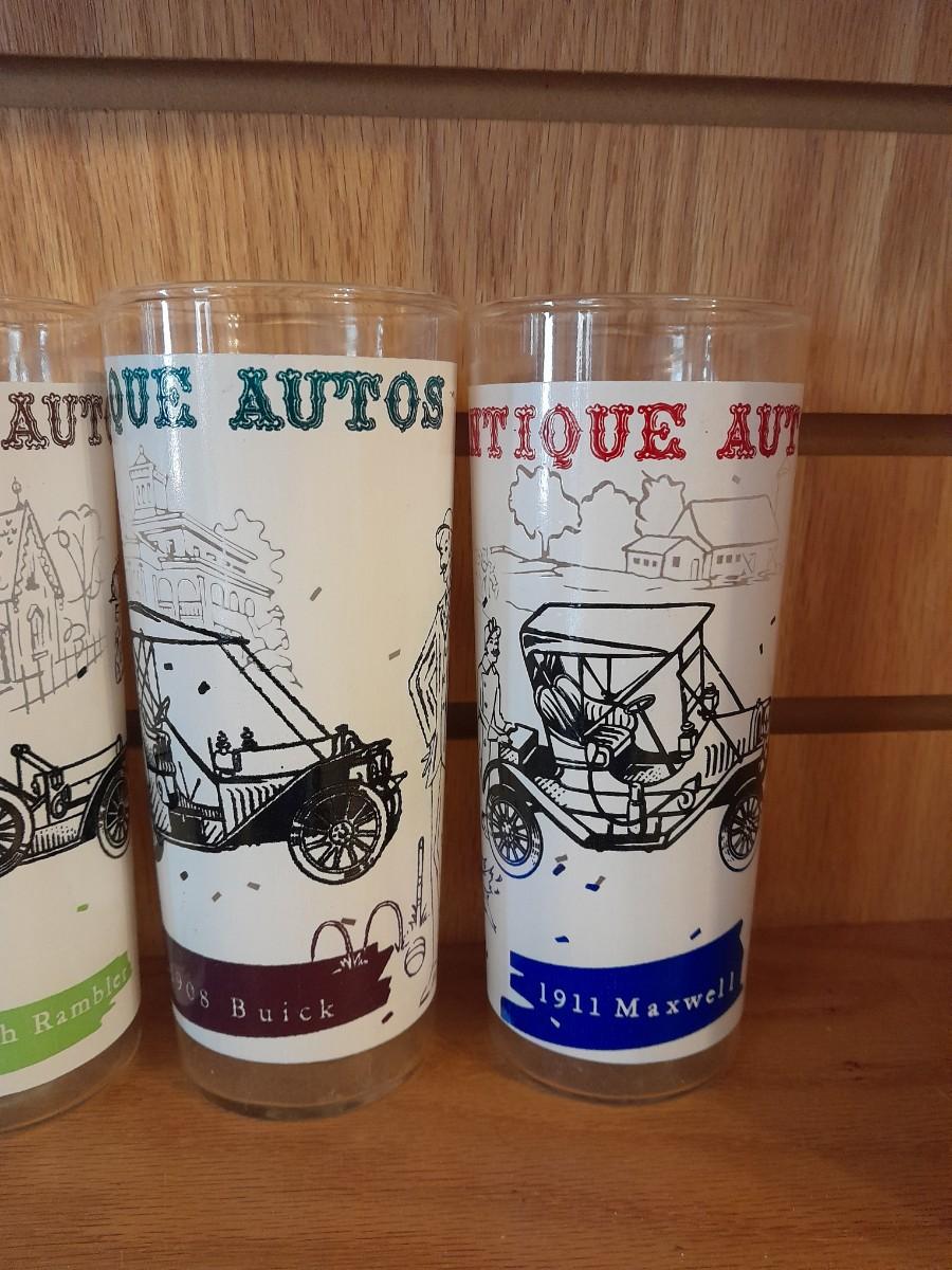 EIGHT VINTAGE ANTIQUE AUTO'S 16 oz DRINKING GLASSES