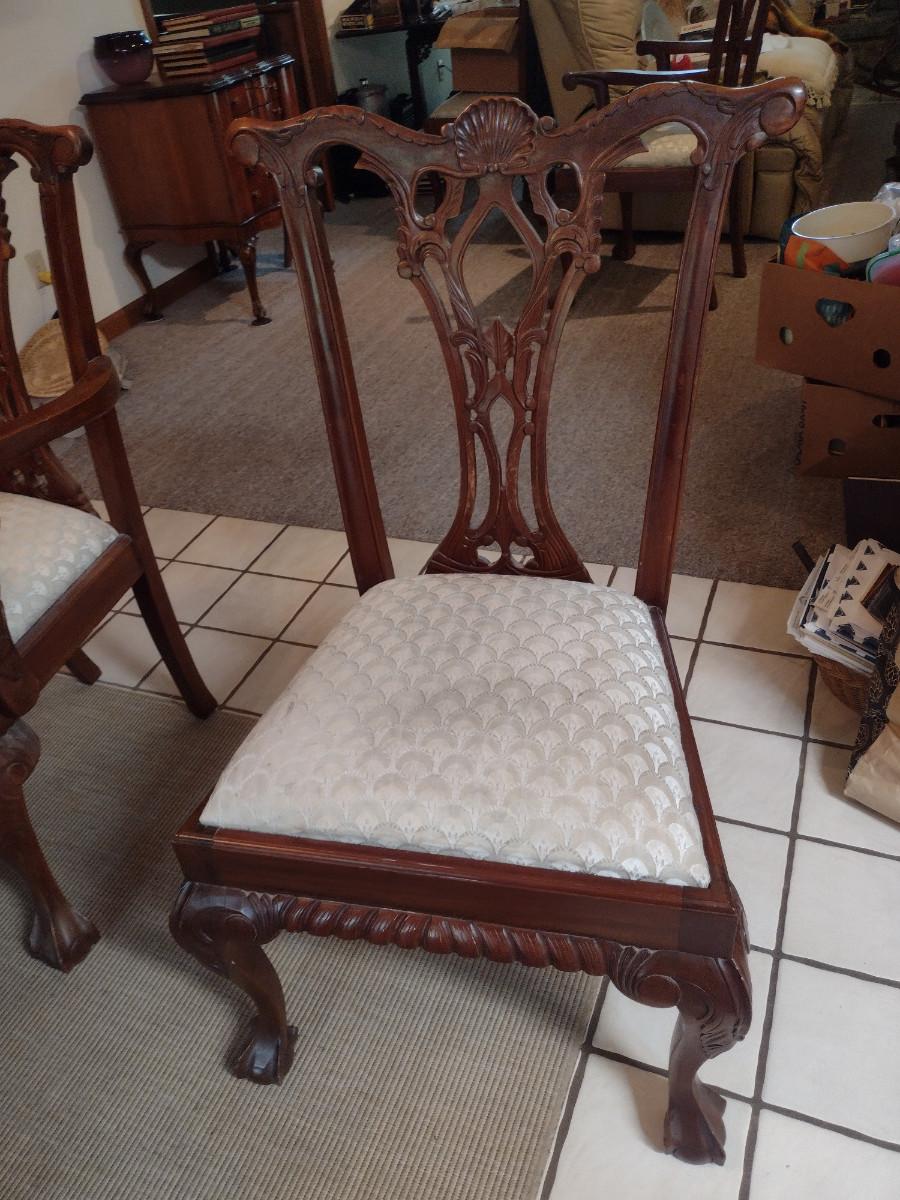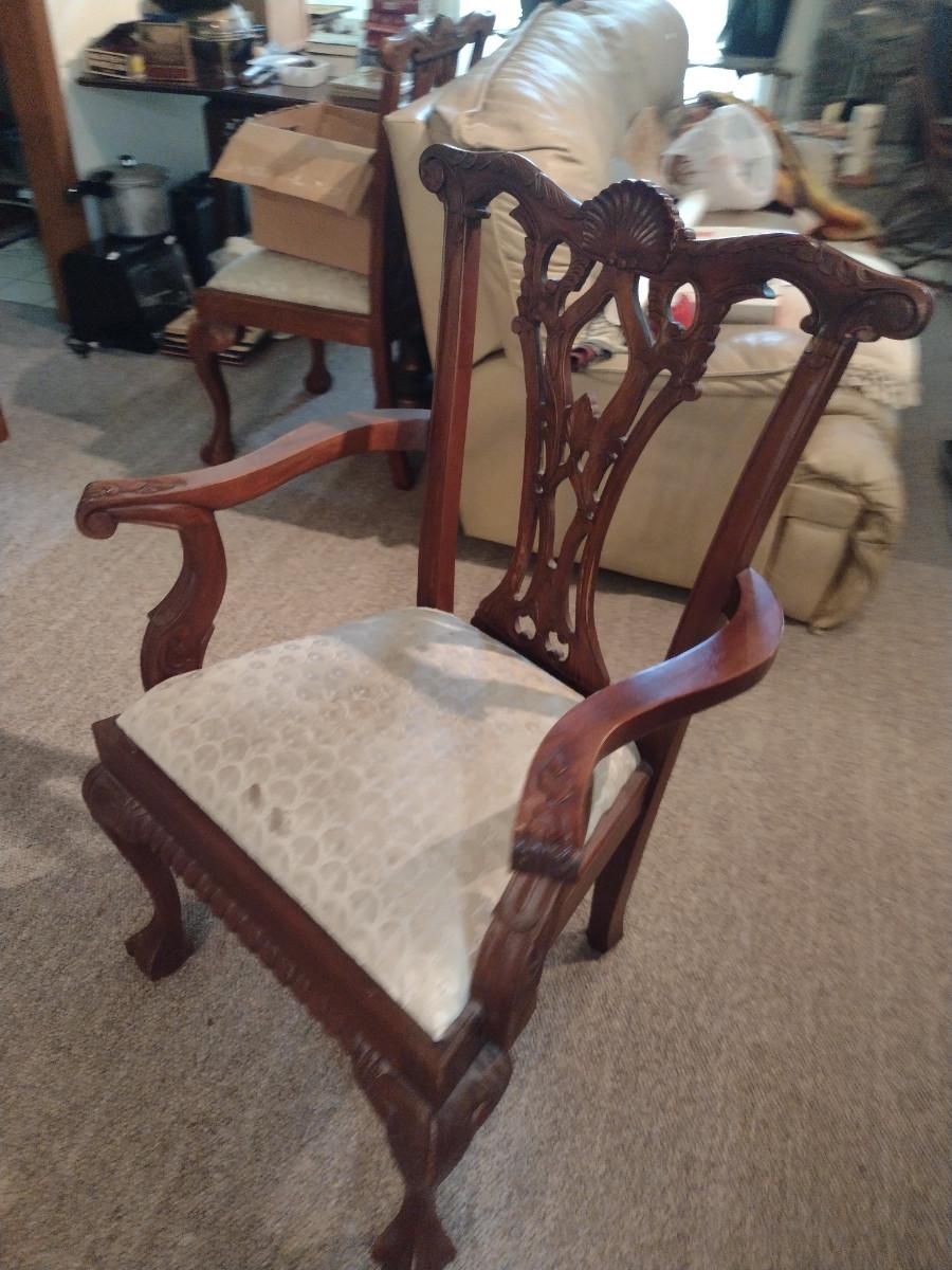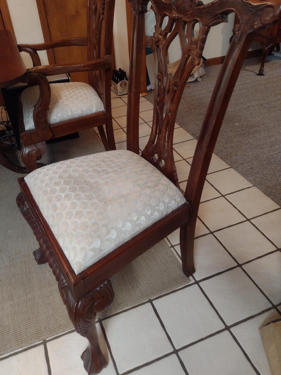 Eight Wood Frame Dining Chairs with Upholstered Seats- 6 Side Chairs, 2 with Arms