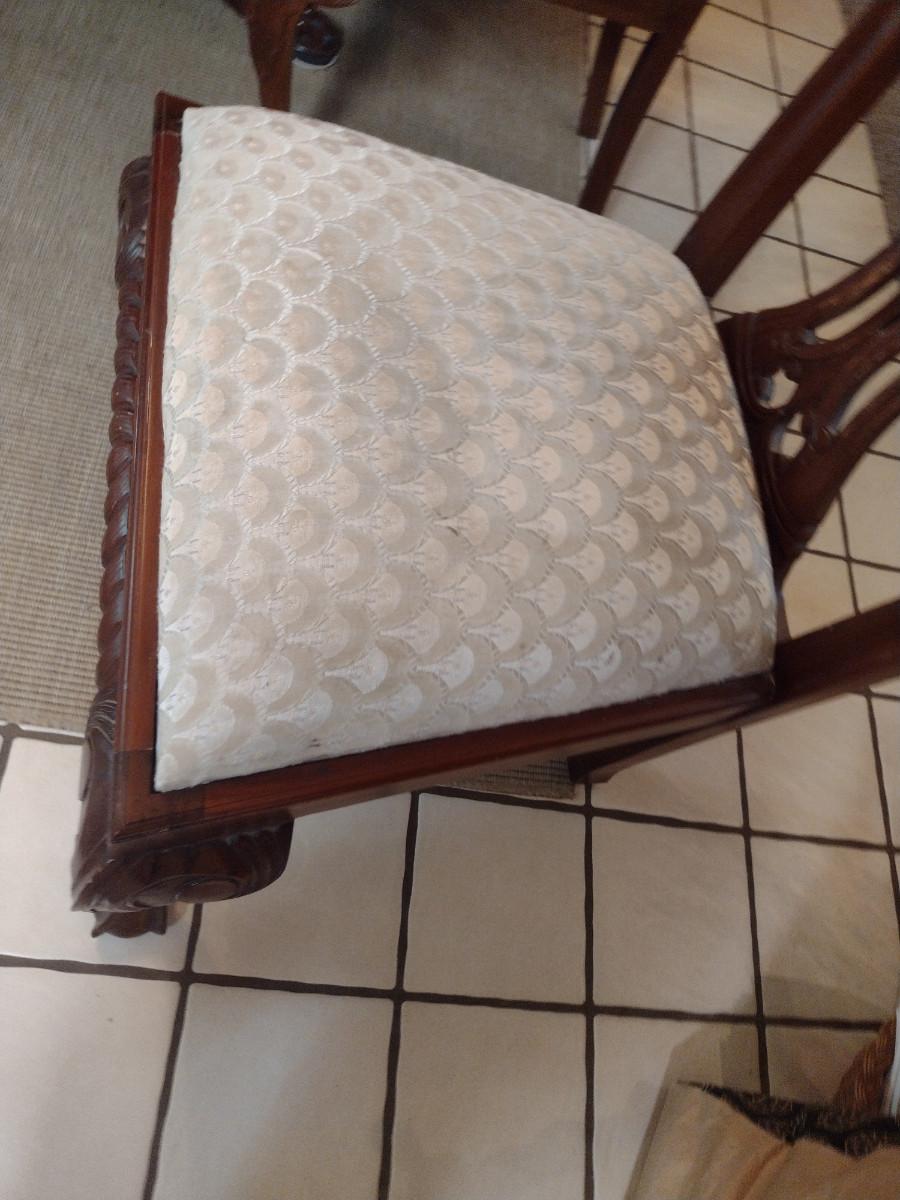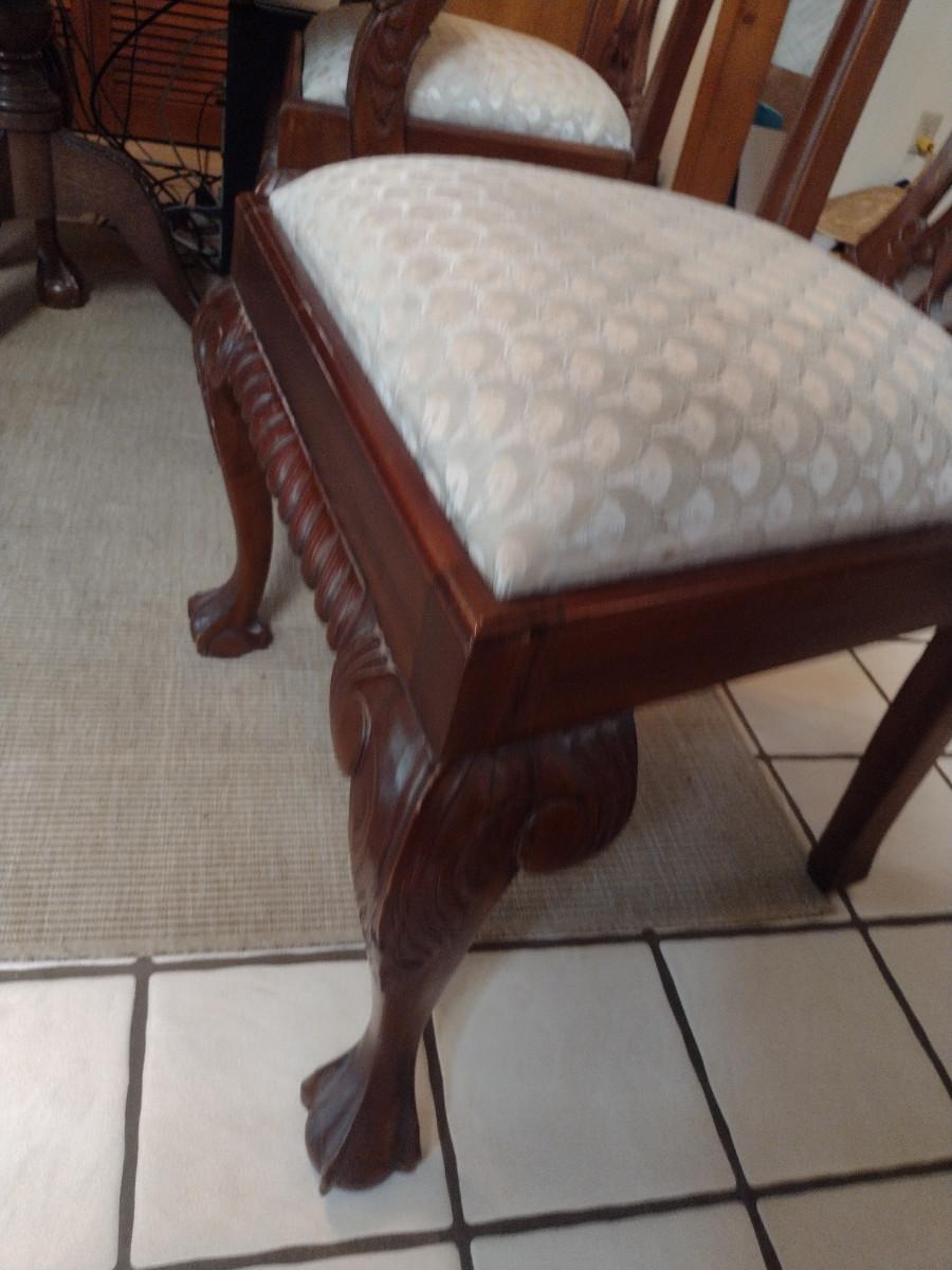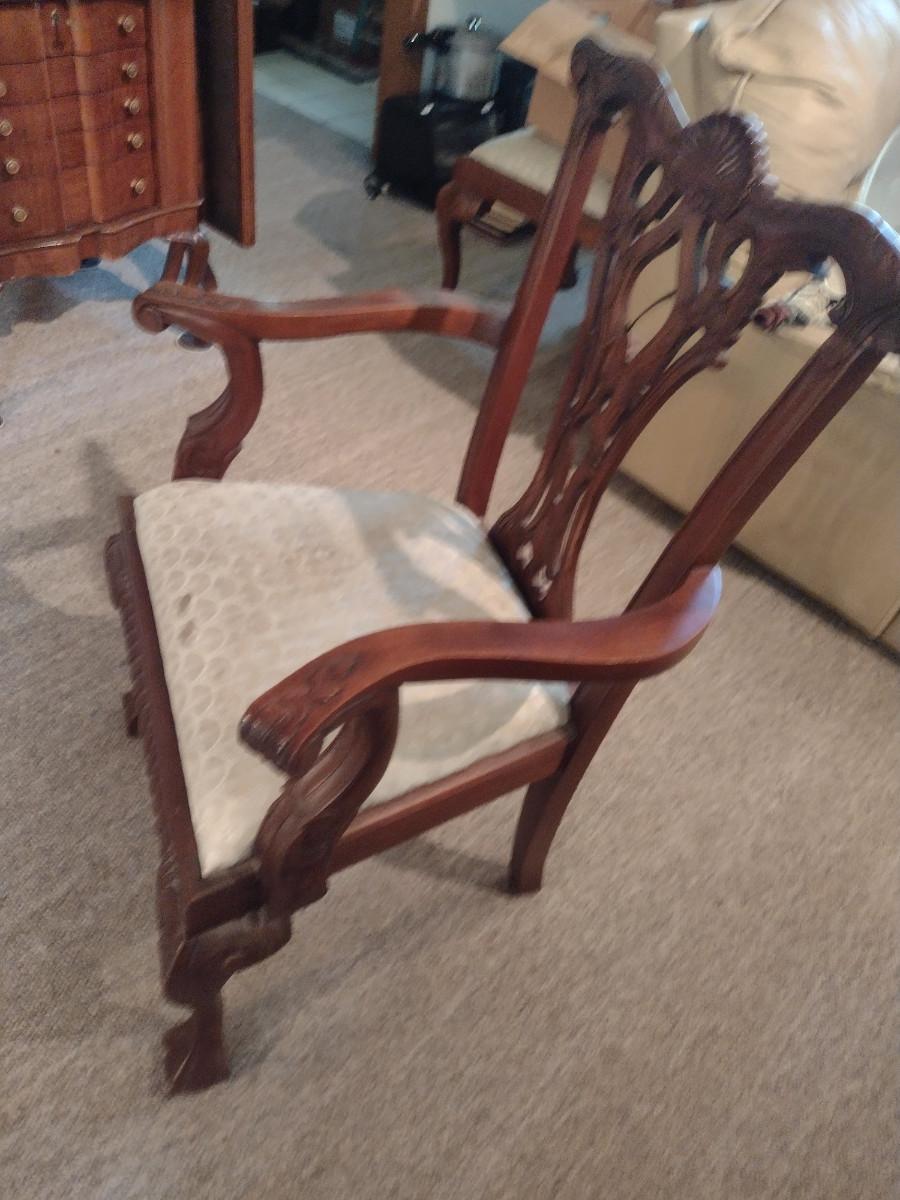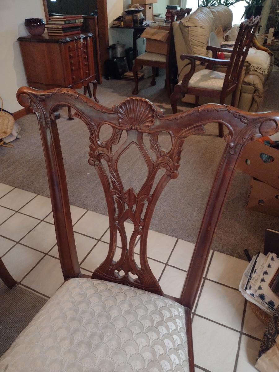 Eight Wood Frame Dining Chairs with Upholstered Seats- 6 Side Chairs, 2 with Arms