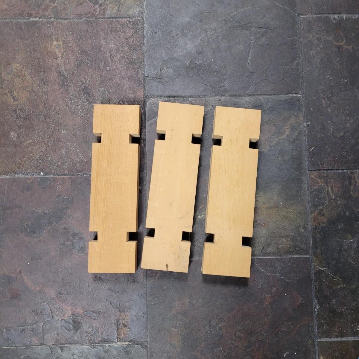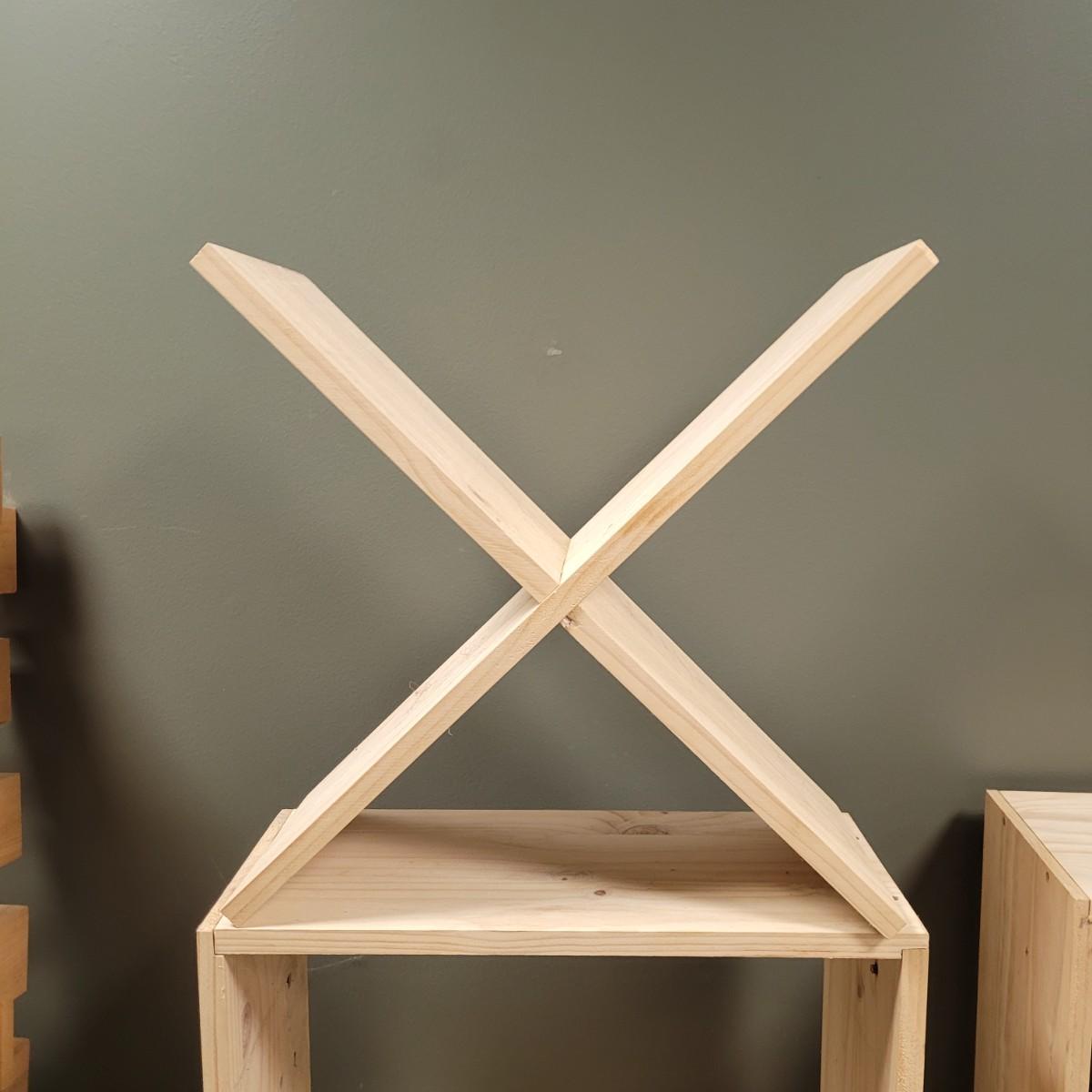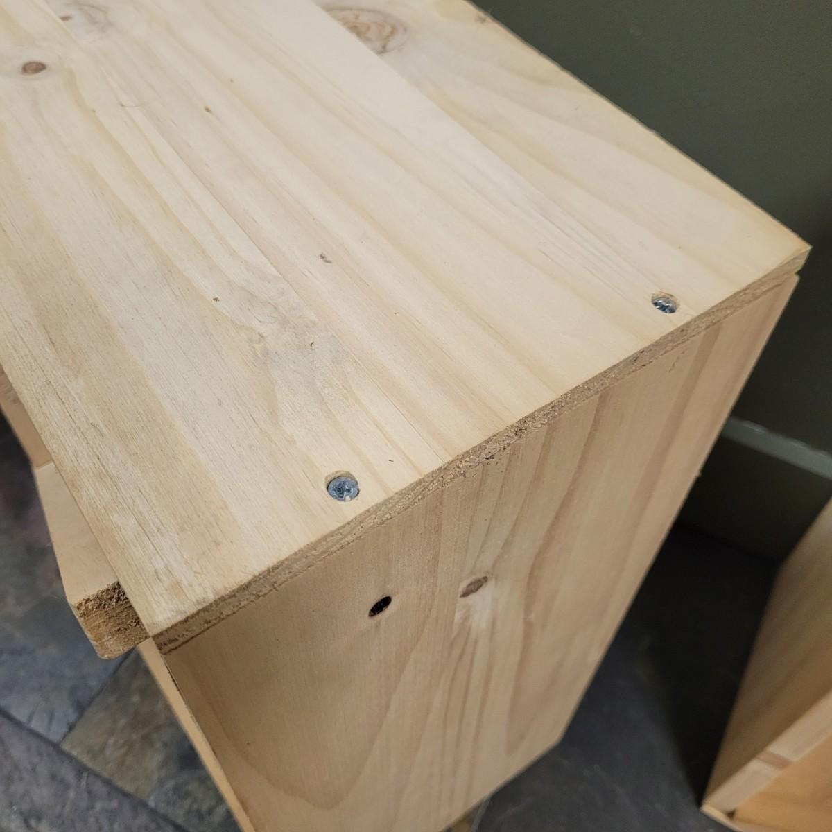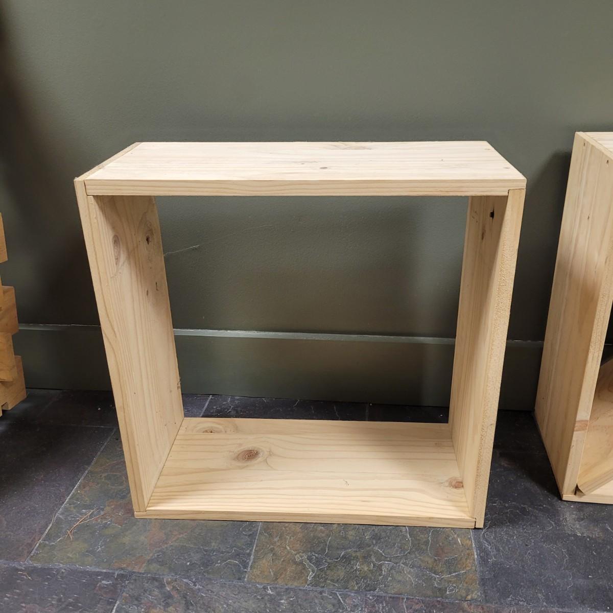 A total of seven wooden wine racks make up this lot. The three wide racks each hold 91 bottles (13 slots with 7 rows). Wide racks break down completely and use no hardware. The four squares are attached with hardware but the inserts are removable. Wood appears unfinished and untreated. Wide racks measure approximately 48" x 12" x 34"H. The squares measure 20"SQ. Local pickup only.