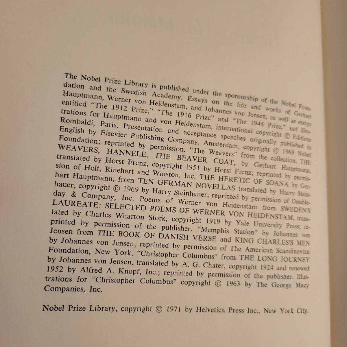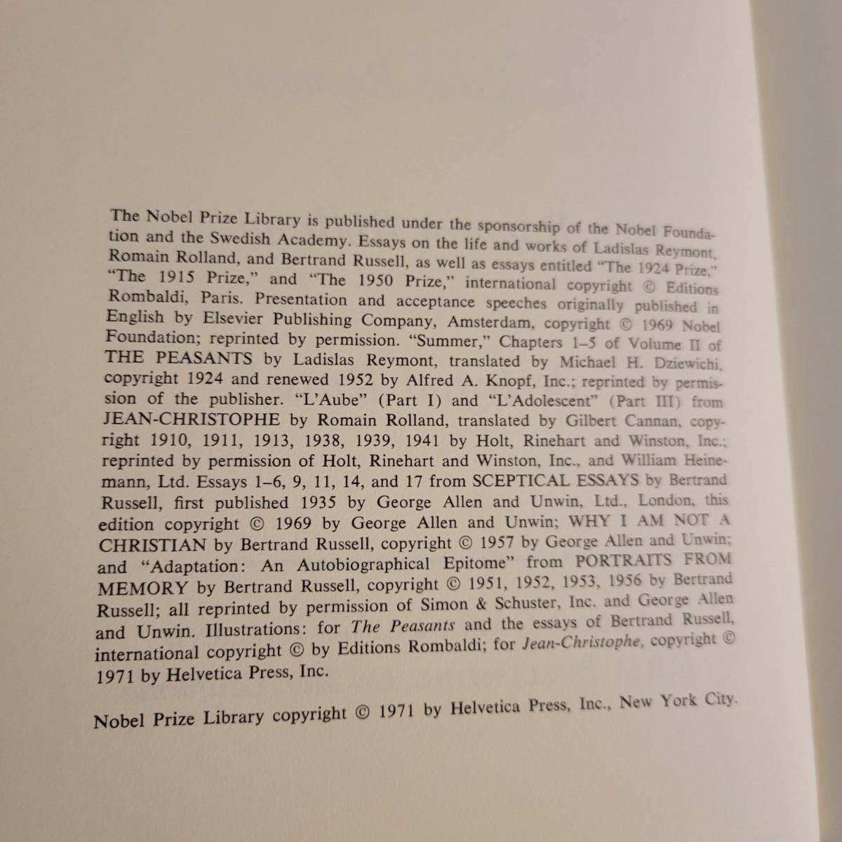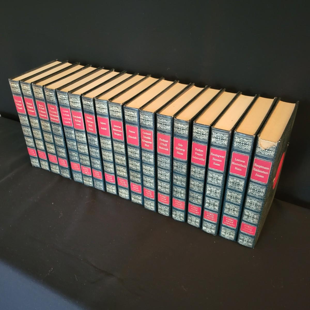 A seventeen volume set from the Nobel Prize Library consisting of works in literature that have won a Nobel prize by authors such as Hemingway, Steinbeck, Churchill and many more. These volumes are faux leather bound with decorative bindings. One volume does have some minor damage to its binding. Shipping available. Shipping can be costly. We suggest contacting our preferred local shipping provider, Postage Express, with dimensions and getting an estimate before bidding: (828) 670-5501 or postageexpress@yahoo.com.