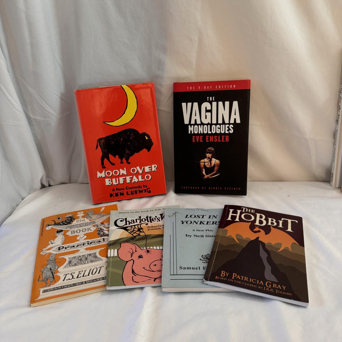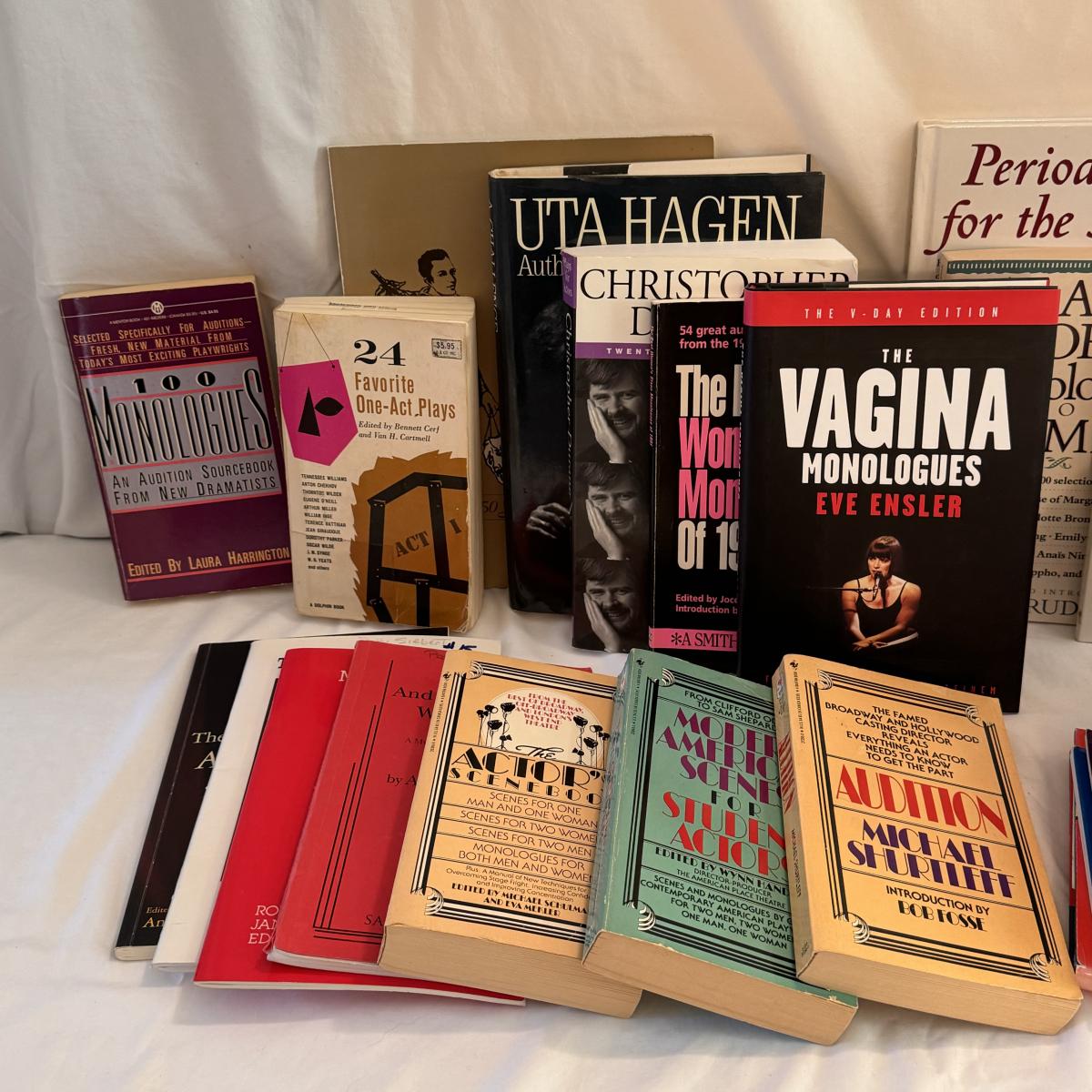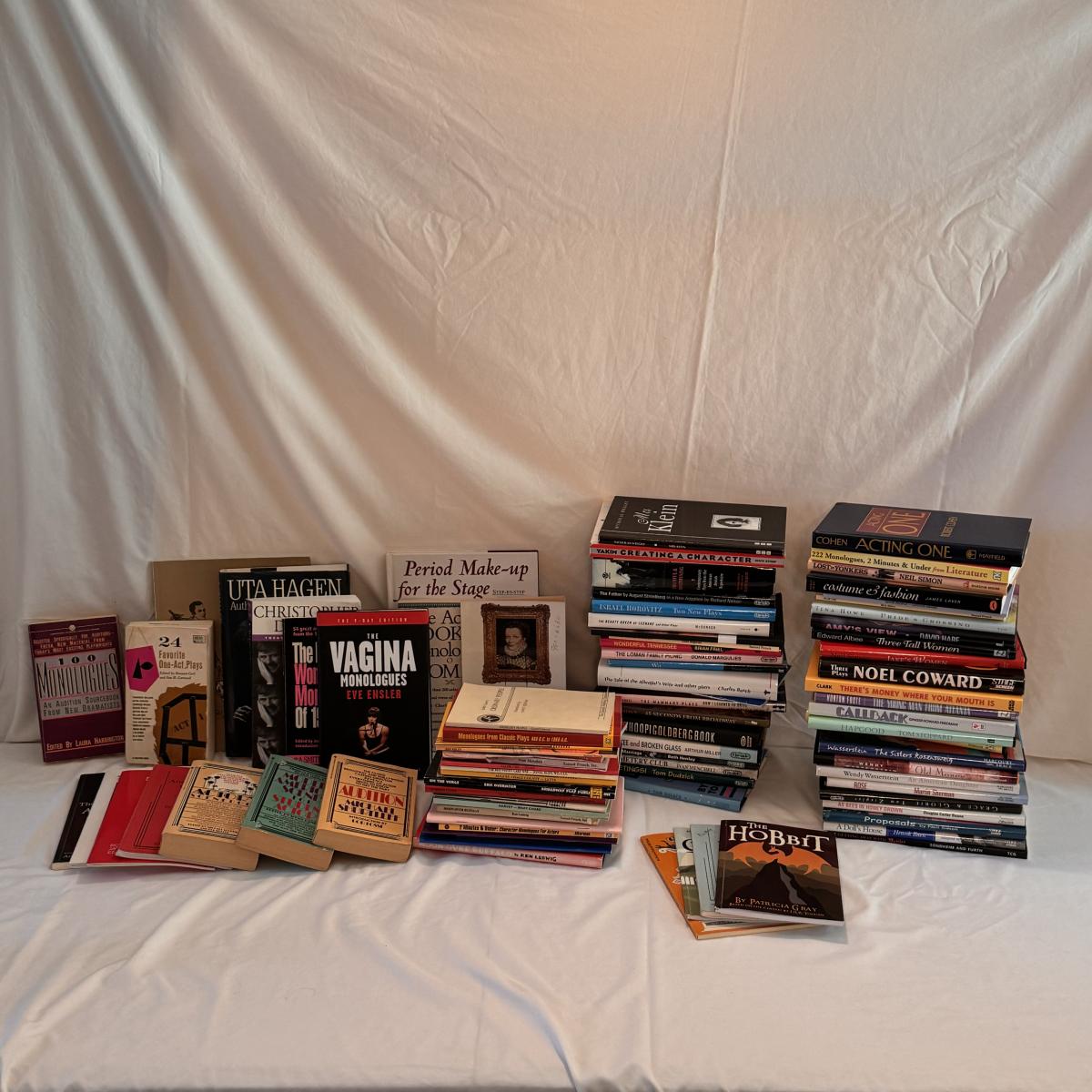 This lot includes over thirty books on acting, women, plays and drama. You’ll find The Vagina Monologues by Eve Ensler, A Doll’s House, The Hobbit, several plays condensed into books, and more. See pictures for other book titles. Shipping available.