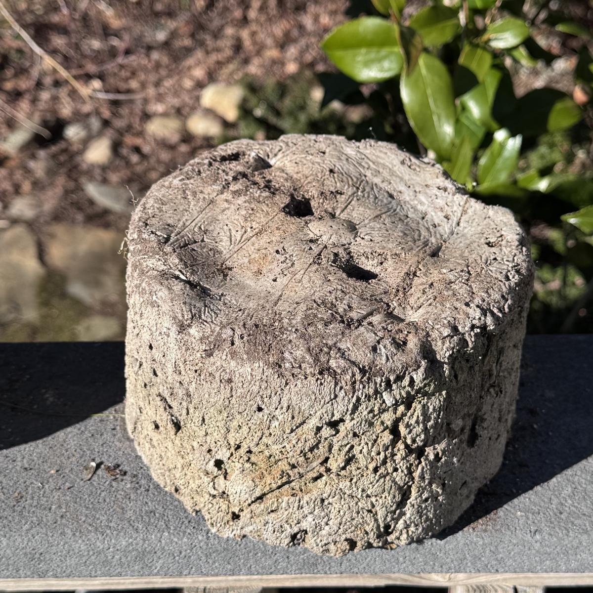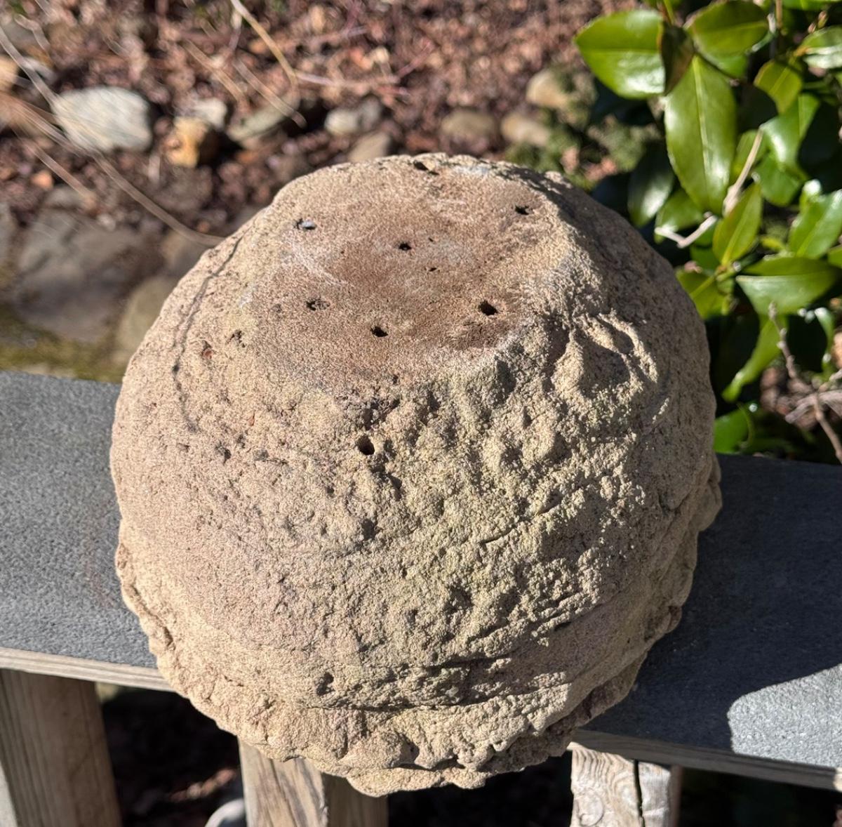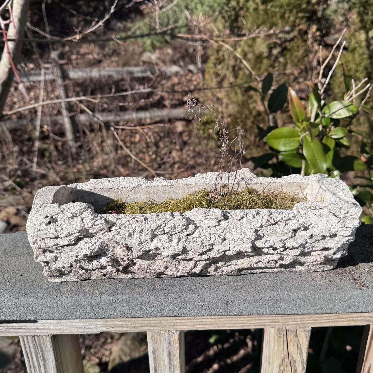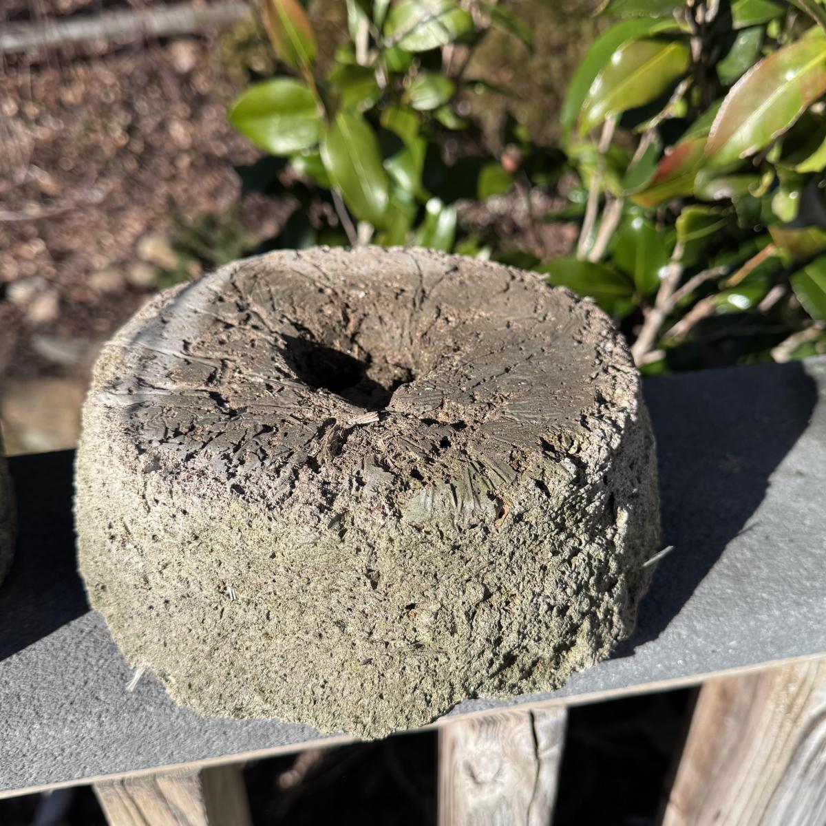 This lot includes ten variously shaped and sized cement planters. Every single planter has a drainage hole. A few of the planters have dirt or moss in them - buyer can dump if desired. The largest pot is the last one pictured that measures 8.5”D x 6”H. Local pickup only.
