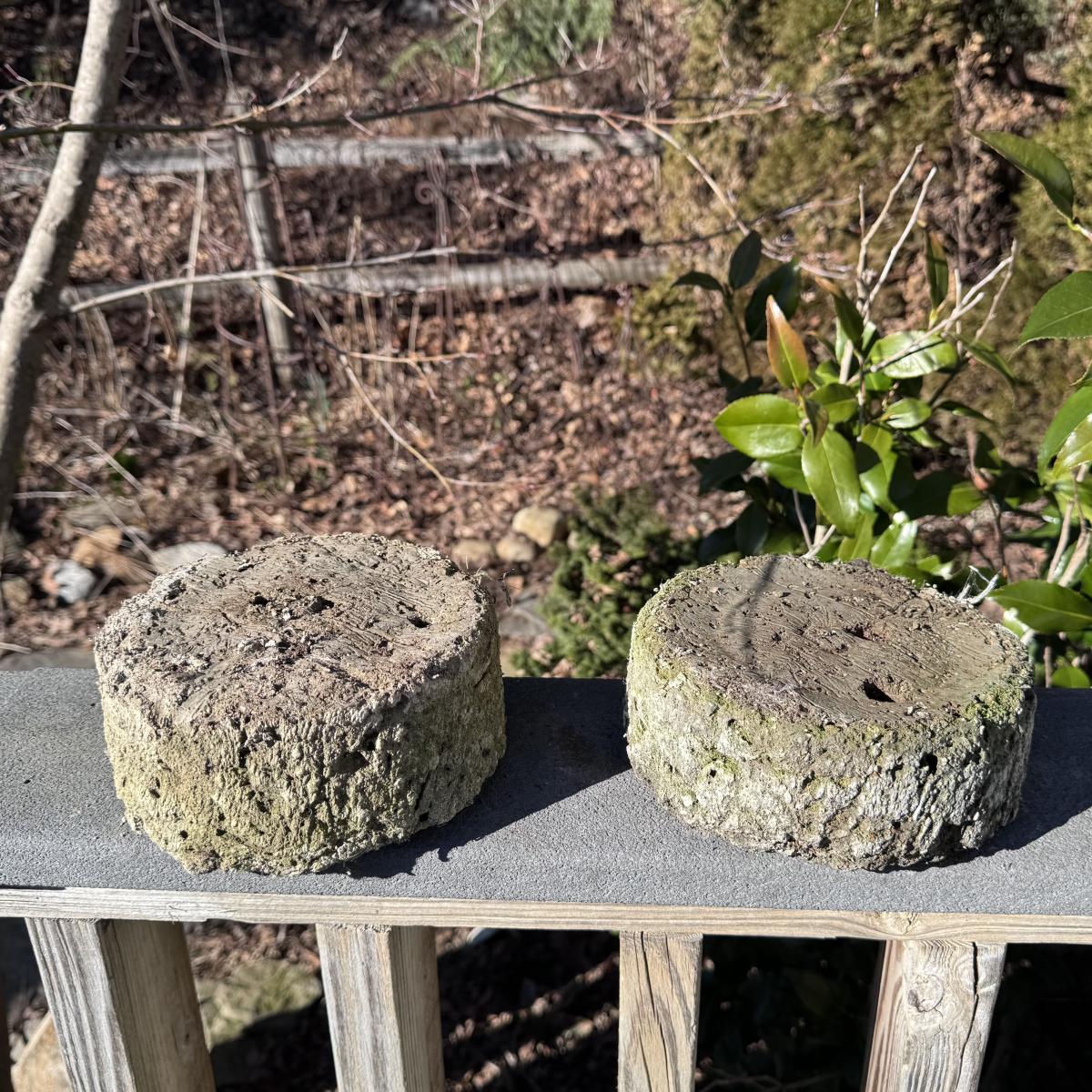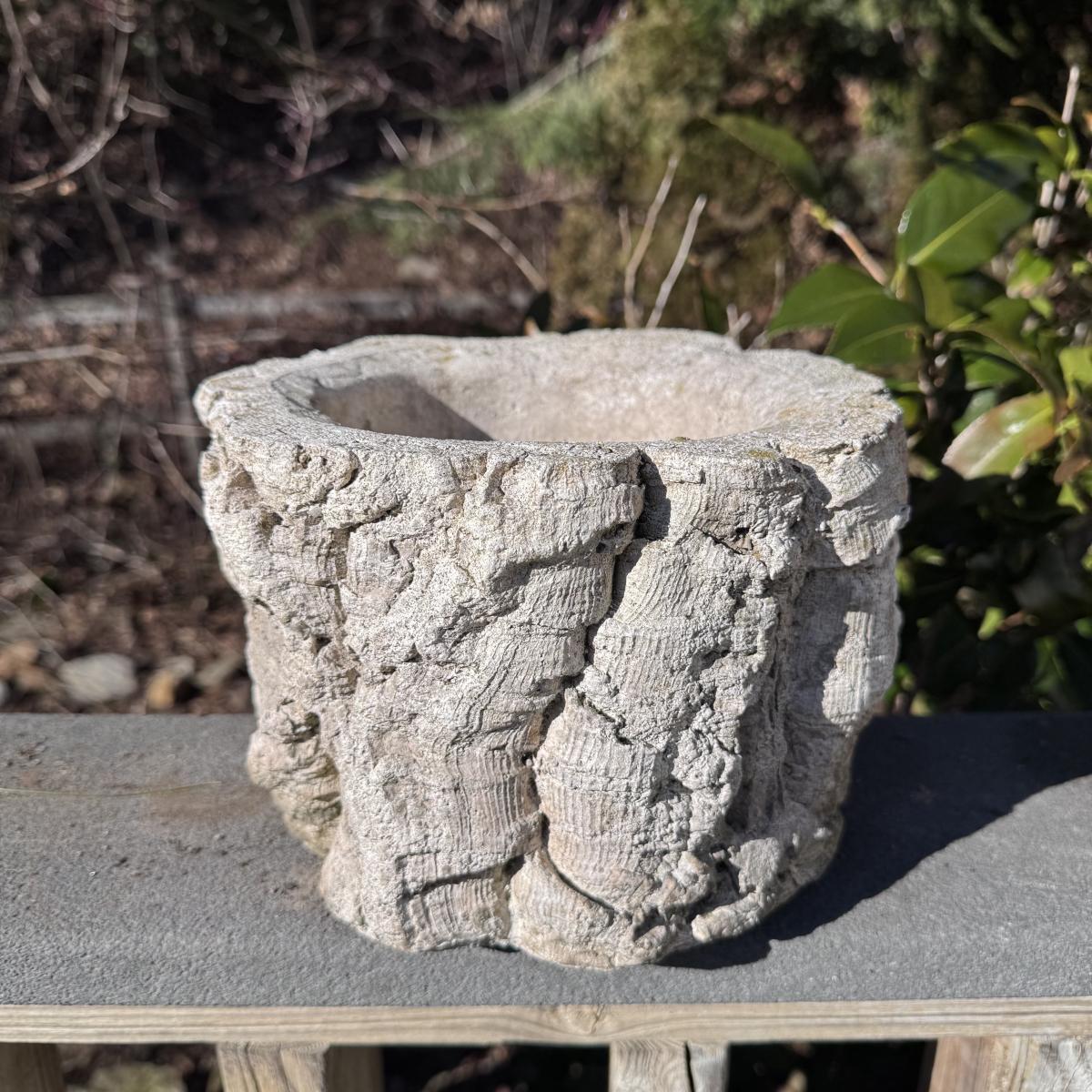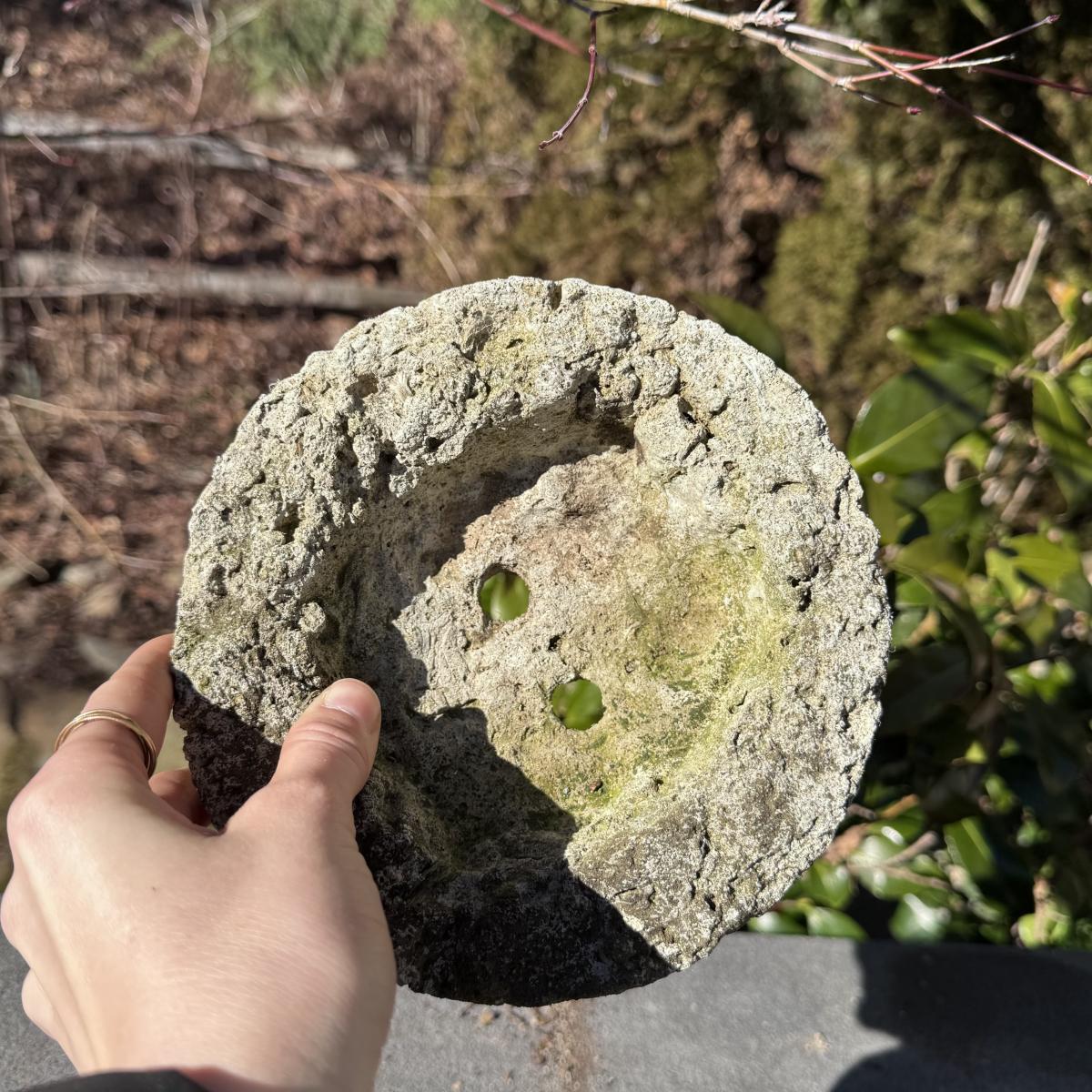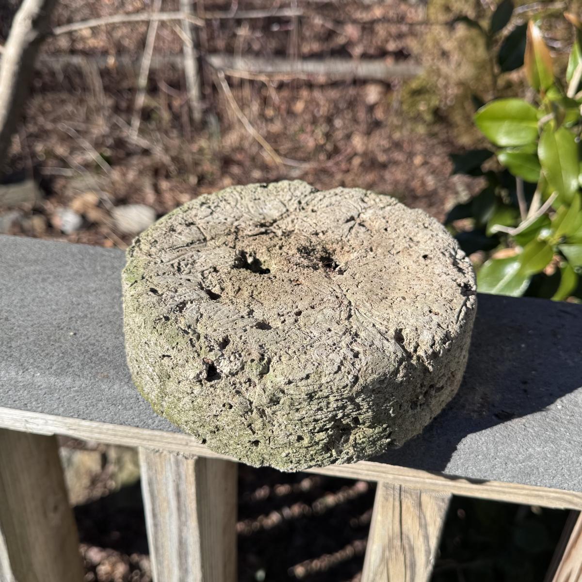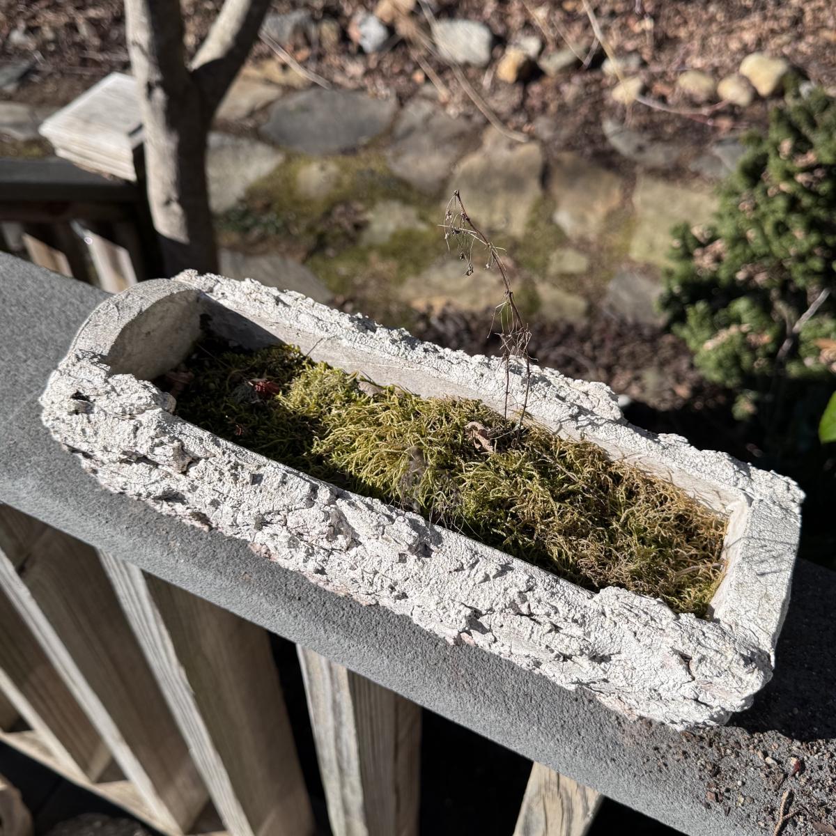 This lot includes ten variously shaped and sized cement planters. Every single planter has a drainage hole. A few of the planters have dirt or moss in them - buyer can dump if desired. The largest pot is the last one pictured that measures 8.5”D x 6”H. Local pickup only.