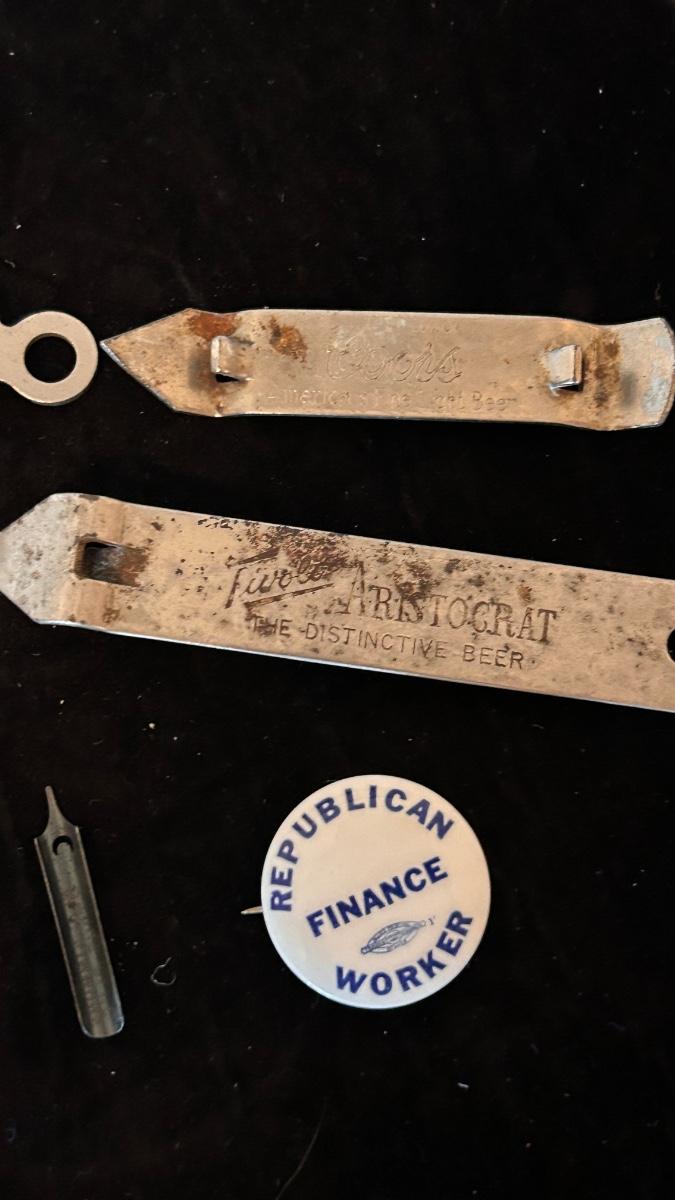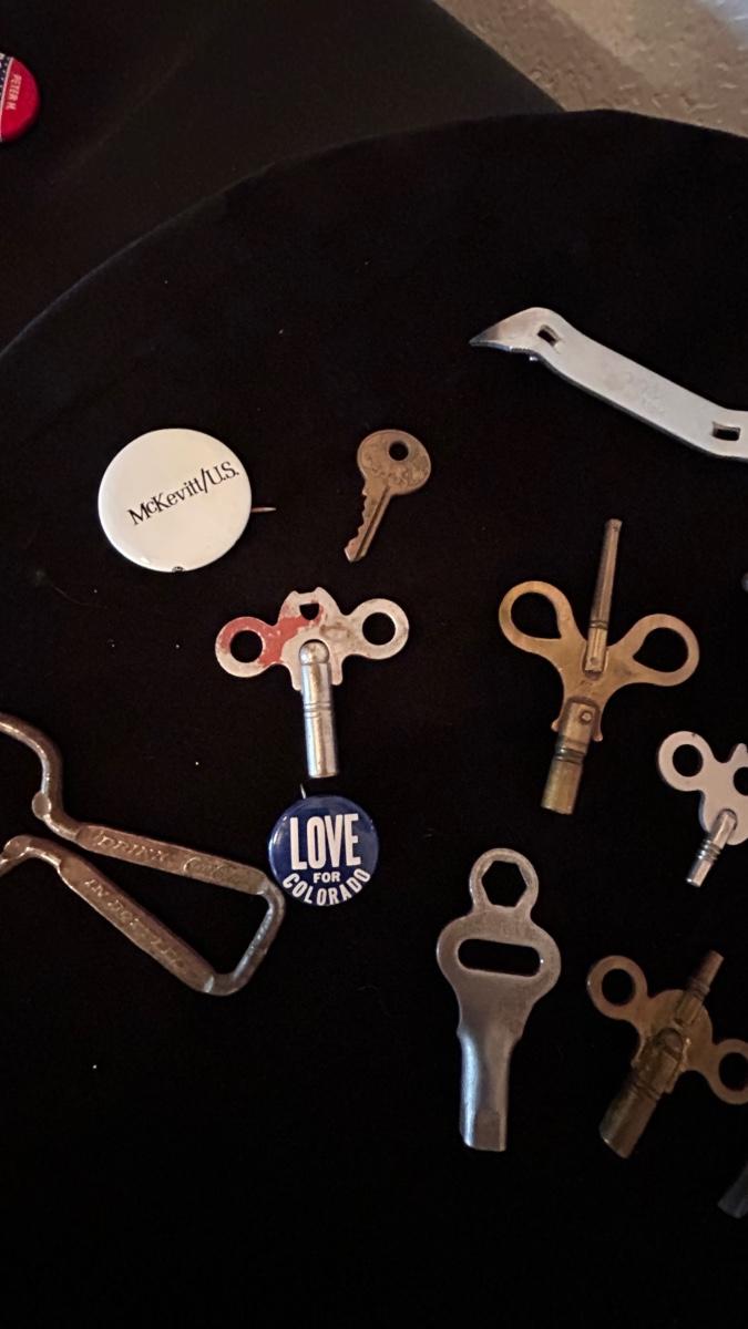 SEVERAL CLOCK KEYS, BOTTLE OPENERS AND A COUPLE SKELETON KEYS
