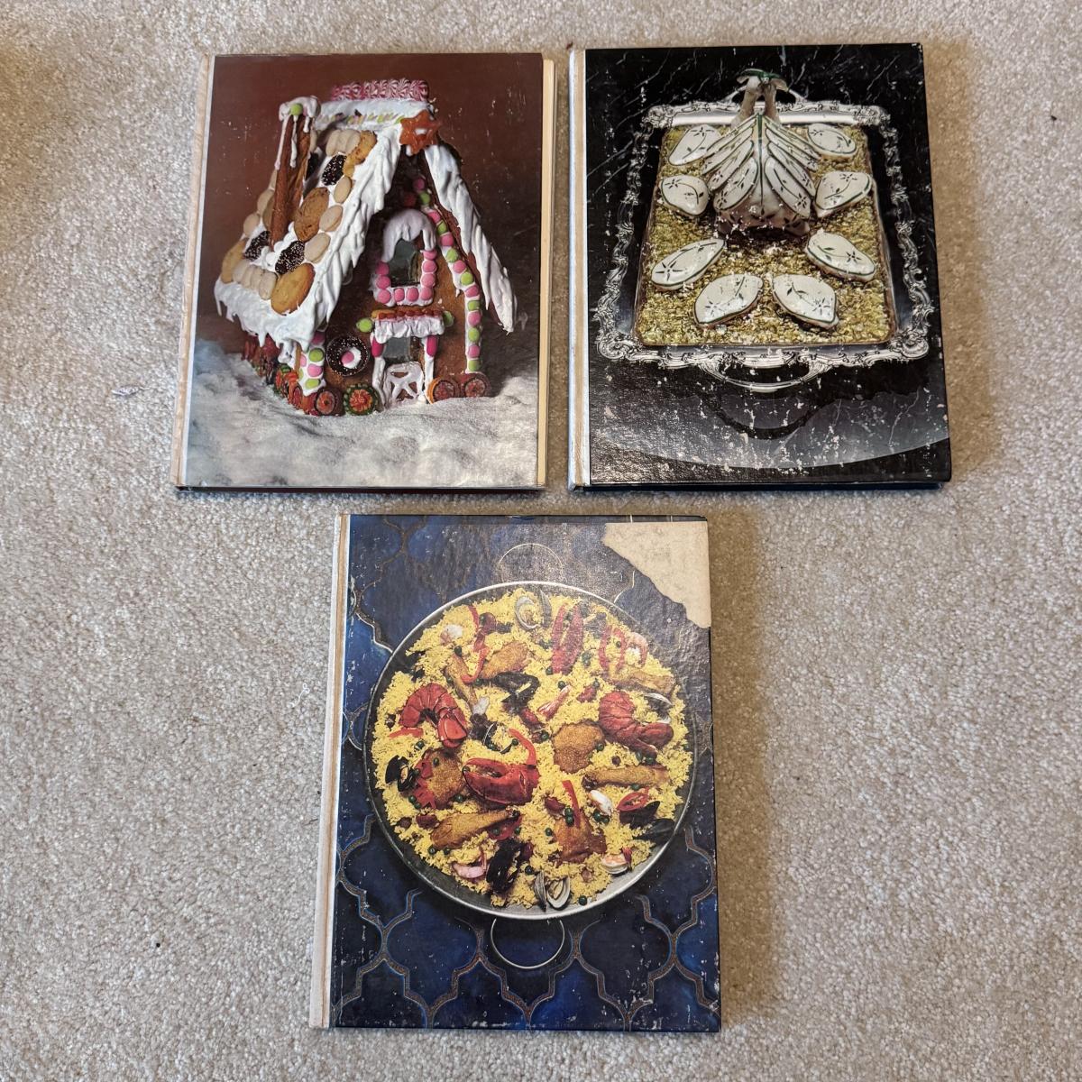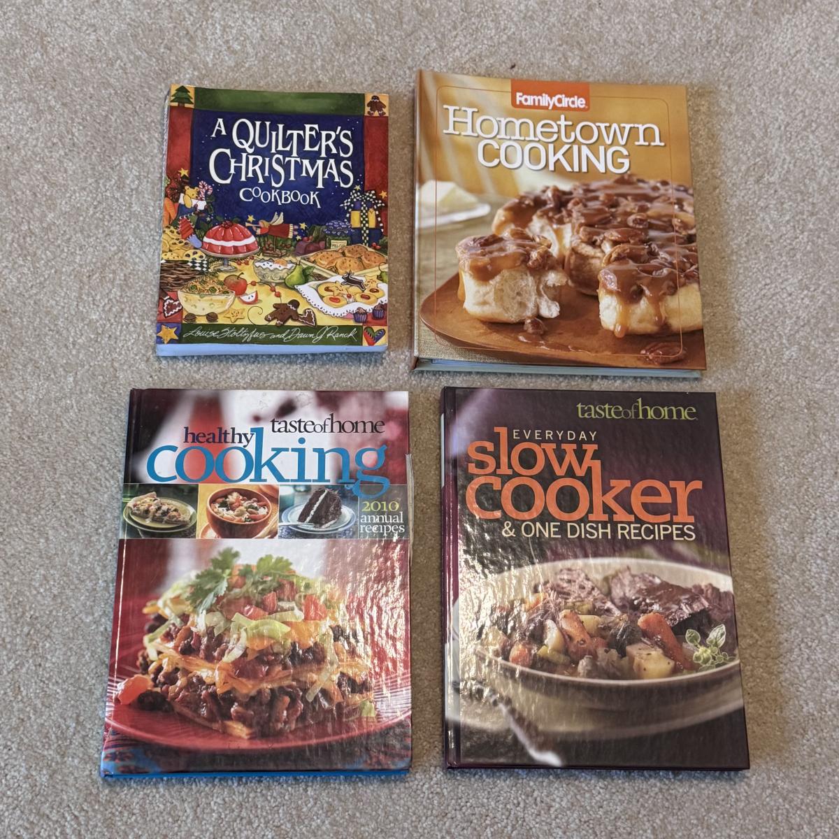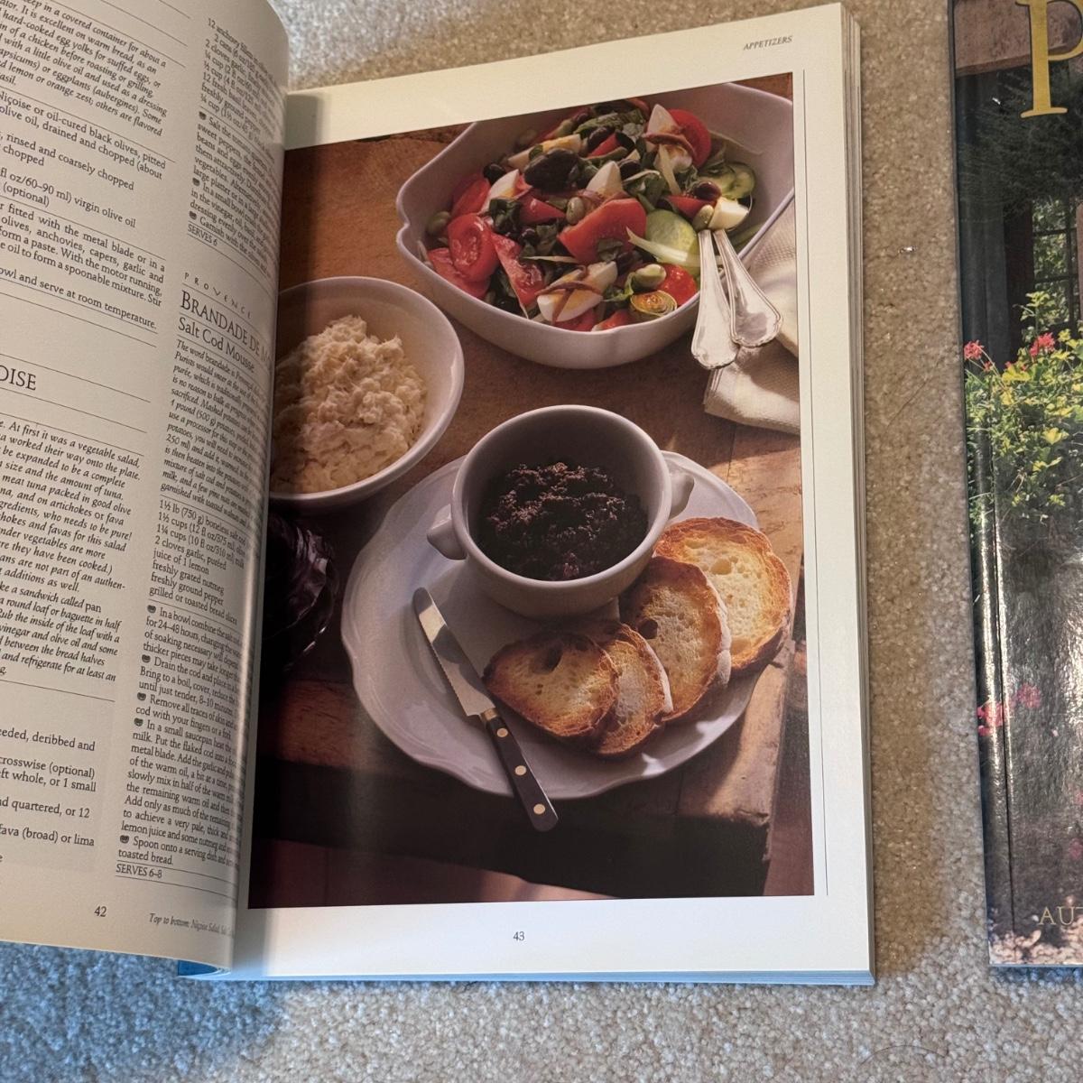 This lot includes sixteen cookbooks from all over the world, over ten magazines on cooking, over fifteen tea towels, and three aprons. See photos for details. The aprons are a one size fits most. Shipping available.