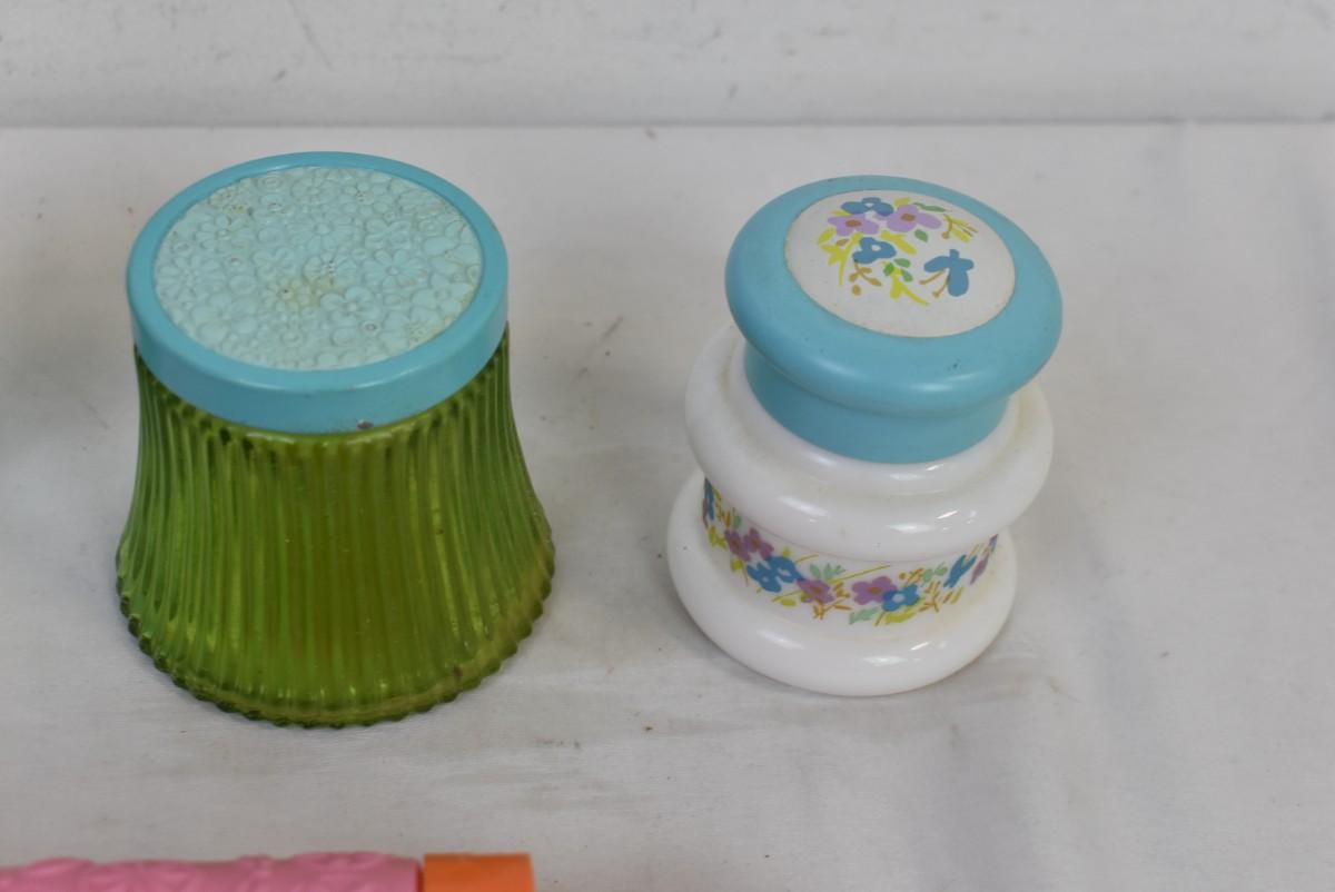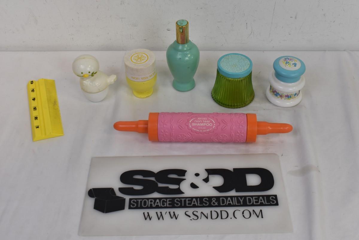 Several Lotion/Cream Containers, Comb, Rolling Pin, Avon