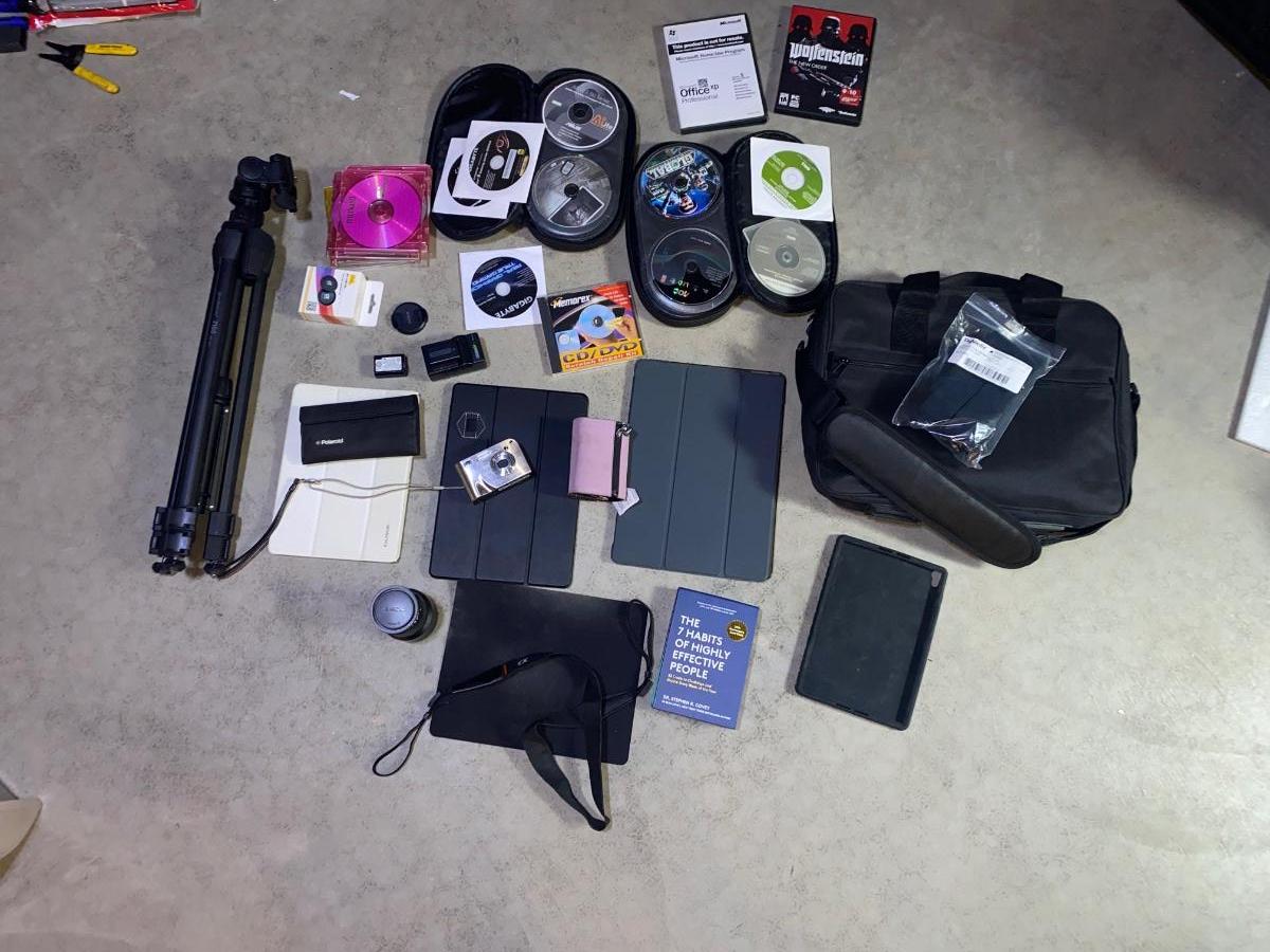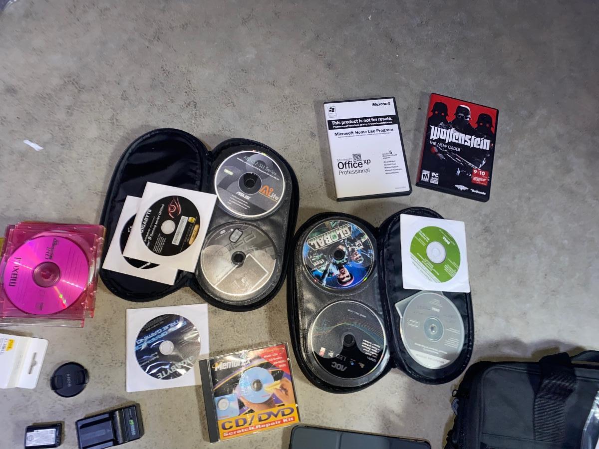 SEVERAL PC GAMES, START-UP DISCS, A PANASONIC CAMERA, TRIPOD AND MORE