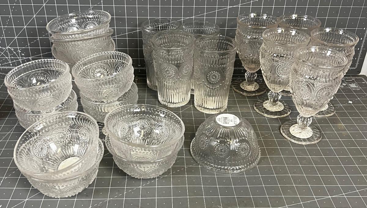 SEVERAL piece of Pioneer Woman Glassware: Goblets, Bowls, Tumblers, Desserts