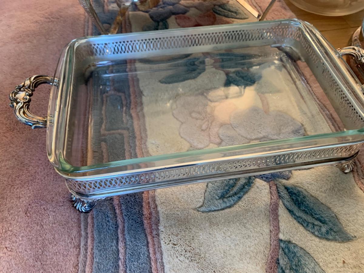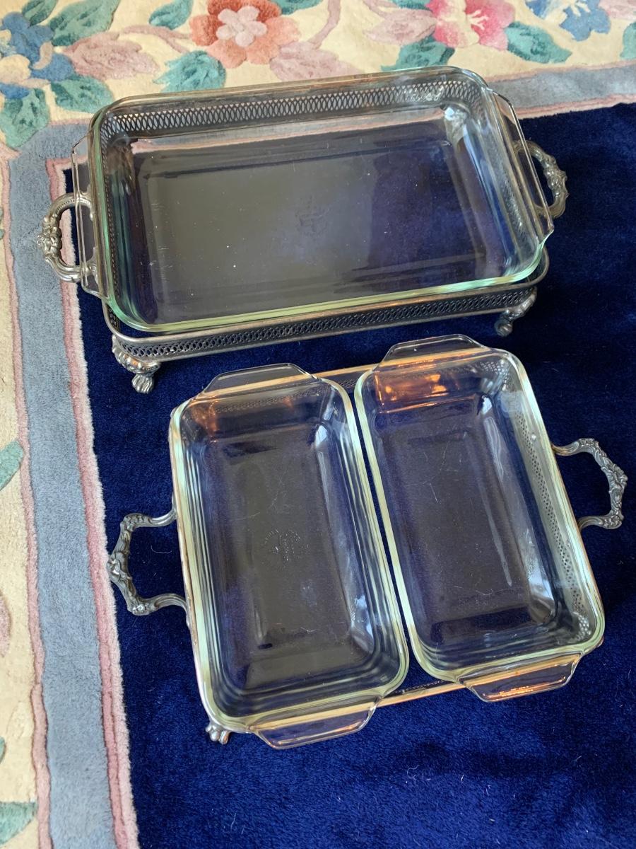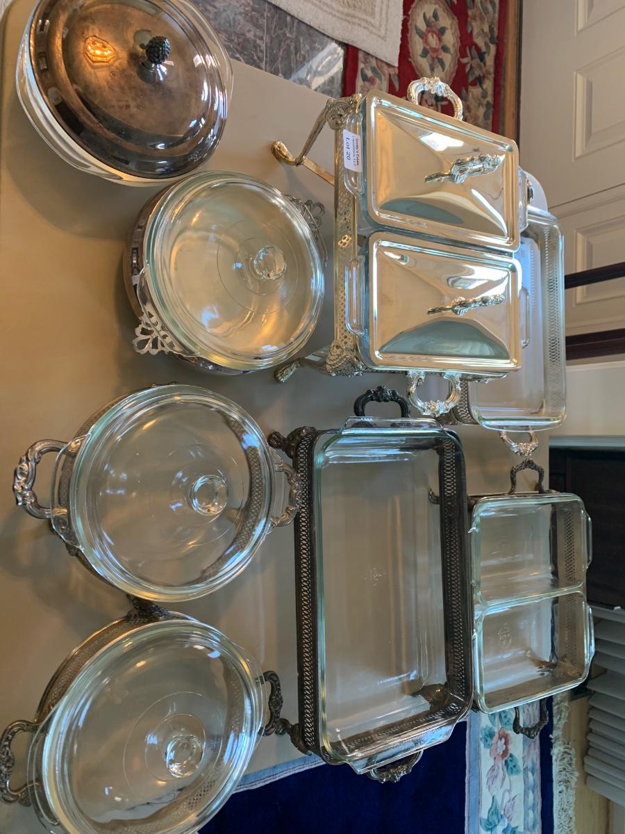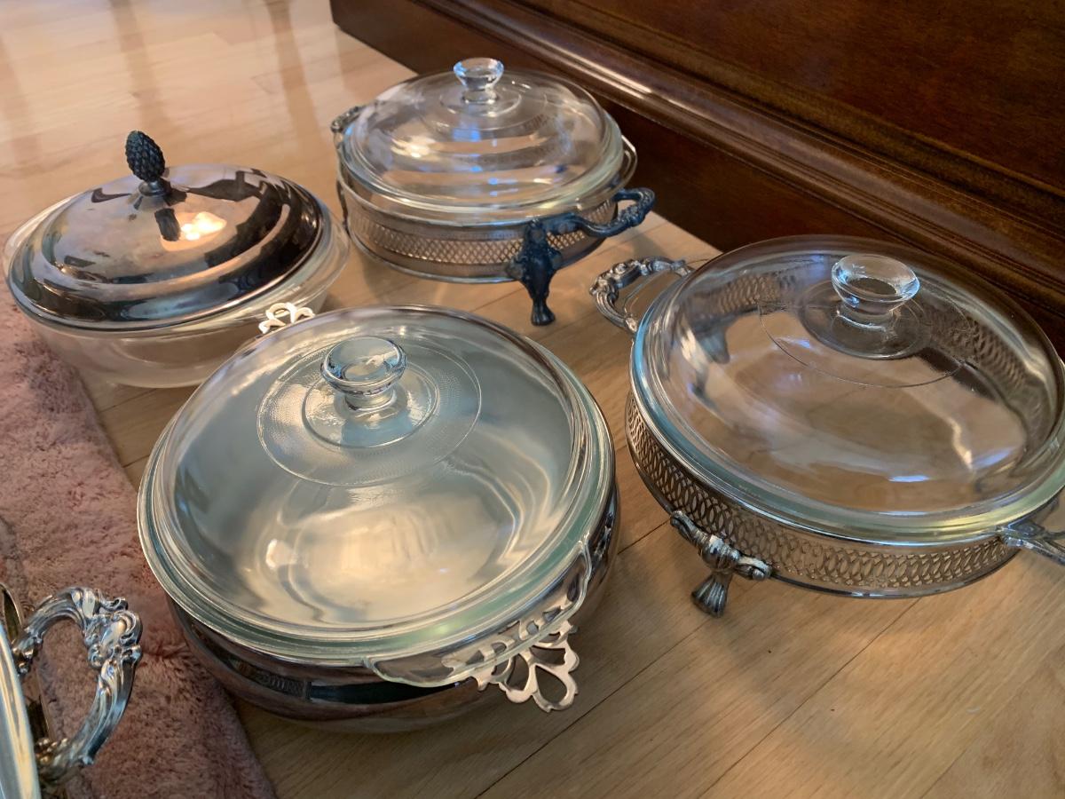 Several Pieces Silver Plate Pyrex Cooking / Serving Pieces