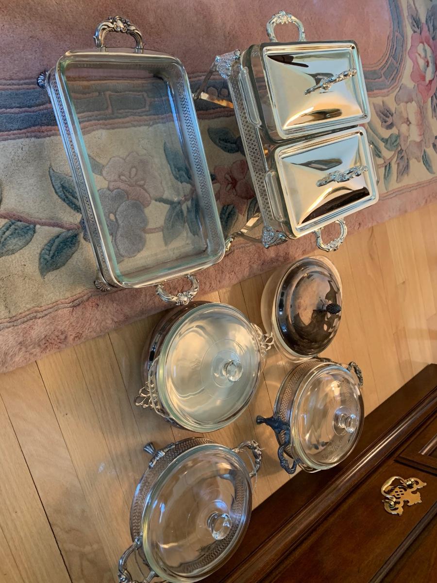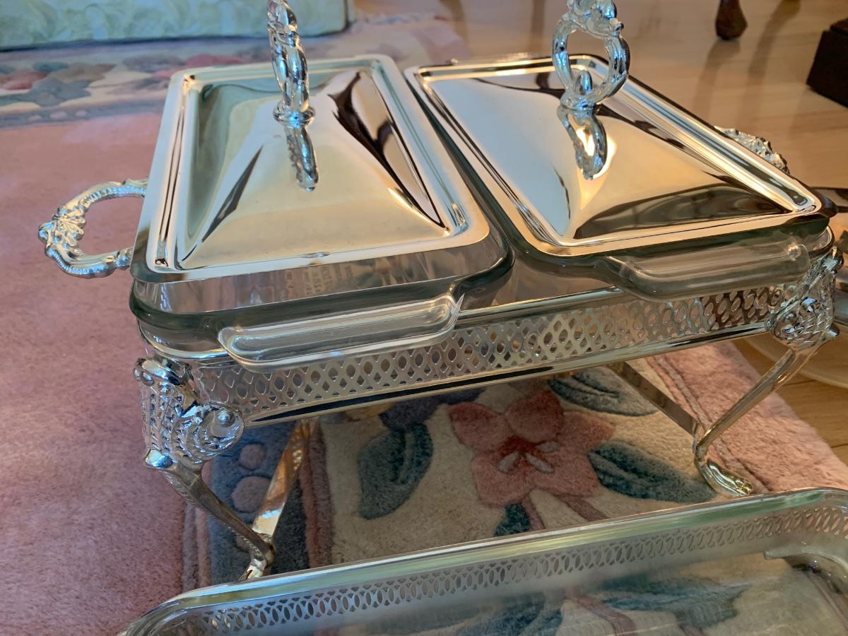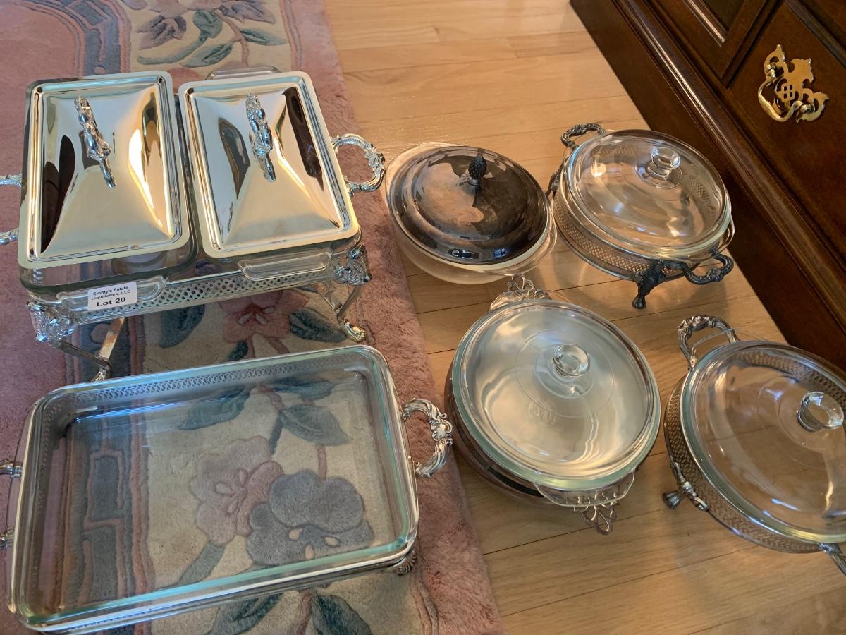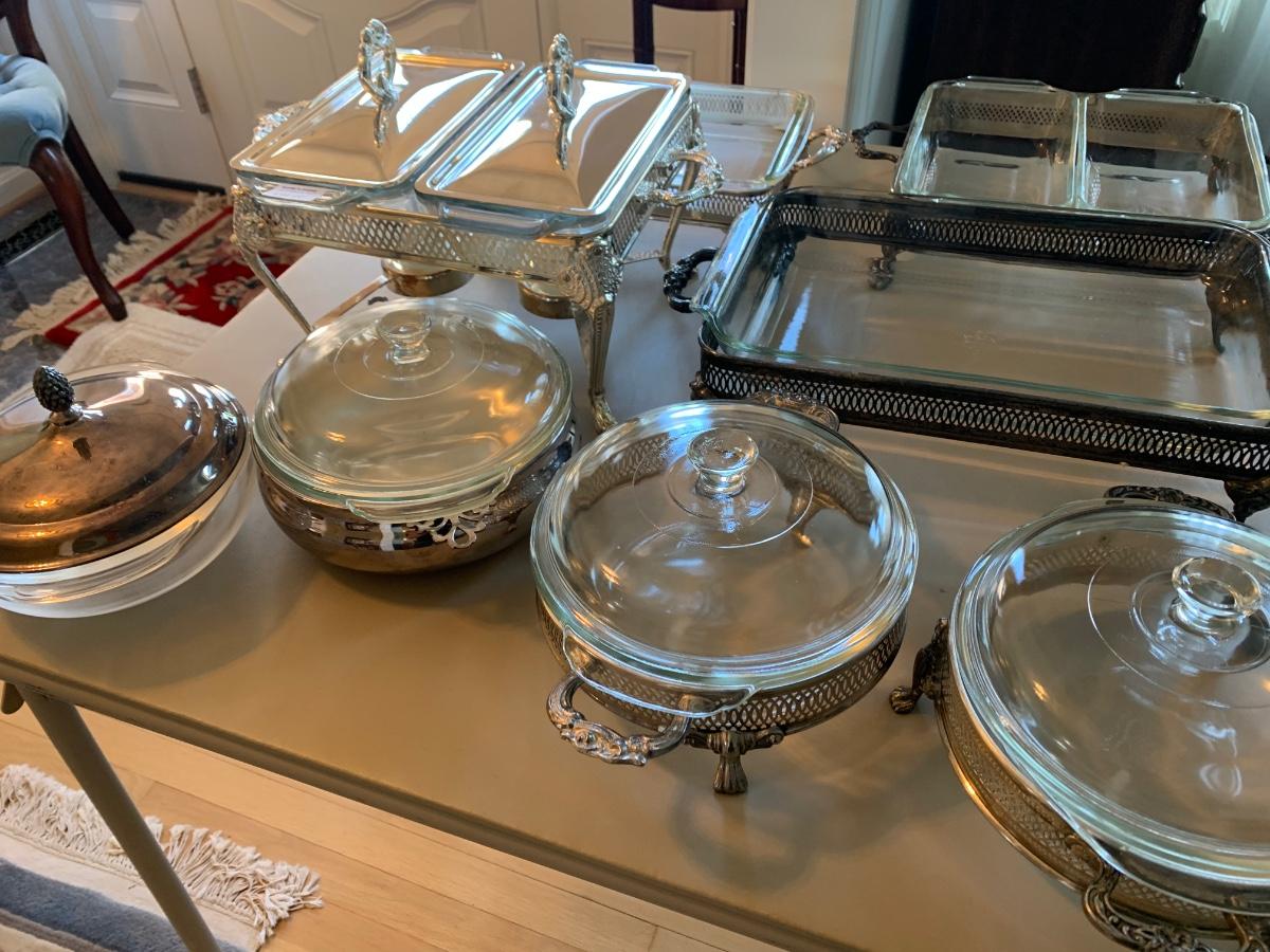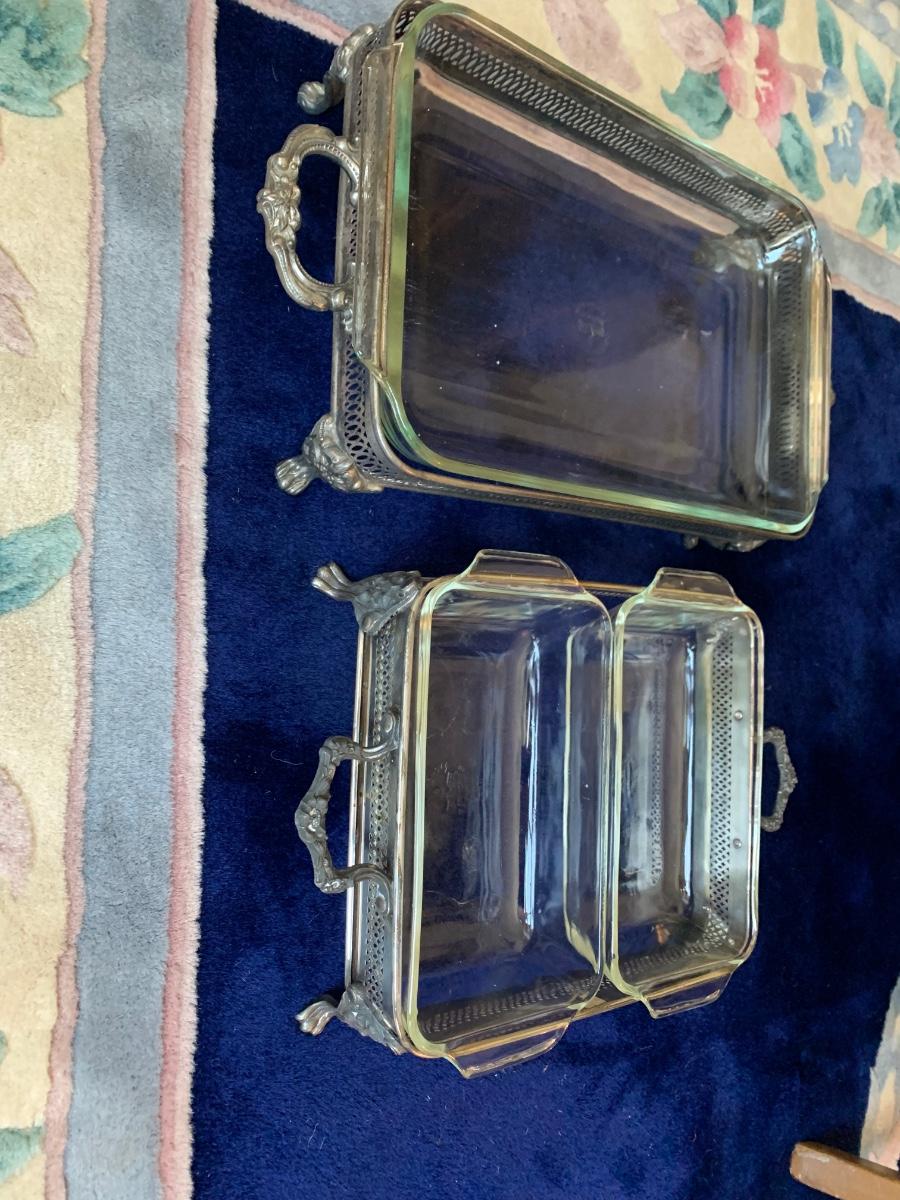 Several Pieces Silver Plate Pyrex Cooking / Serving Pieces