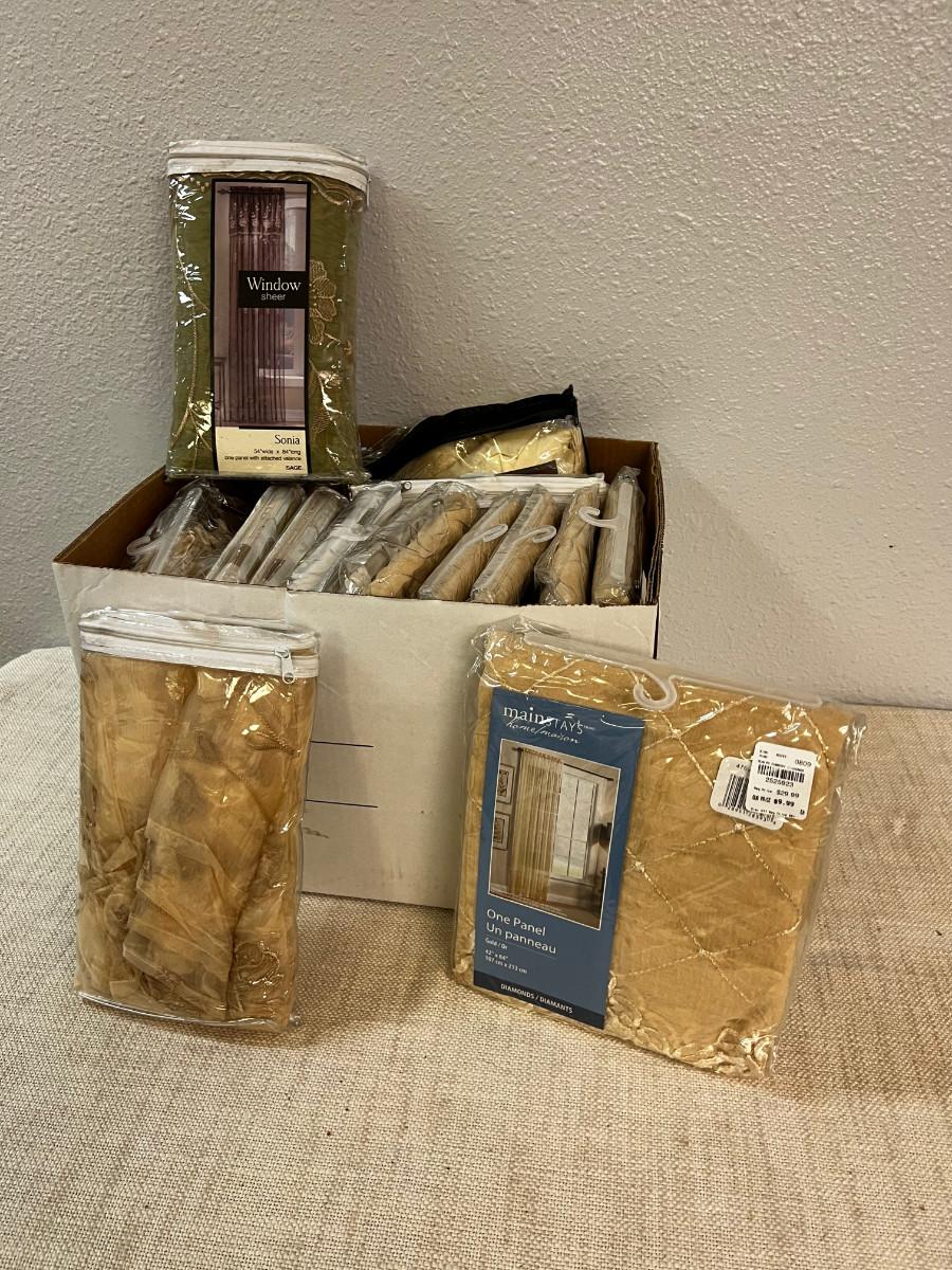 Several Variety of curtains NEW Bankers Box