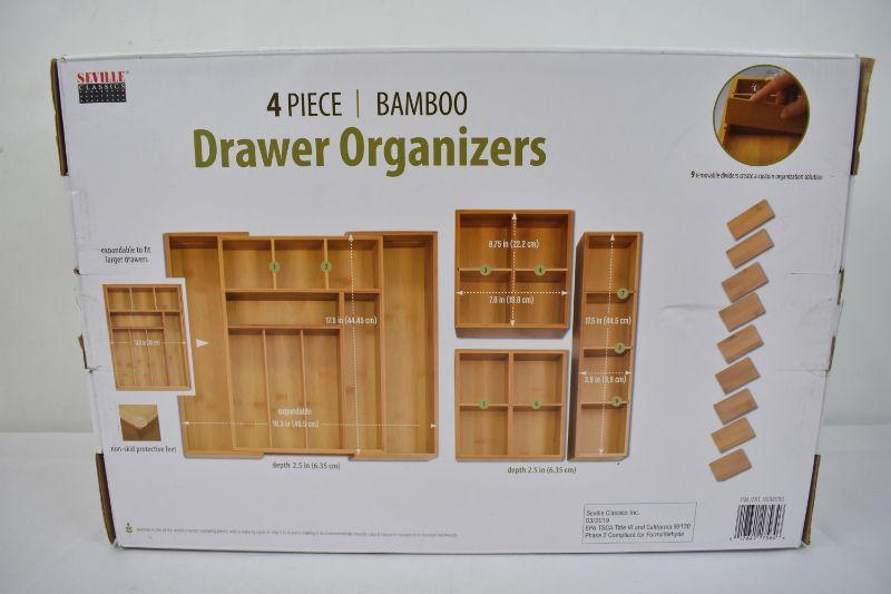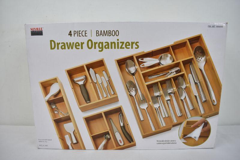 Seville 4 Pc Bamboo Drawer Organizers - New