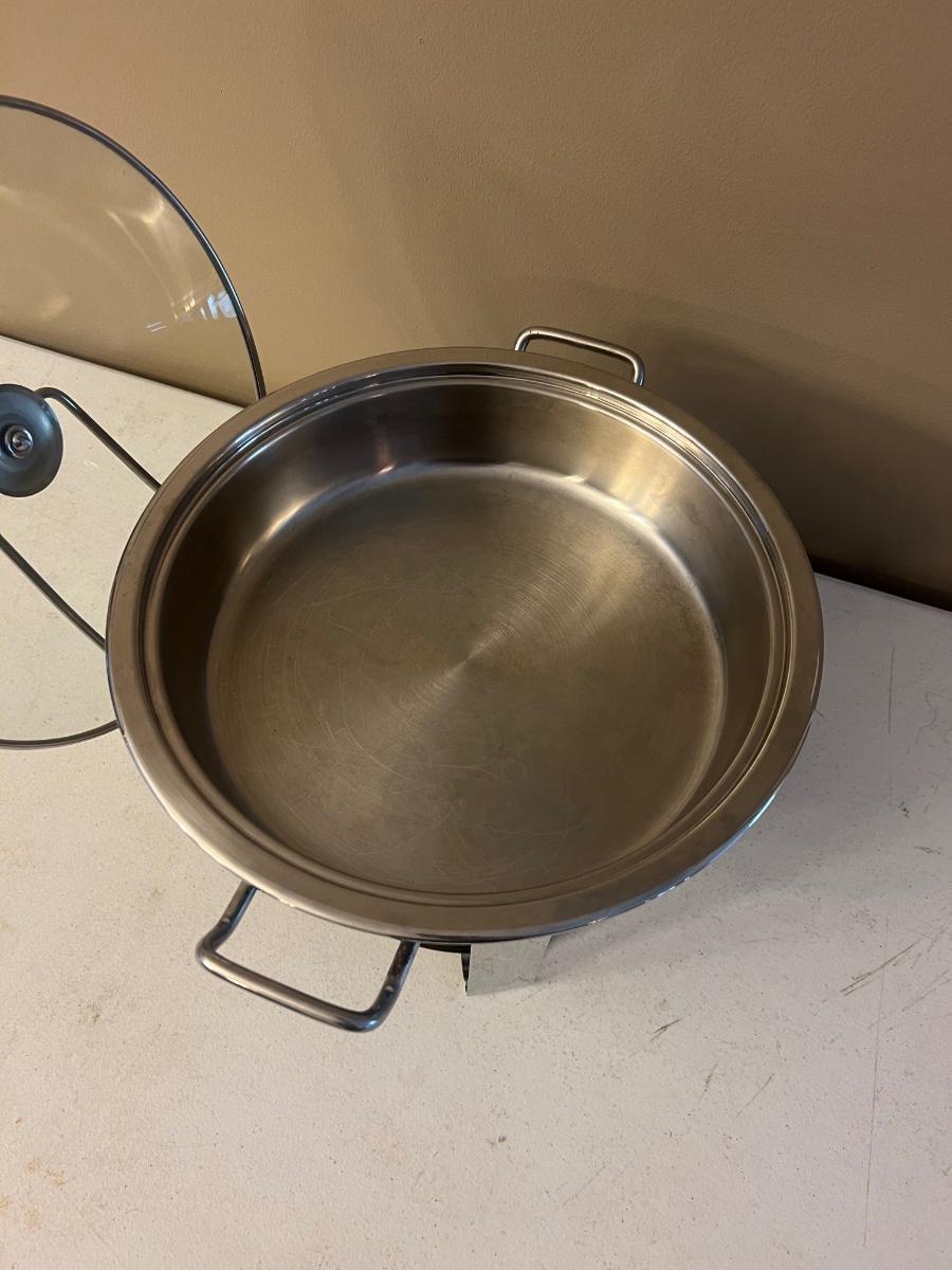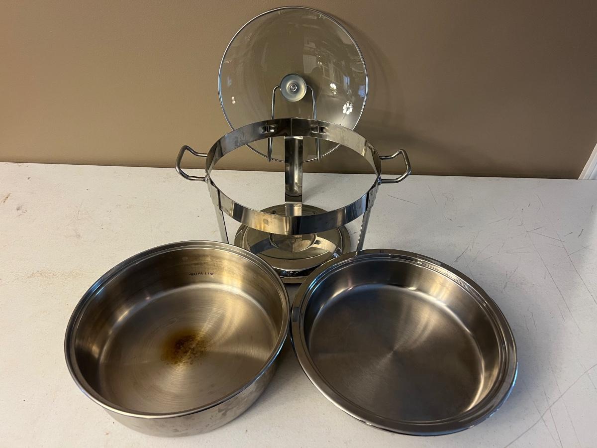 Stainless steel Seville Classics chafing dish model 14014. See pictures for condition. Comes with everything pictured.
