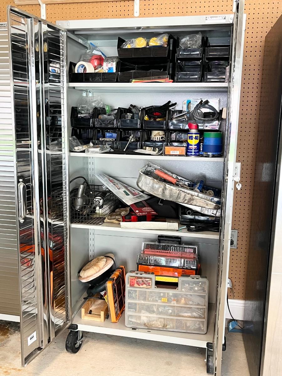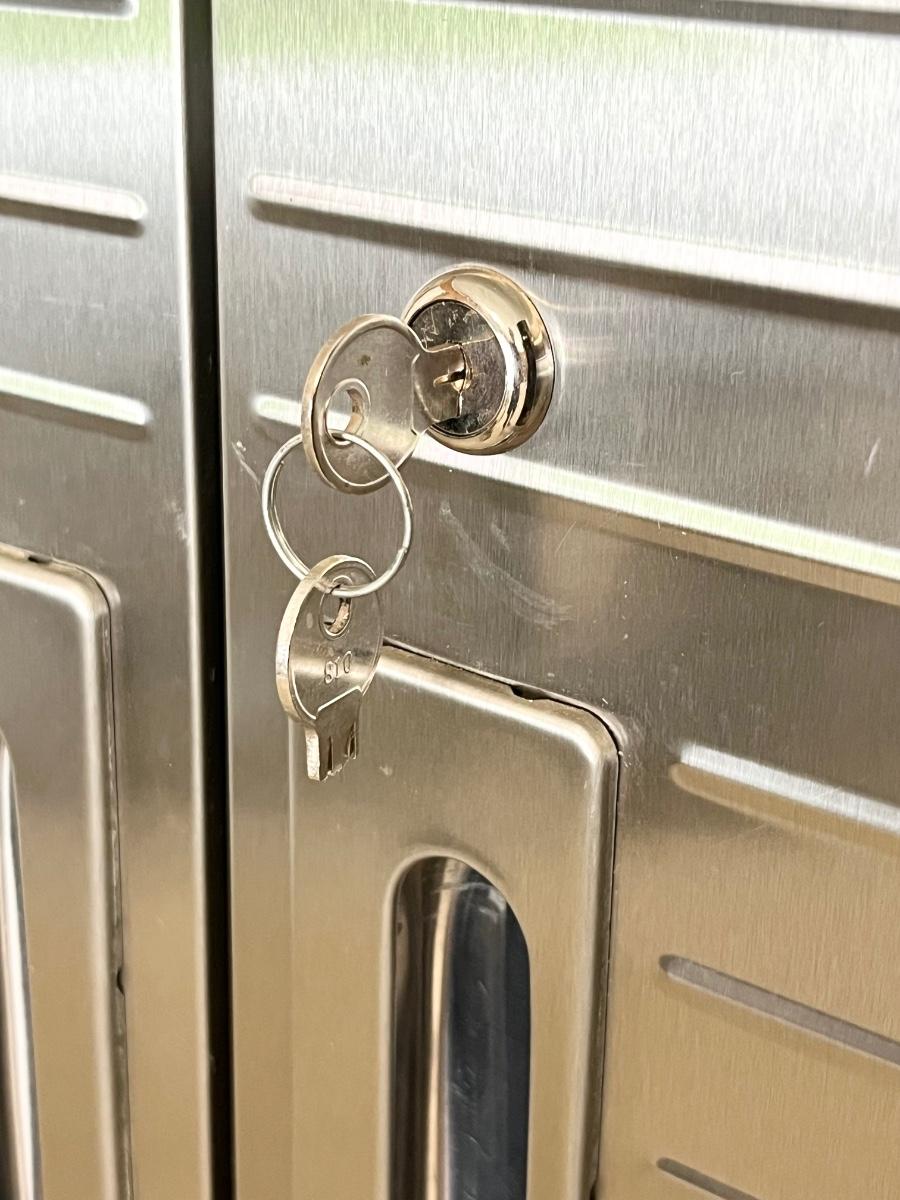 72” H x 36” W x 18” D ~ All steel construction ~ Contents not included ~ Shelves are adjustable ~ 1 key is broken as seen in photo