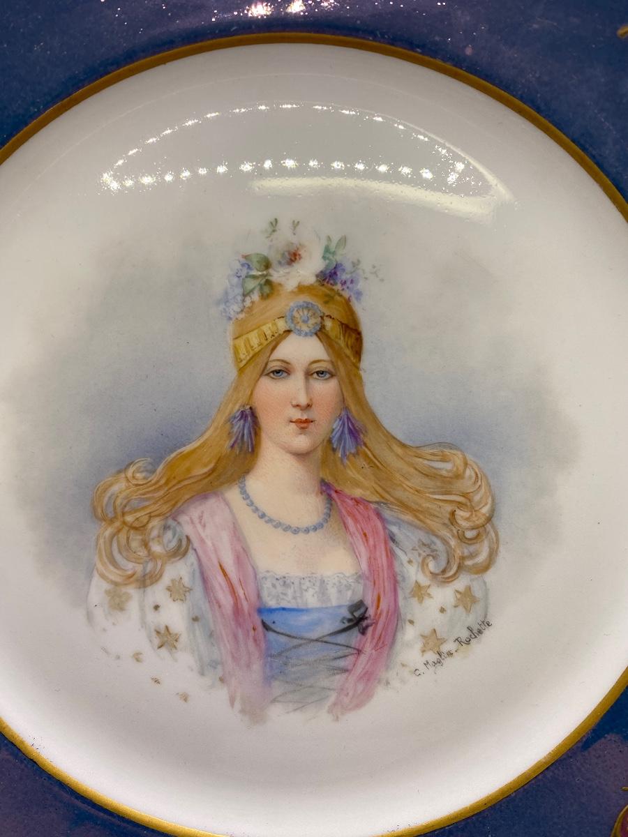 Sevres Style Hand Painted Princess Woman Portrait Plate