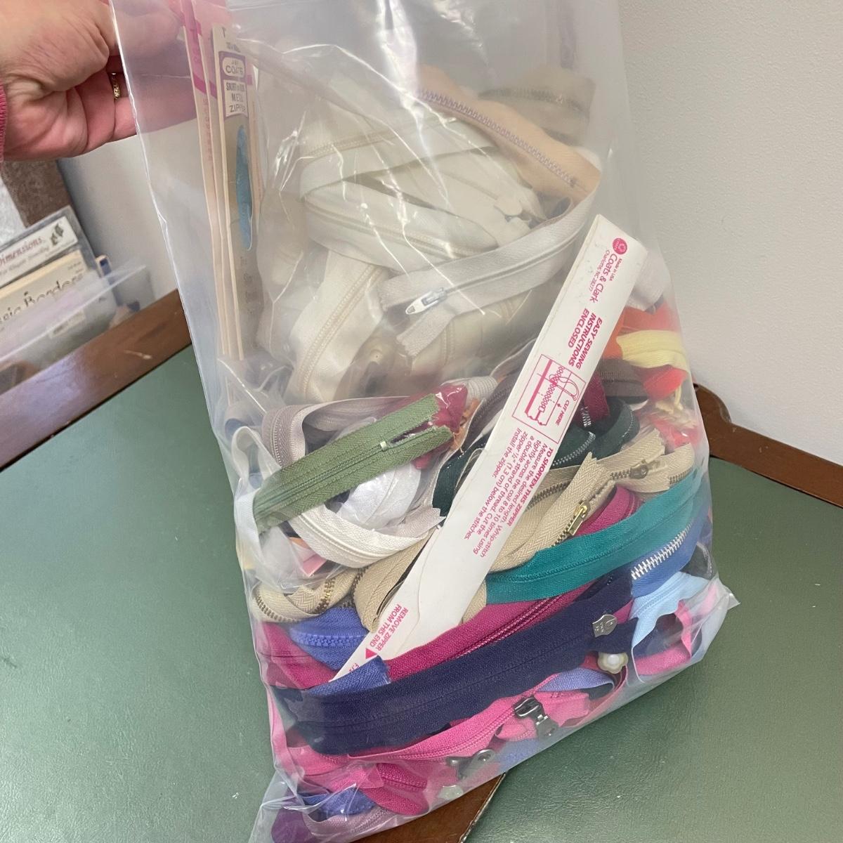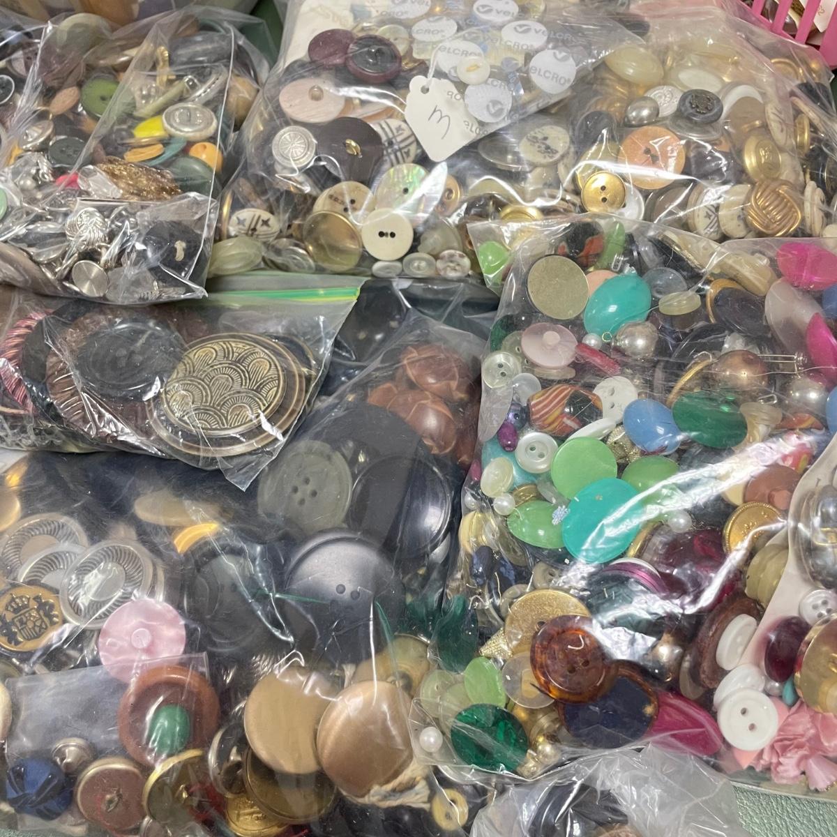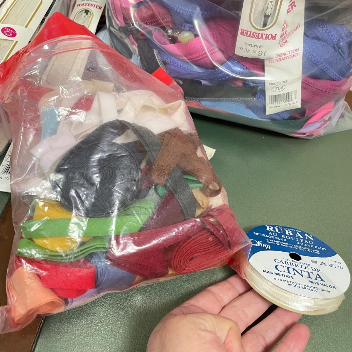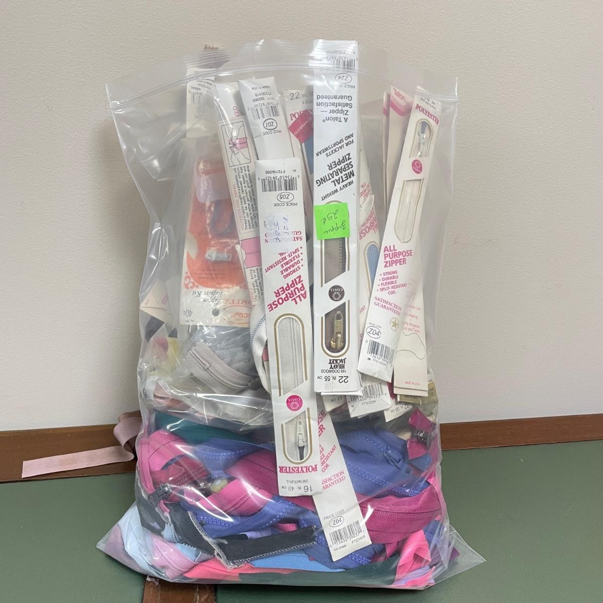 Huge selection of buttons, zippers, Velcro, ribbons, fasteners and more! Lot contains a plastic turntable caddy with eight plastic jars. Tall ziplock bags with Velcro and zippers are two-gallon sized bags. See images. Shipping available.