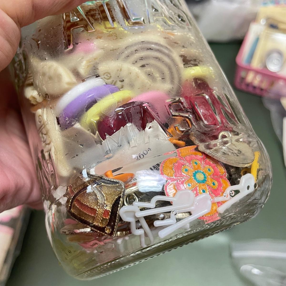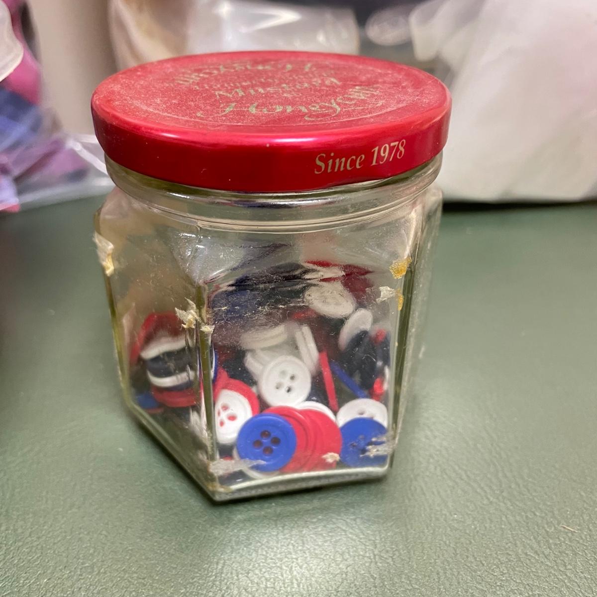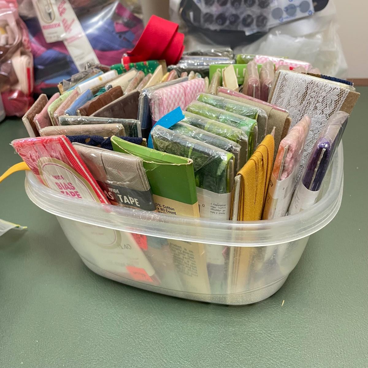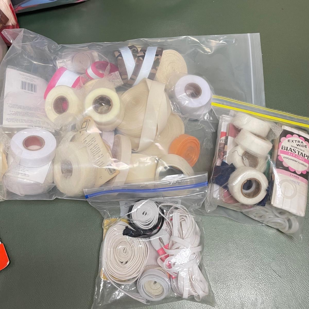 Huge selection of buttons, zippers, Velcro, ribbons, fasteners and more! Lot contains a plastic turntable caddy with eight plastic jars. Tall ziplock bags with Velcro and zippers are two-gallon sized bags. See images. Shipping available.