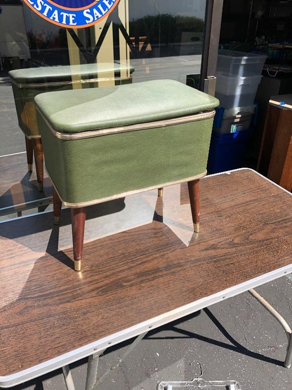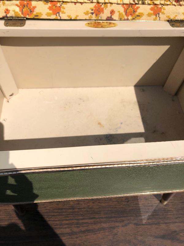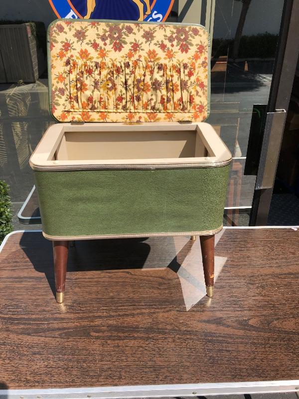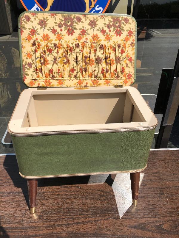 Vintage footstool sewing basket. Hawkeye by Burlington stool in Avocado Green. Good vintage condition