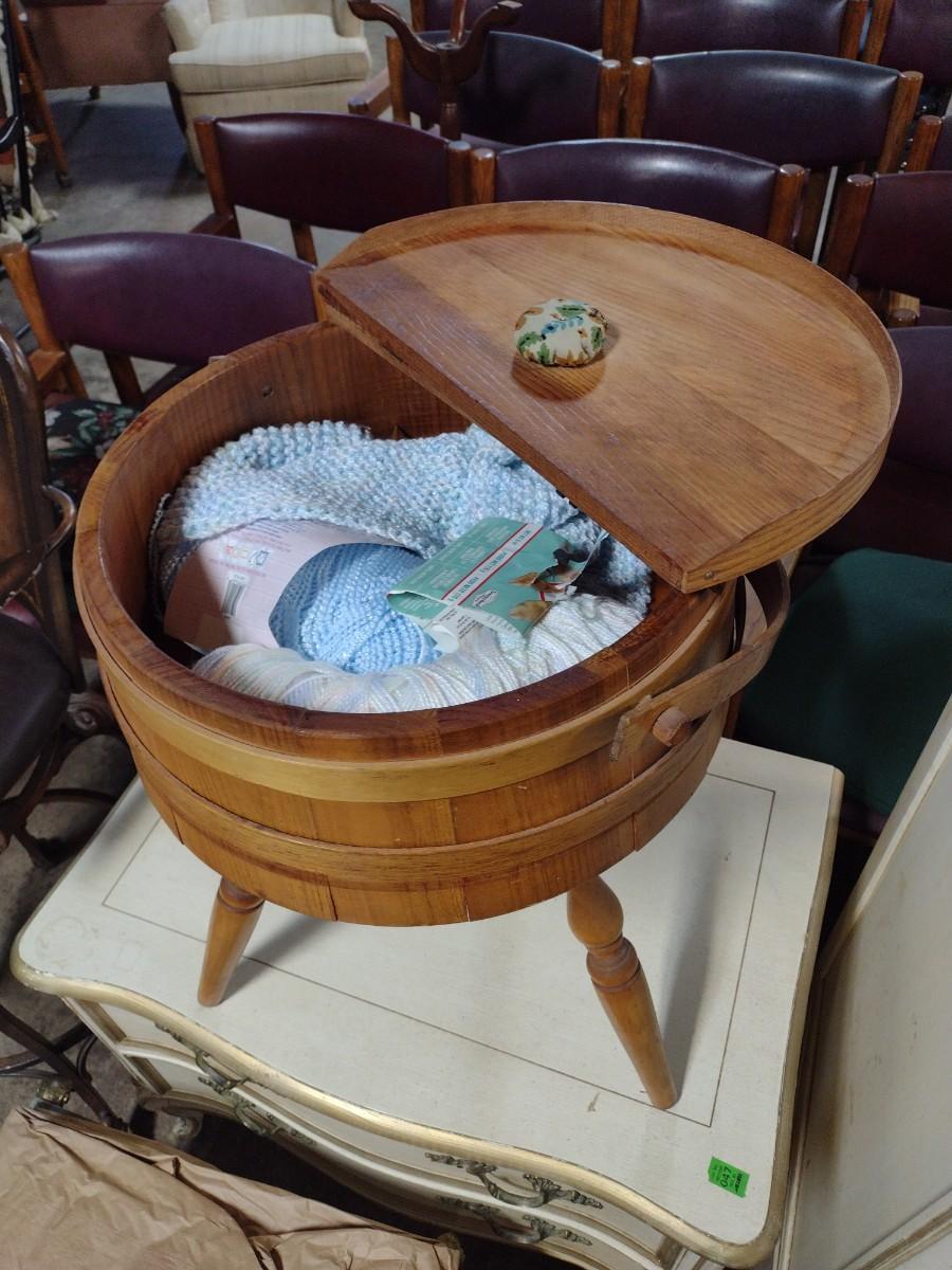 Oak Slat Yarn or Sewing Basket