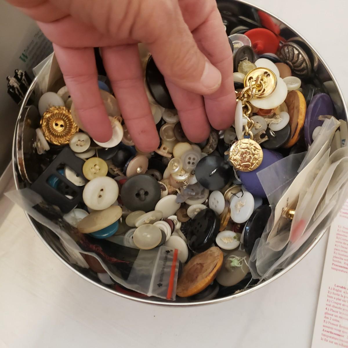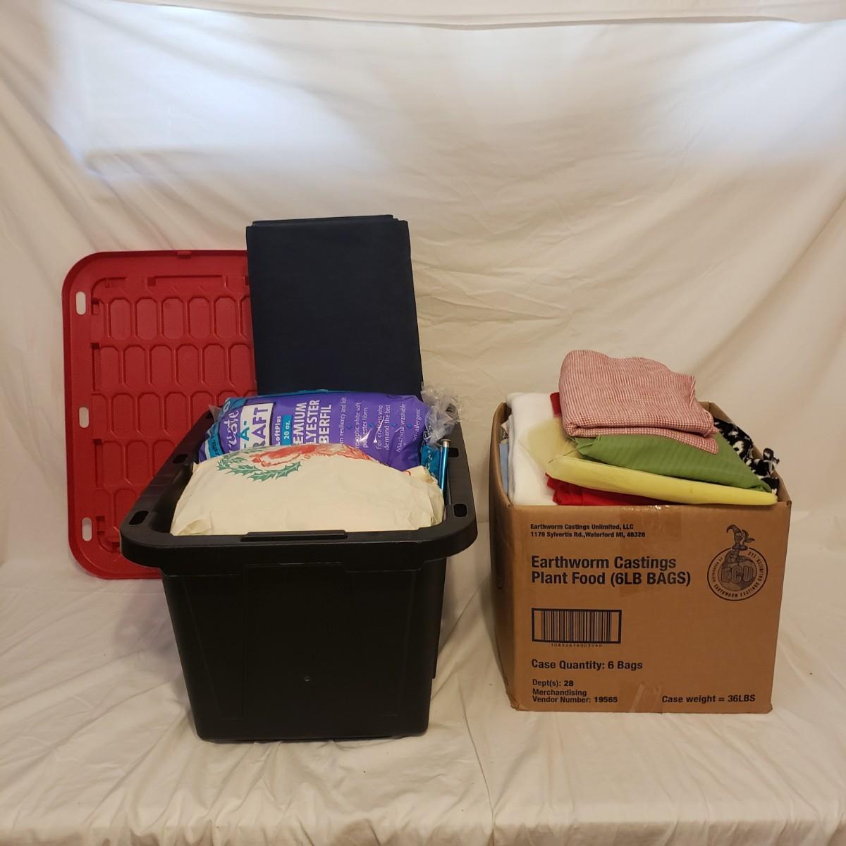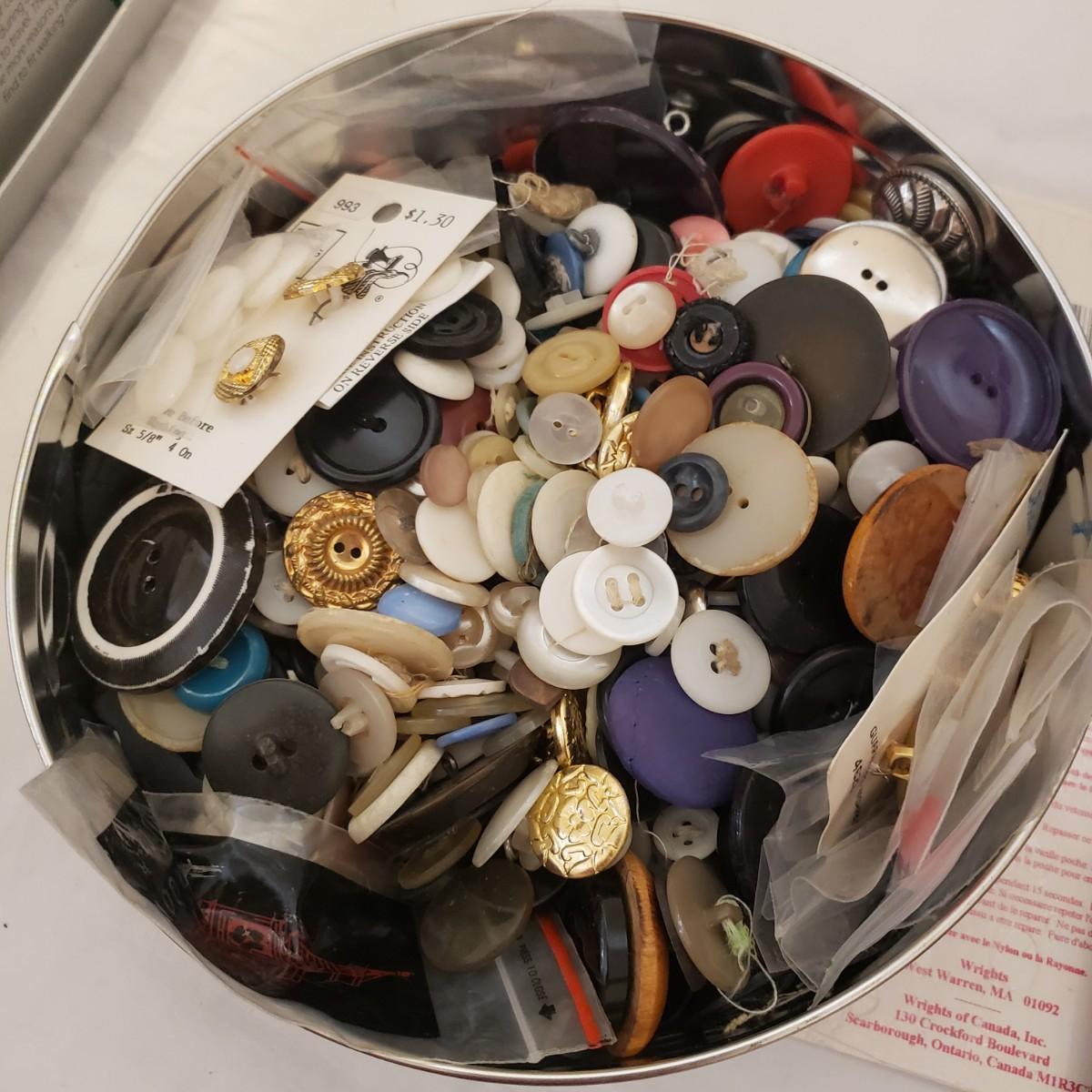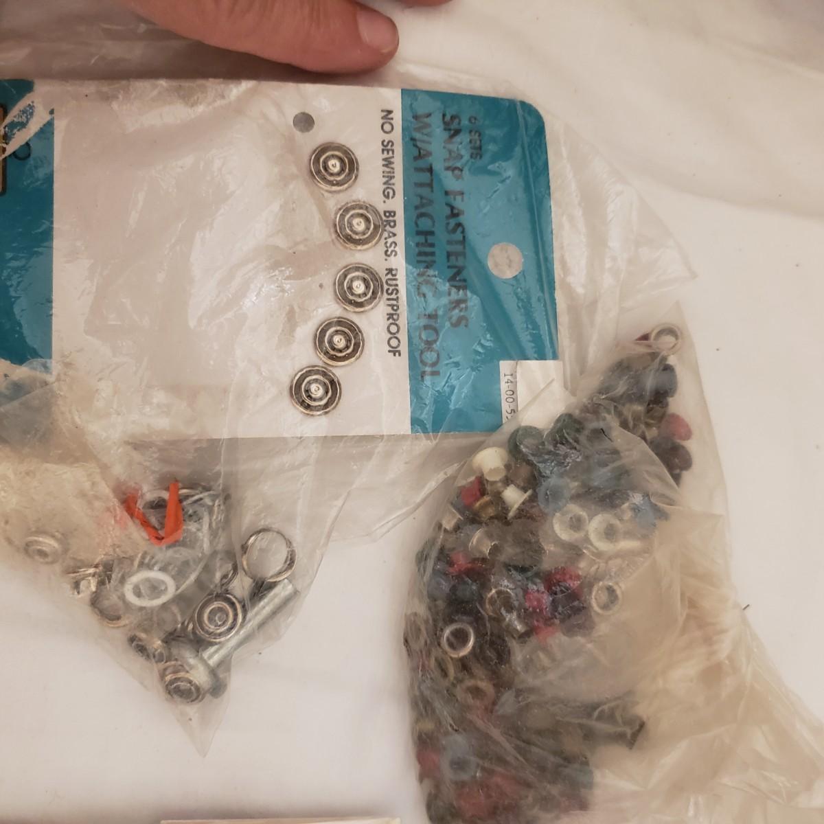 This sewing and craft has a bit of everything from material/thread, shears, yarn and knitting needles to paint brushes and ready to paint Easter Eggs! The cookie tin of buttons is nothing but classic! The last picture shows lot all packed up. The cardboard box is all material for reference. Also includes a quilting frame. Please see photos for details.