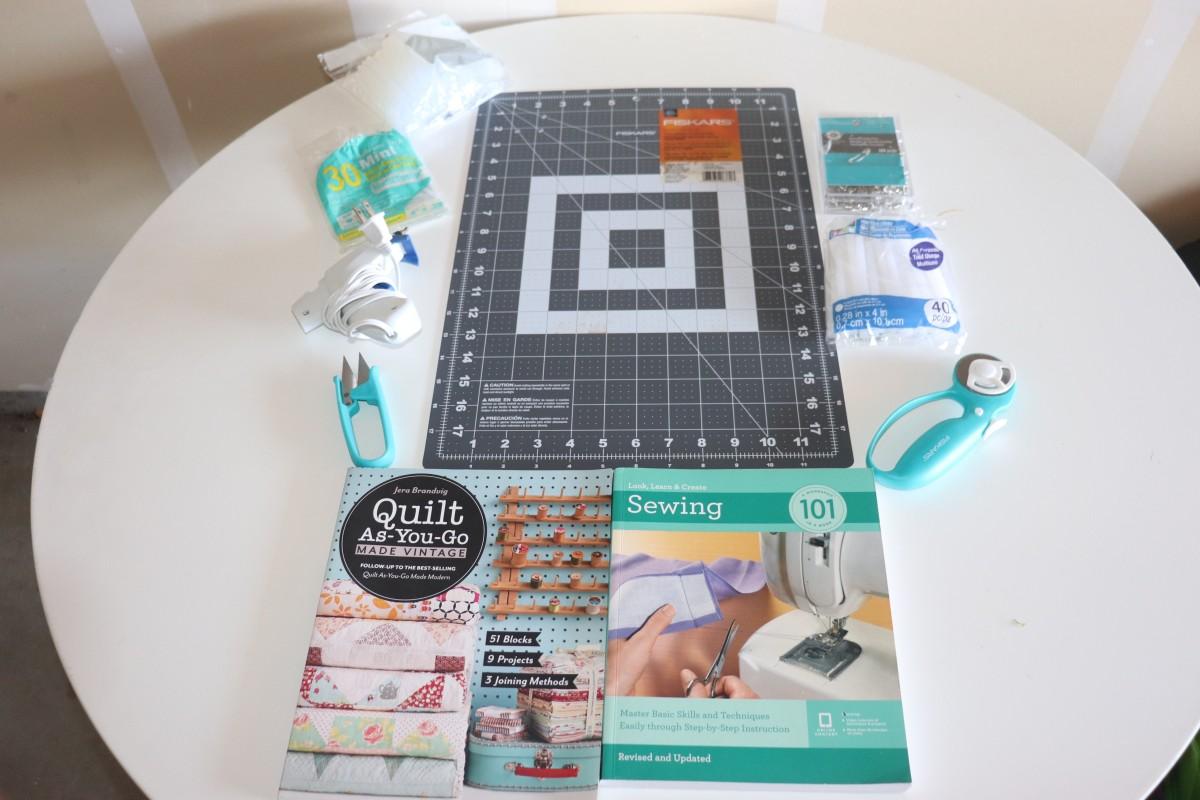 A collection of sewing books, mats, and accessories, ideal for sewing enthusiasts looking to enhance their skills and creativity.