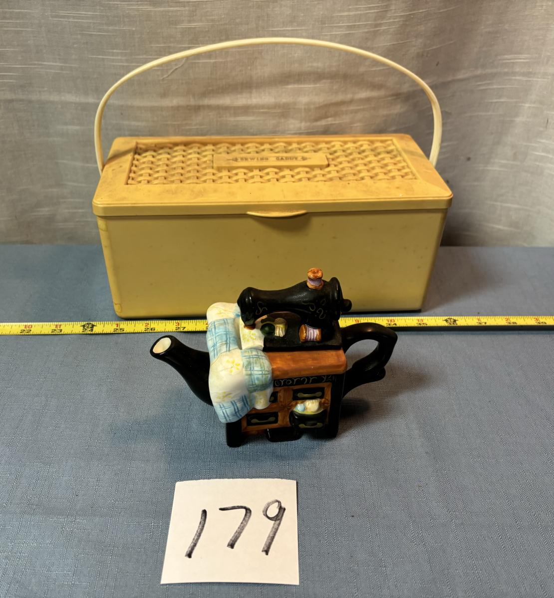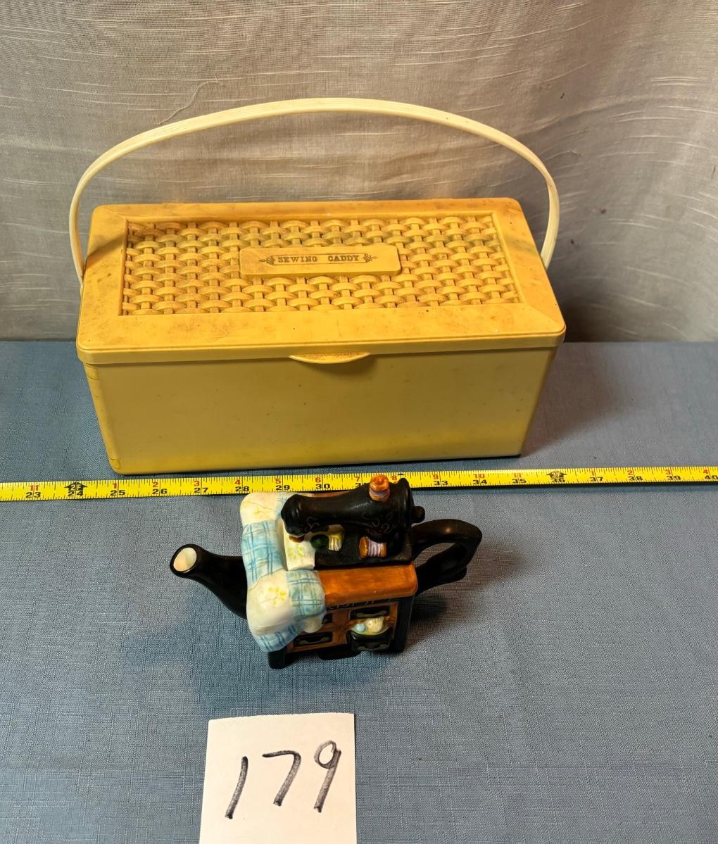 Sewing Caddy and Tea Pot