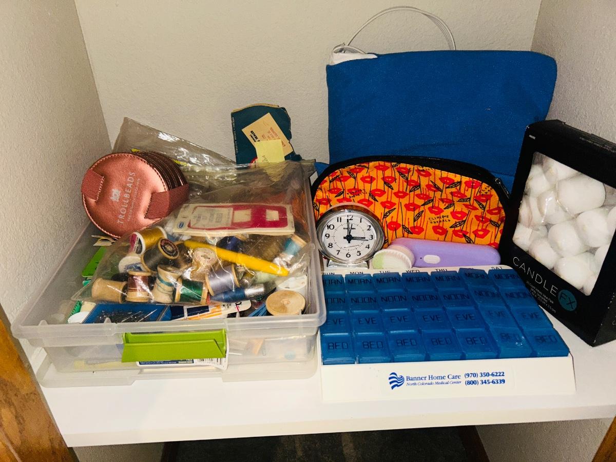 SEWING & CRAFT SUPPLIES, PERSONAL CARE ITEMS AND VTG BABY BEN ALARM CLOCK