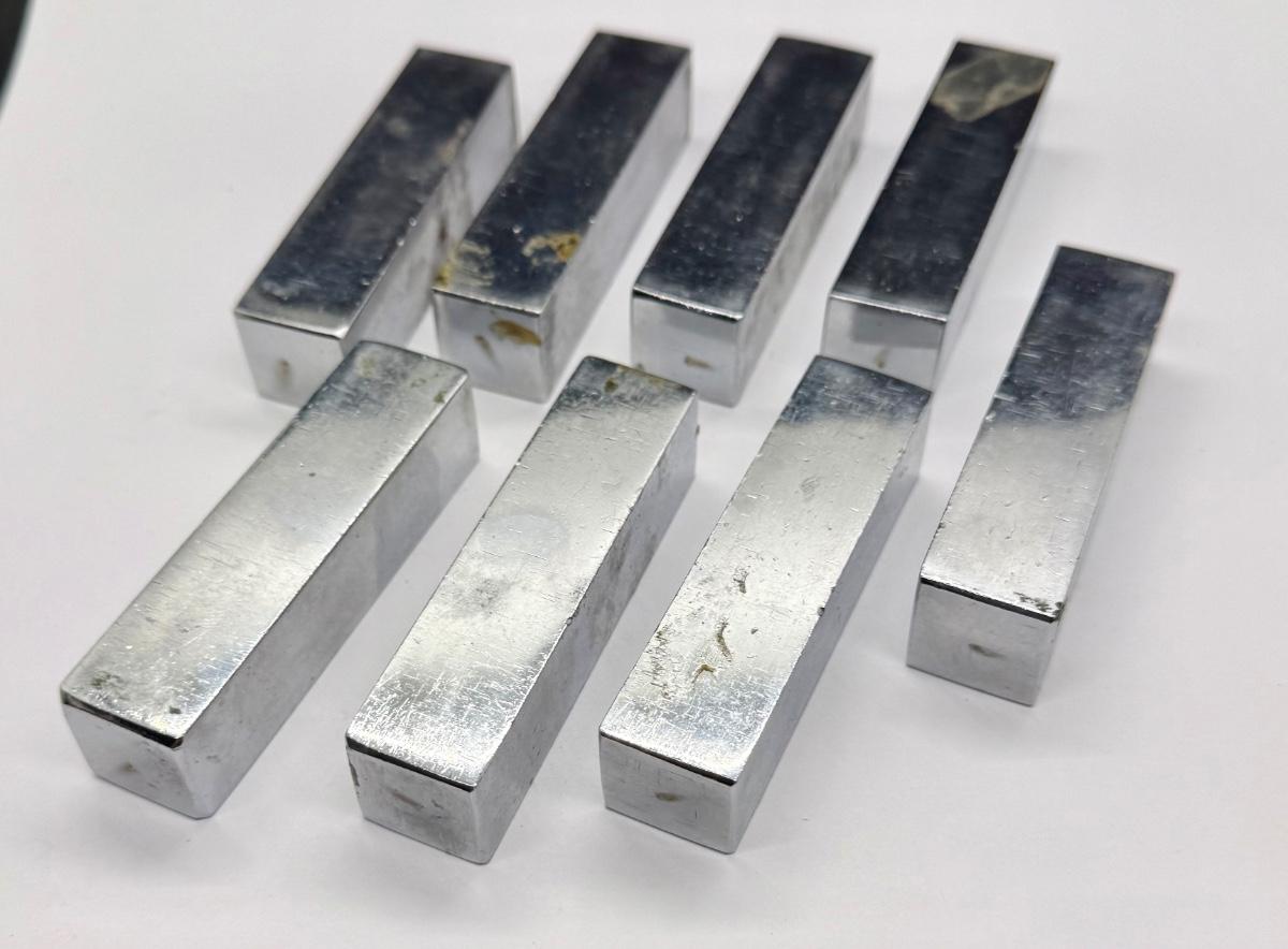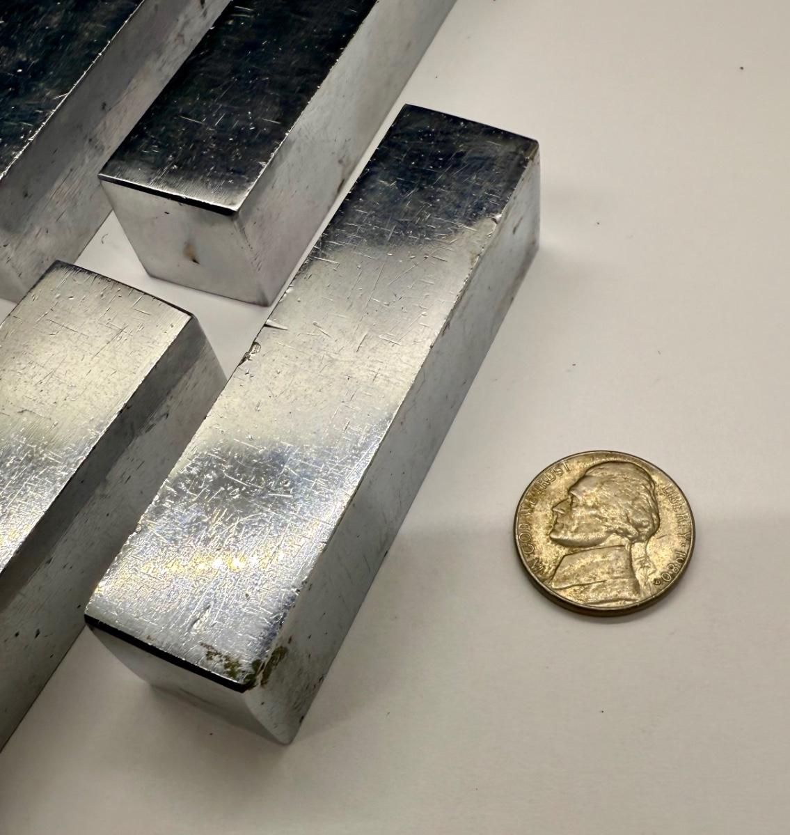 Steel weights, approx. 3” x .75” x .75”. Chrome finish. Each weighs approximately. 7.5 oz.