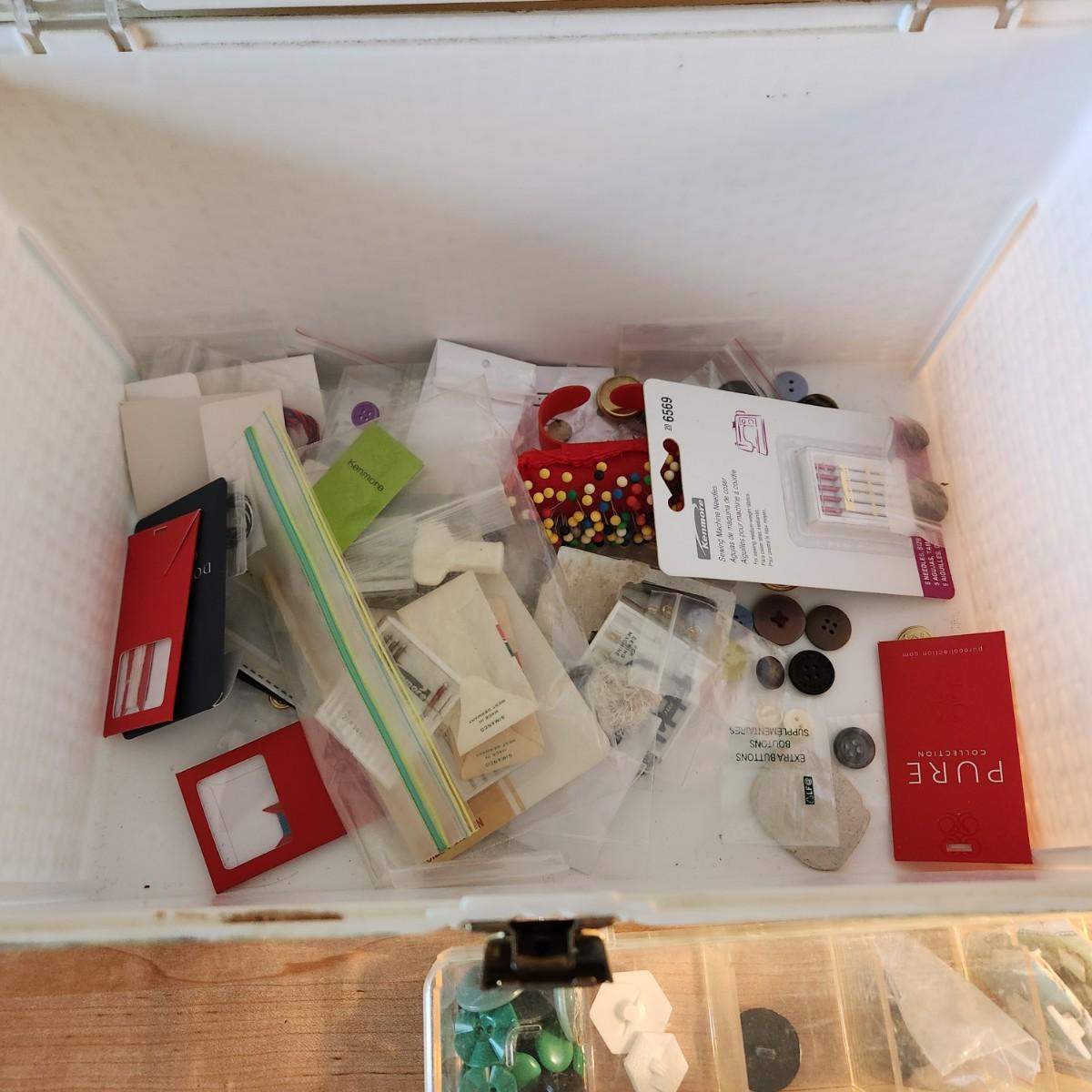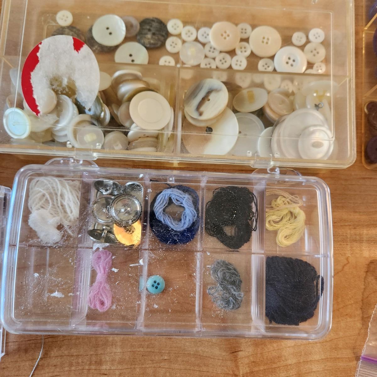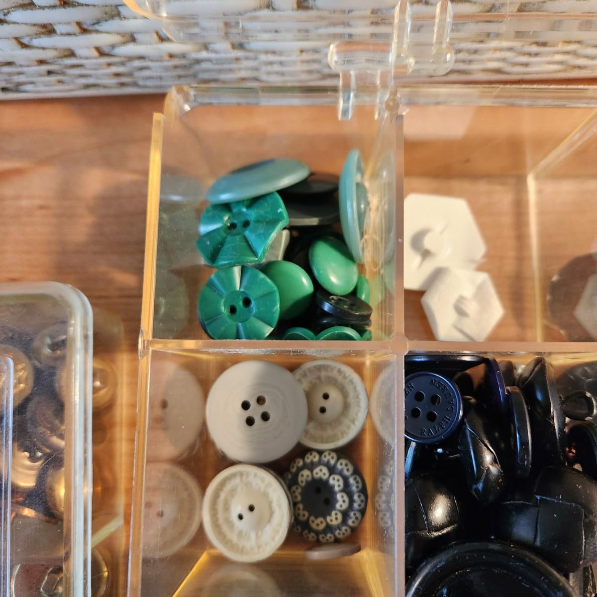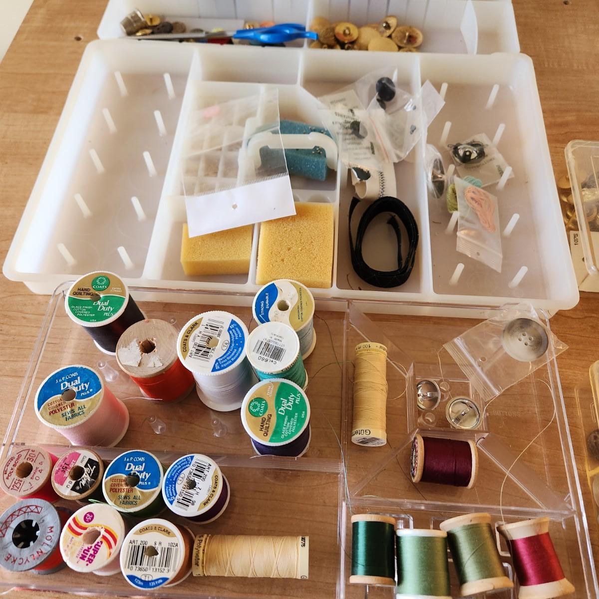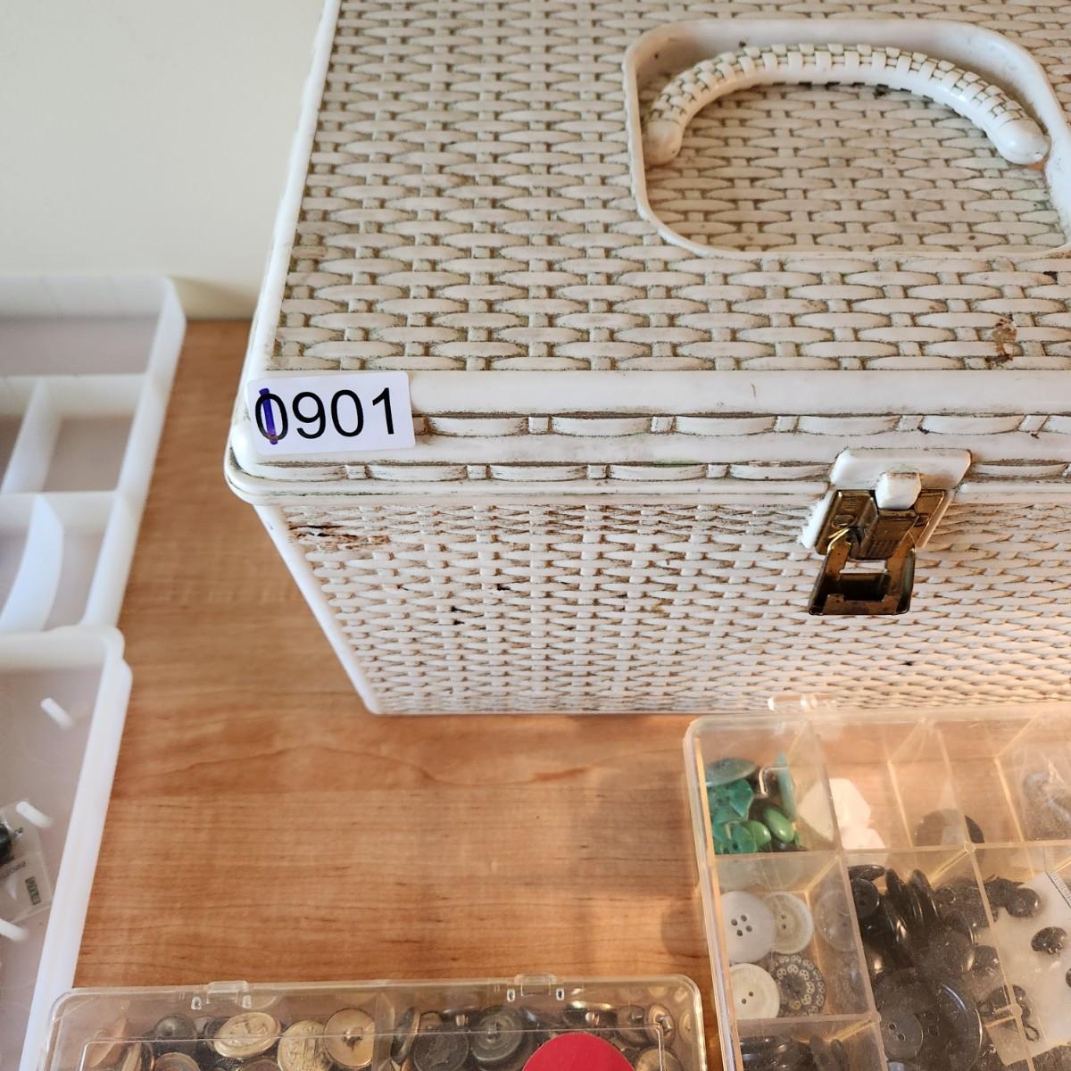 Sewing Crafting Lot Wilson Wil-hol Plastic Basket + trays of Buttons , Thread Spools and more