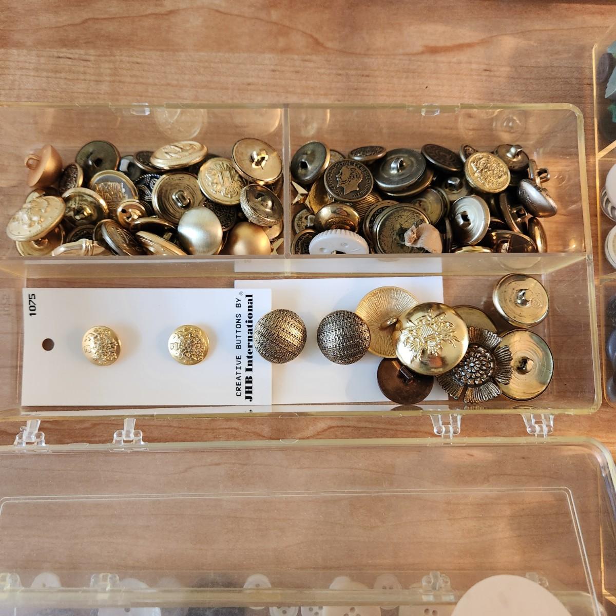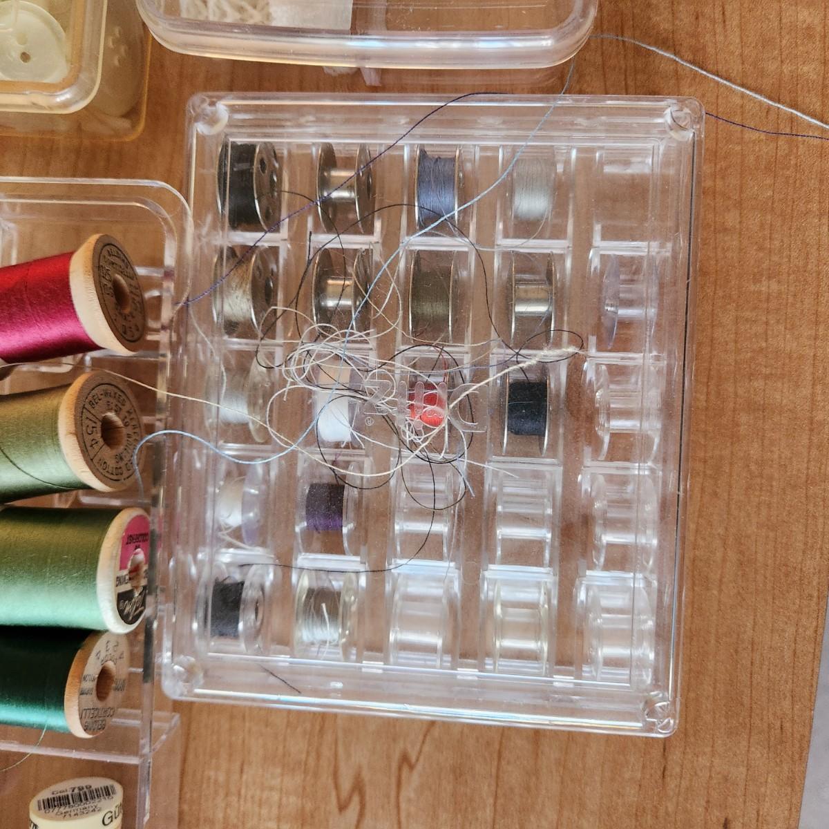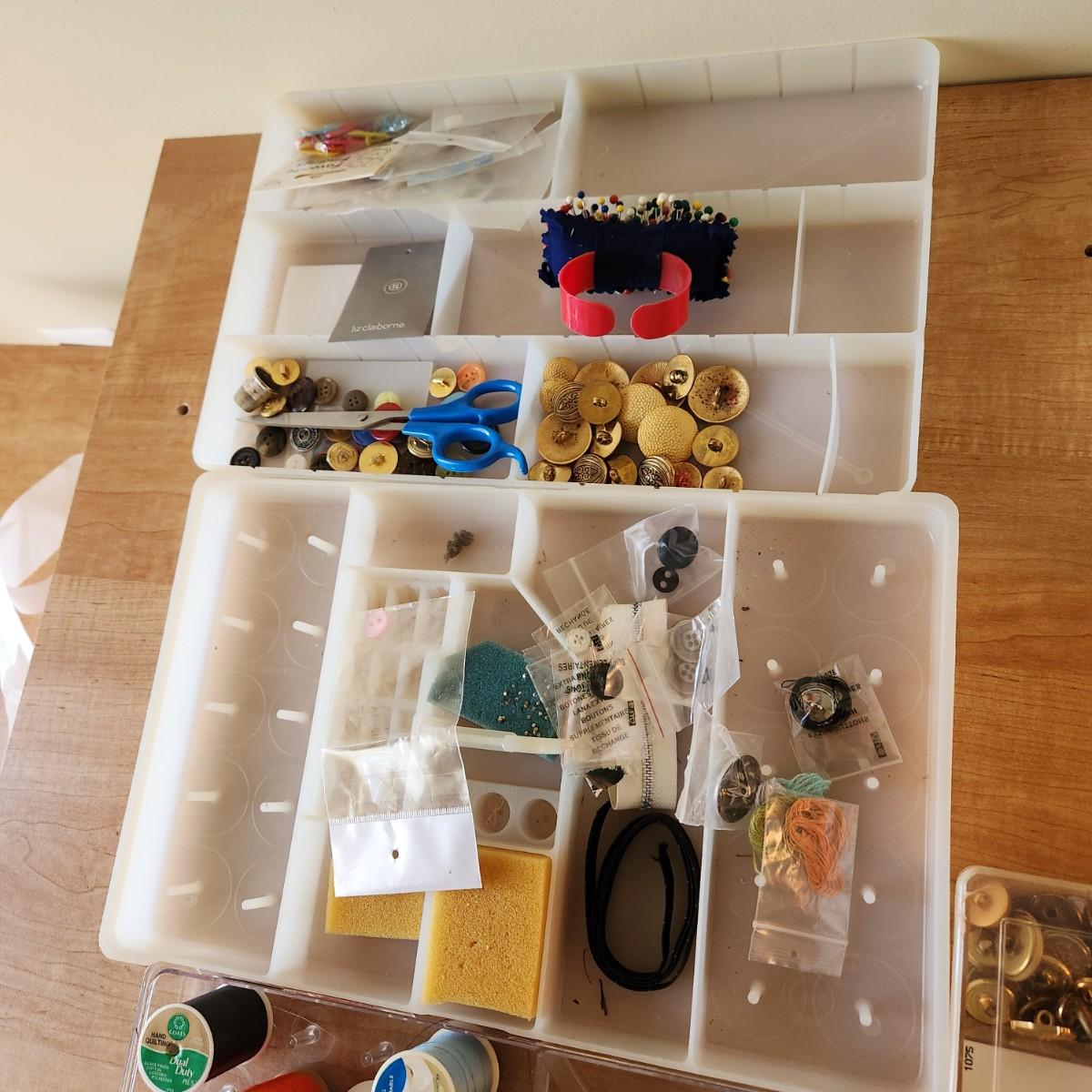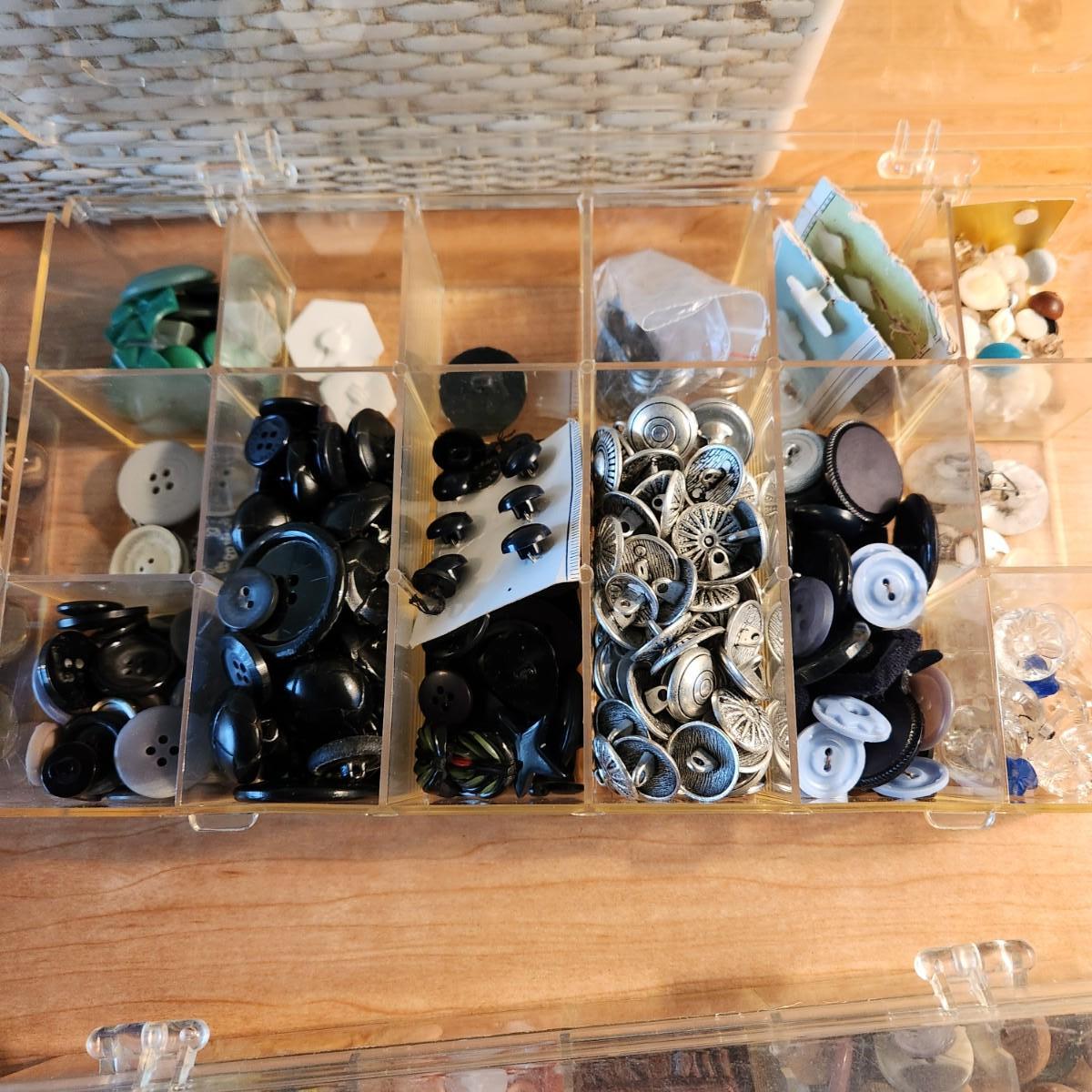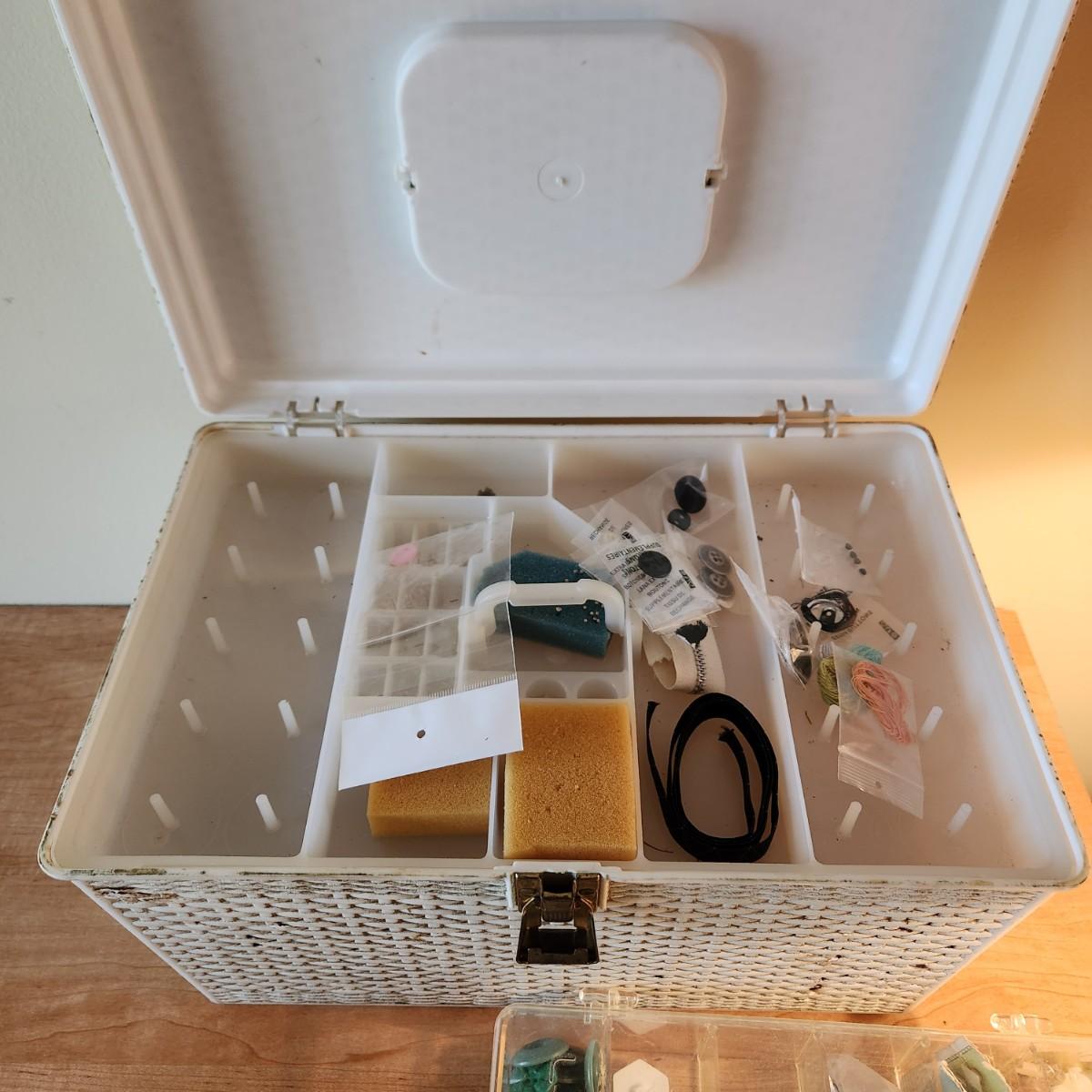 Sewing Crafting Lot Wilson Wil-hol Plastic Basket + trays of Buttons , Thread Spools and more